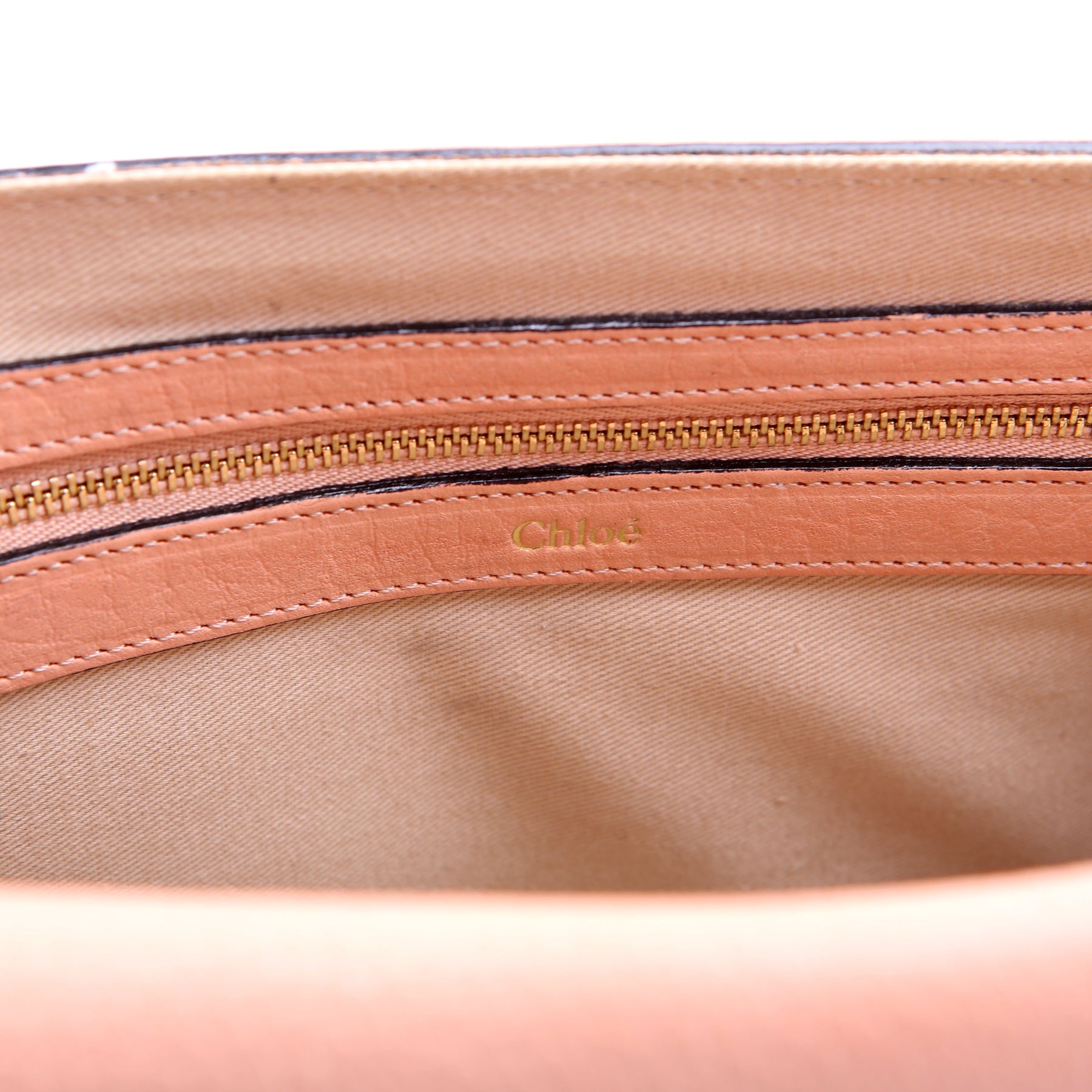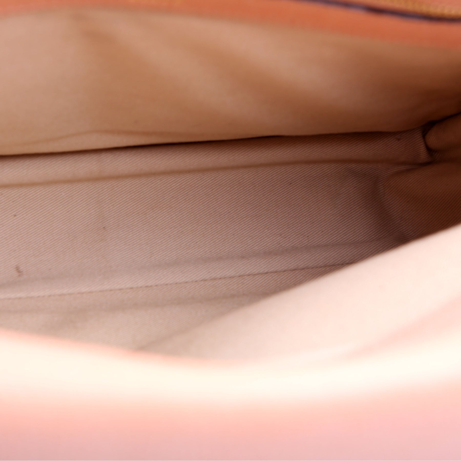 Interior: The interior has light stains throughout, and it features two sections and one zipper pocket.