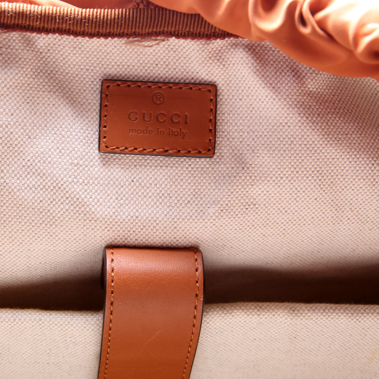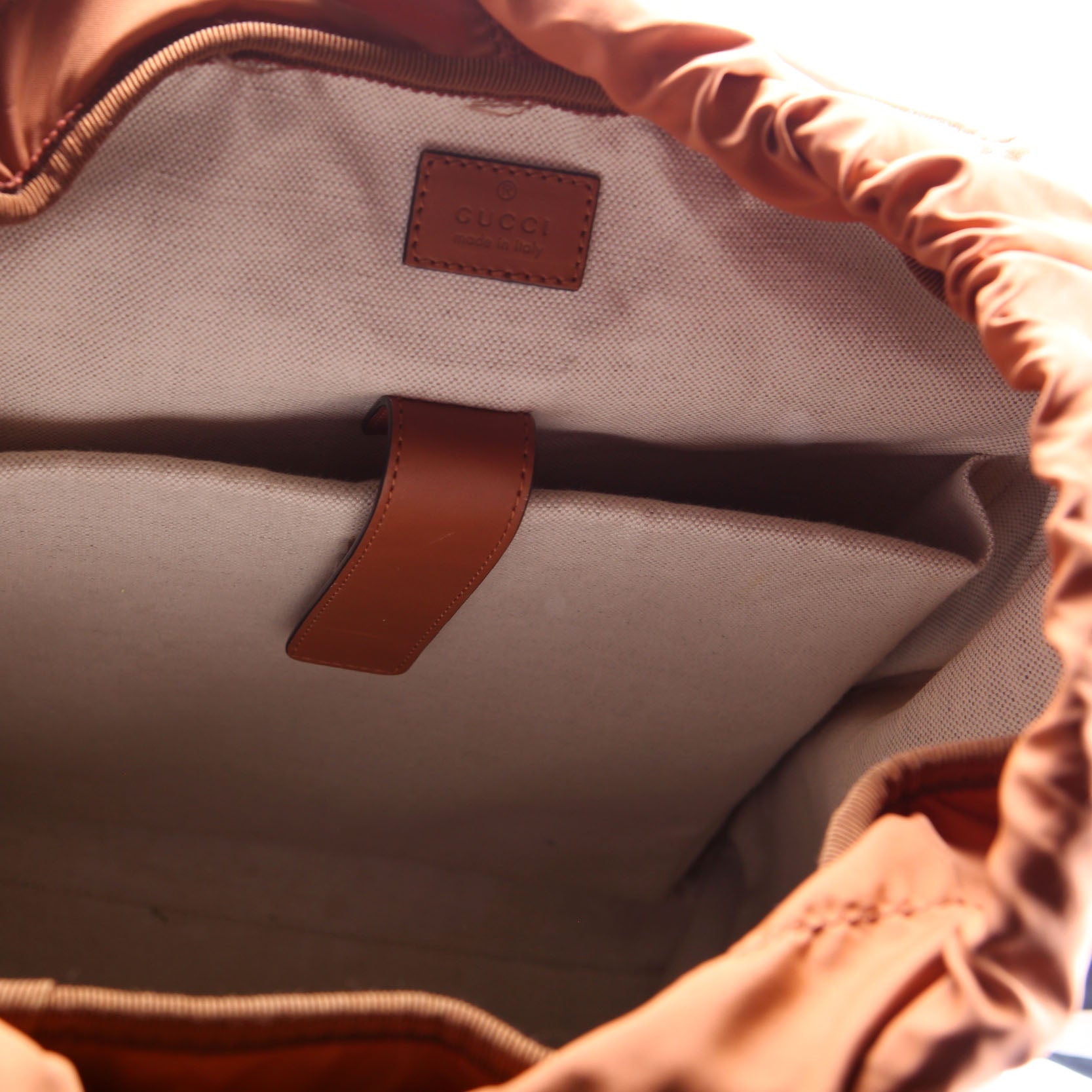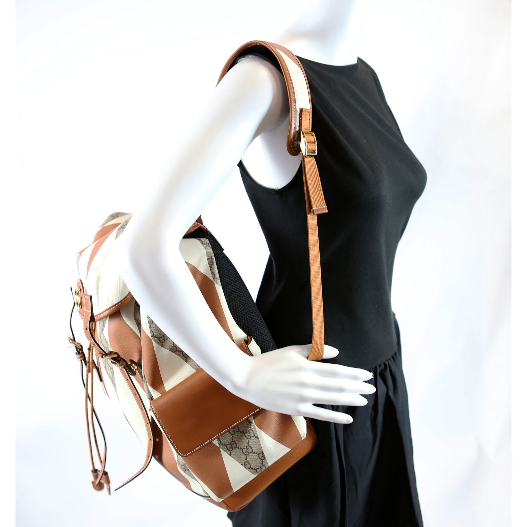 This pre-owned Gucci Double Buckle Rhombus Print Backpack is guaranteed 100% authentic. The exterior is in the classic Gucci Ophidia Leather.
