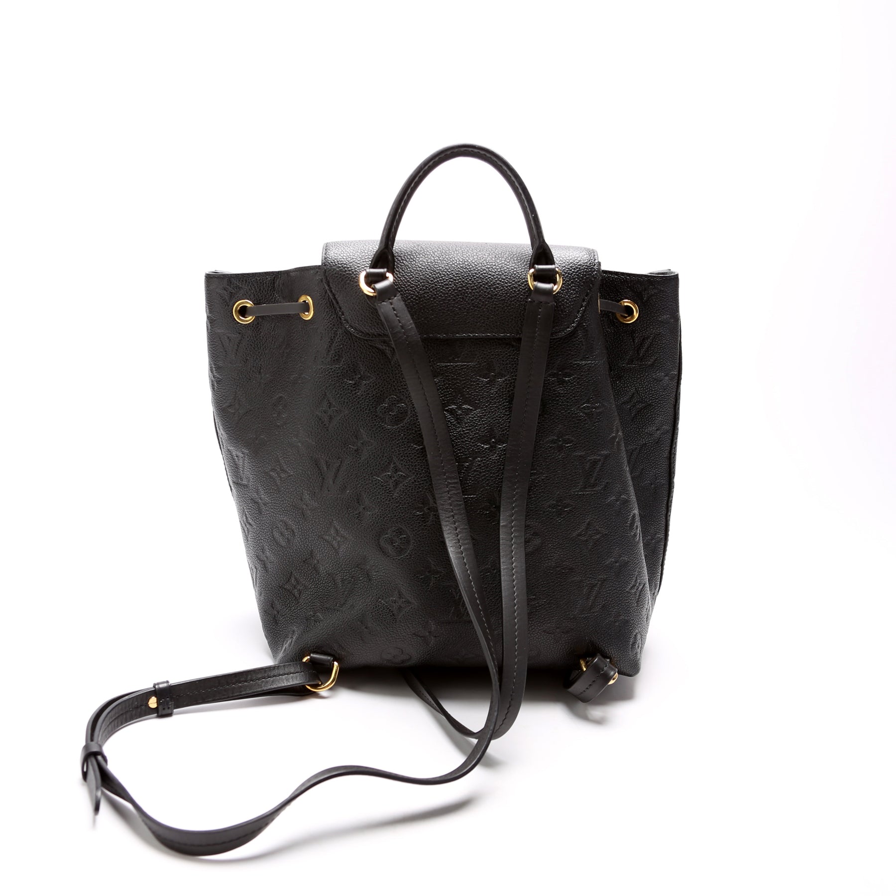 This pre-owned Louis Vuitton Montsouris NM PM is guaranteed 100% authentic. The exterior is in the classic Louis Vuitton Empreinte leather.
