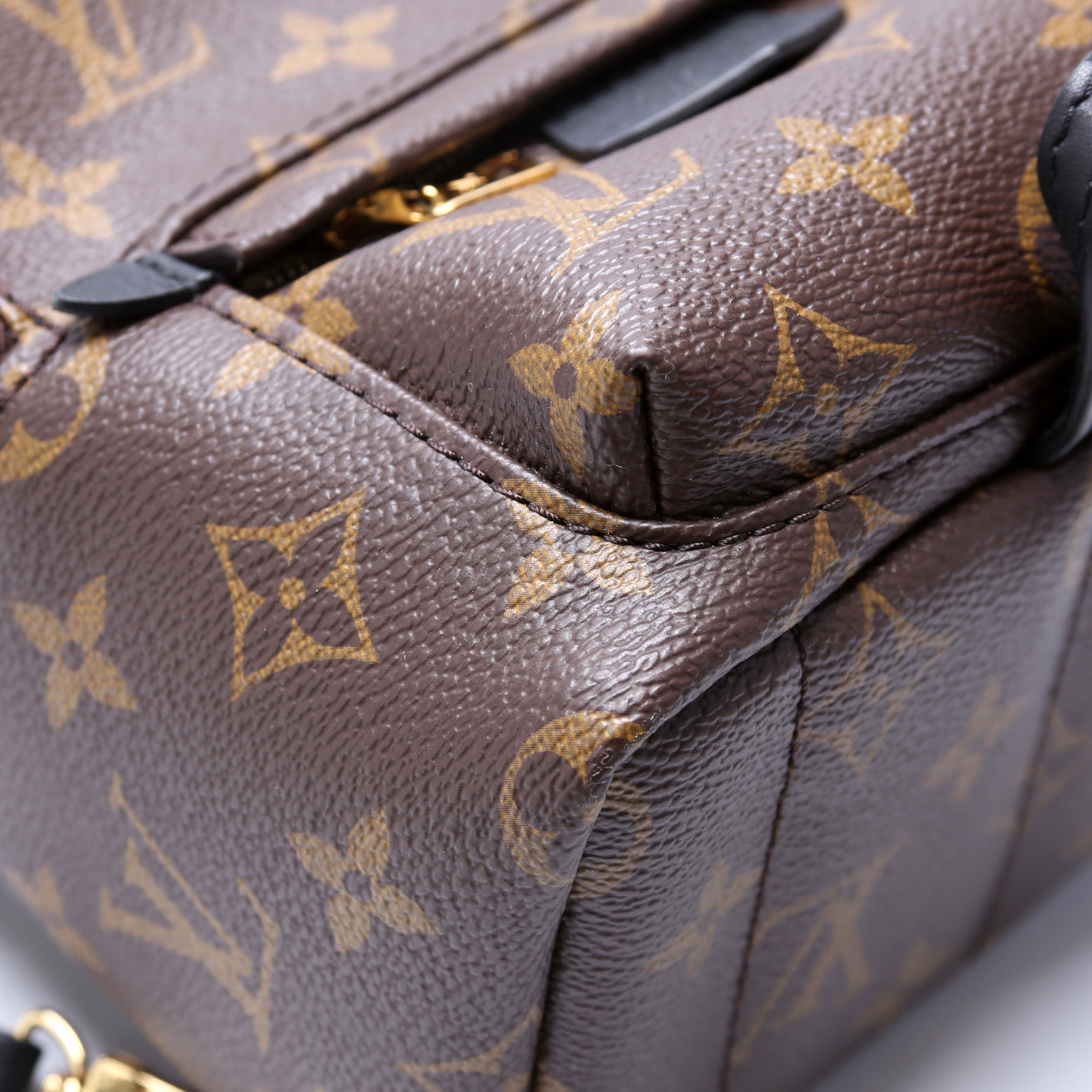 This pre-owned Louis Vuitton Palm Springs Mini Backpack is guaranteed 100% authentic. The exterior is in the classic Louis Vuitton Monogram coated canvas.
