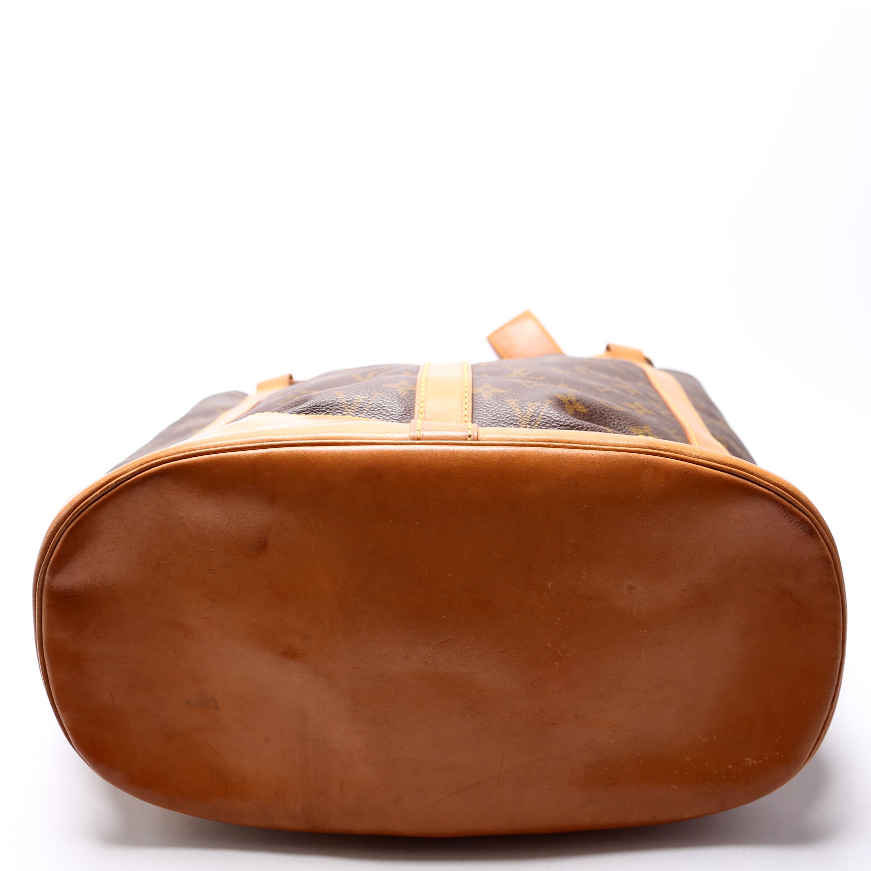 This pre-owned Louis Vuitton Randonnee GM is guaranteed 100% authentic. The exterior is in the classic Louis Vuitton Monogram coated canvas.