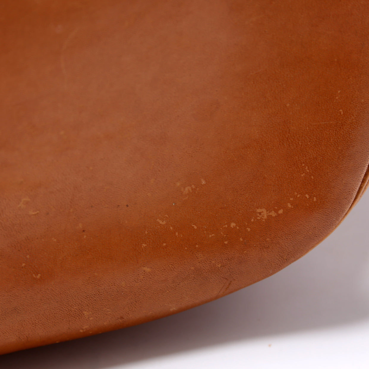 Strap: The shoulder strap shows minor wear and discoloration throughout. There is minor cracking throughout the leather.