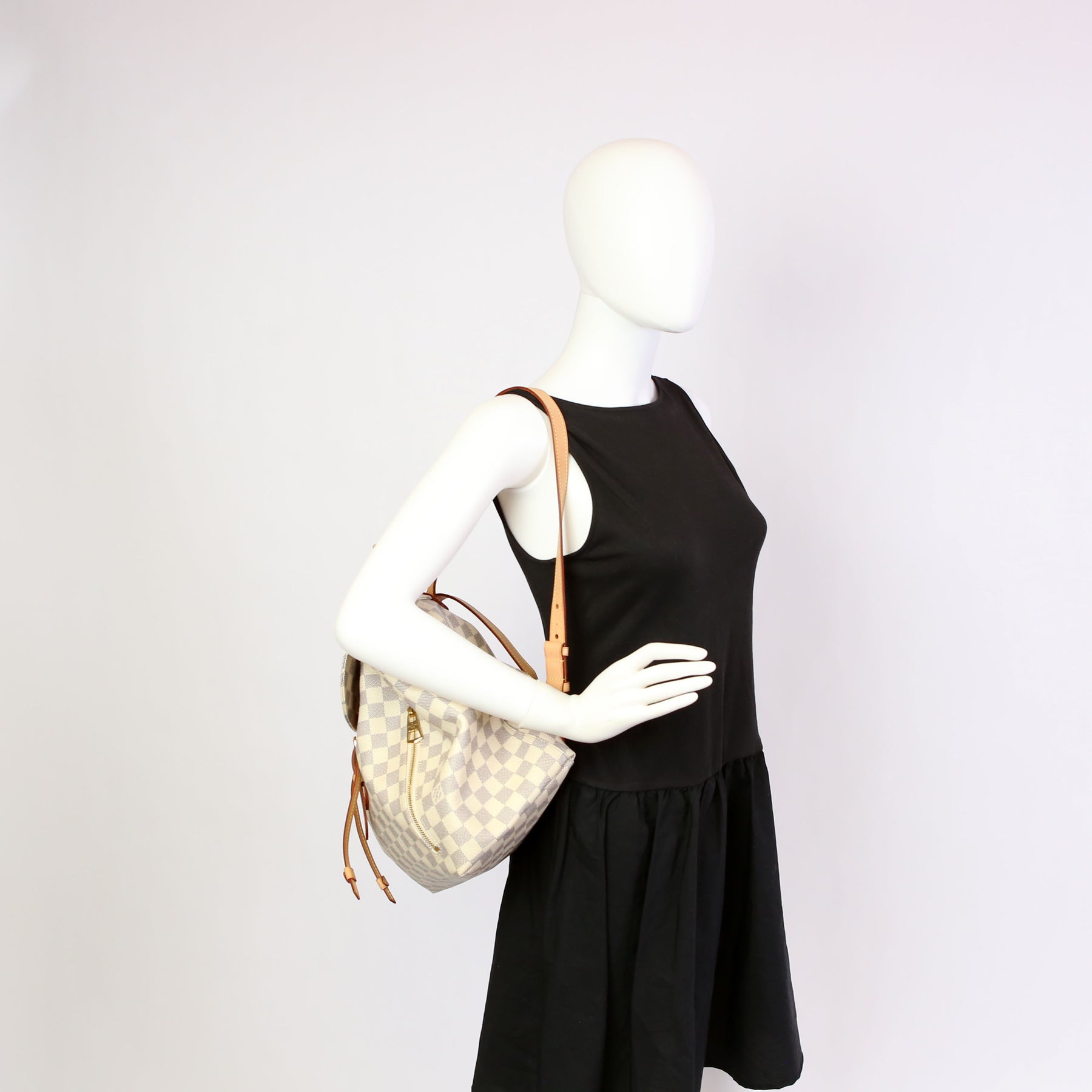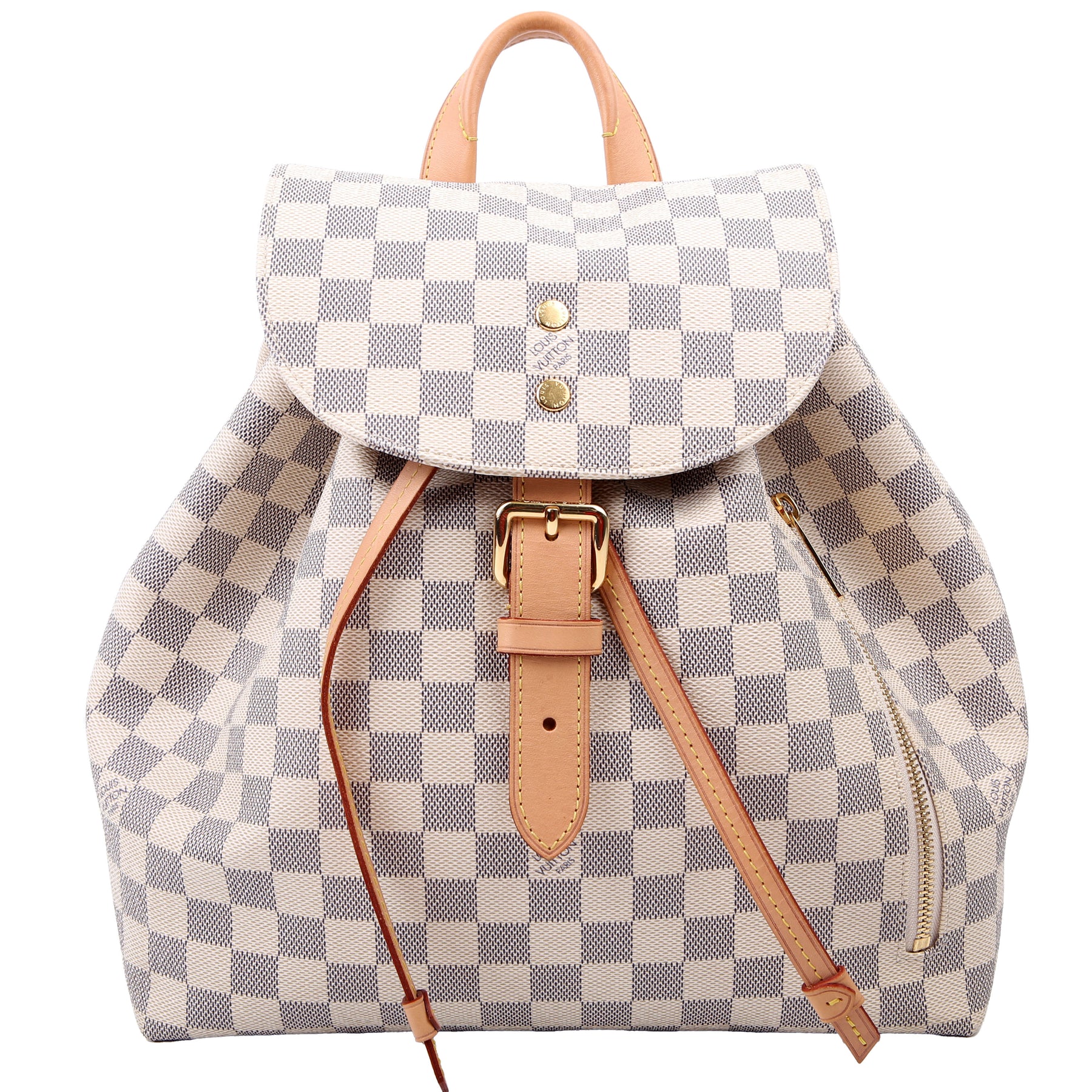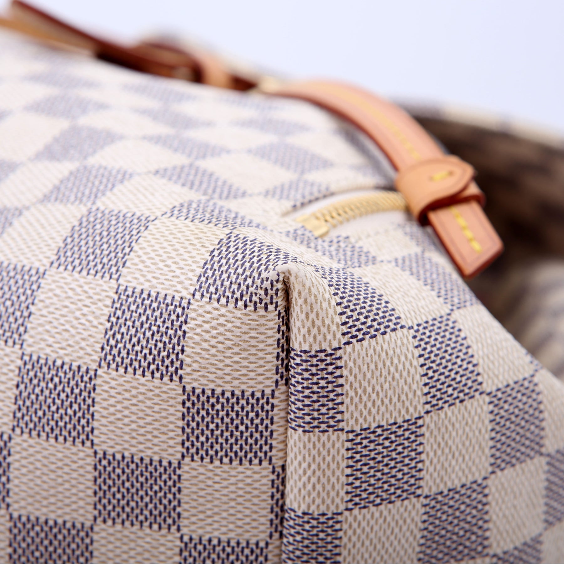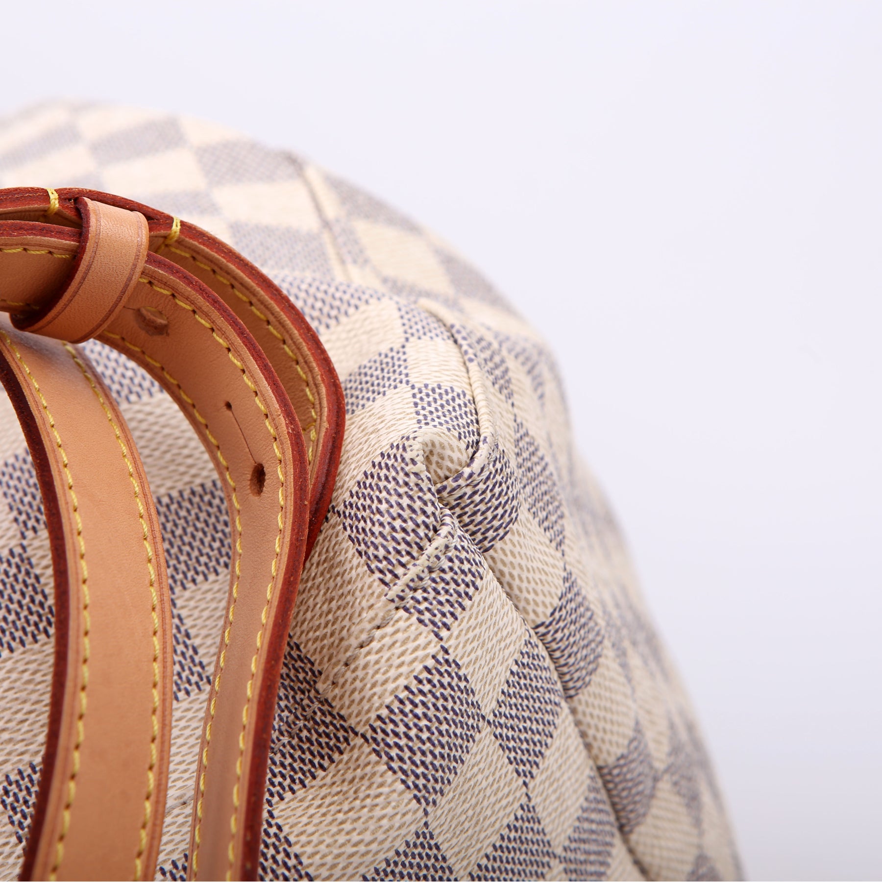 This pre-owned Louis Vuitton Sperone Backpack is guaranteed 100% authentic. The exterior is in the classic Louis Vuitton Damier Azur coated canvas.