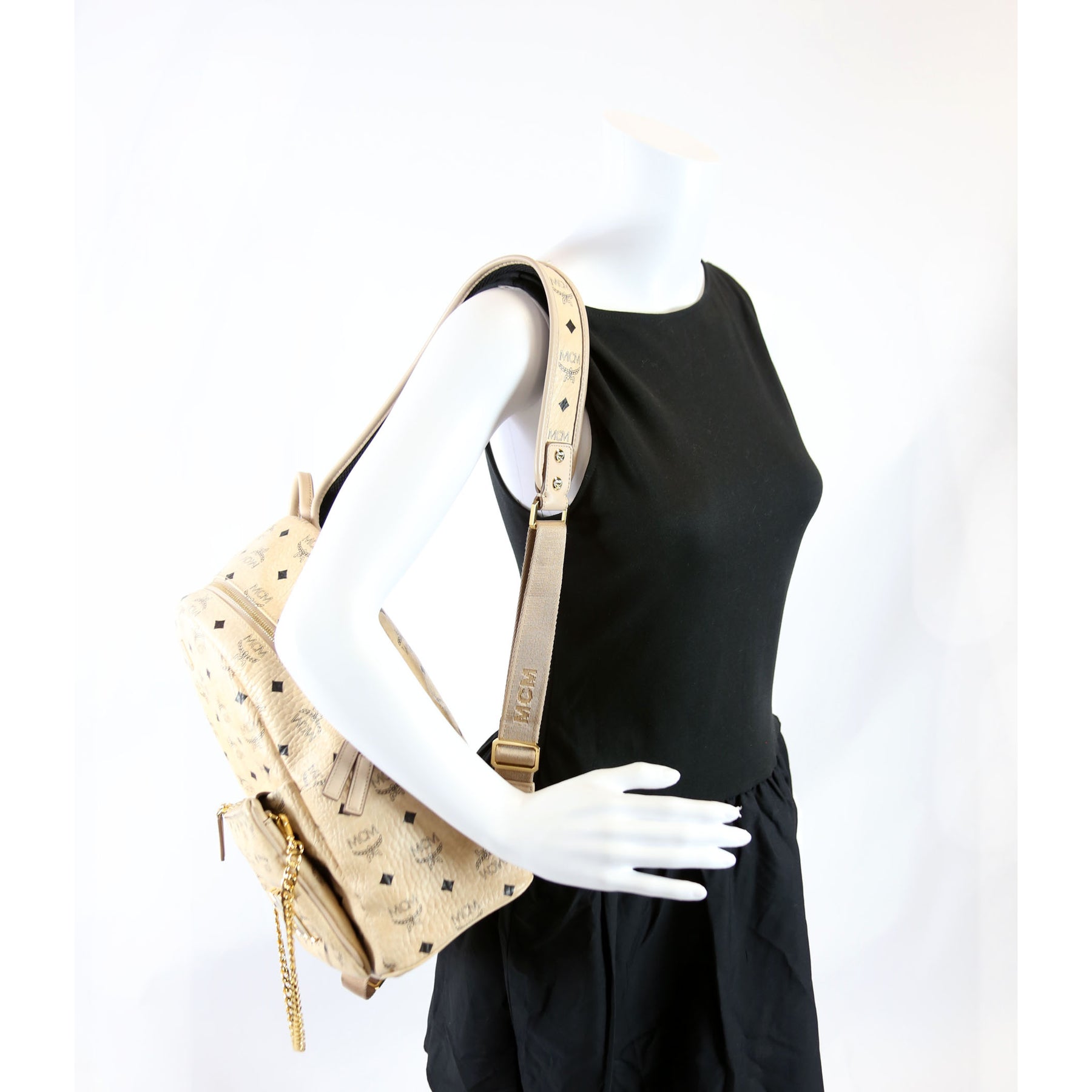 This pre-owned MCM Trilogie Stark Visetos Backpack is guaranteed 100% authentic.