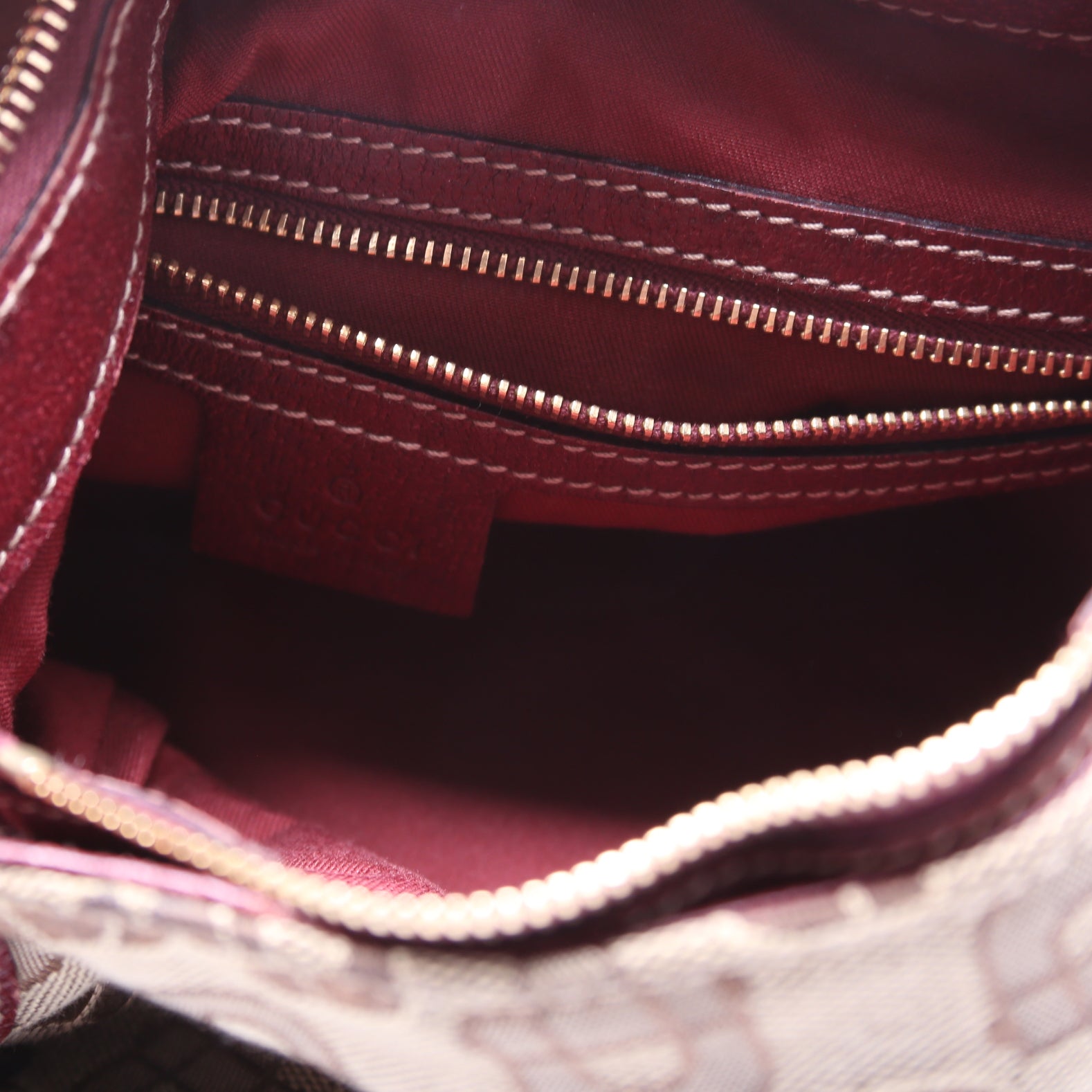This pre-owned Gucci Horsebit Canvas Creole Hobo is guaranteed 100% authentic. The exterior is in the classic Gucci Horsebit canvas.