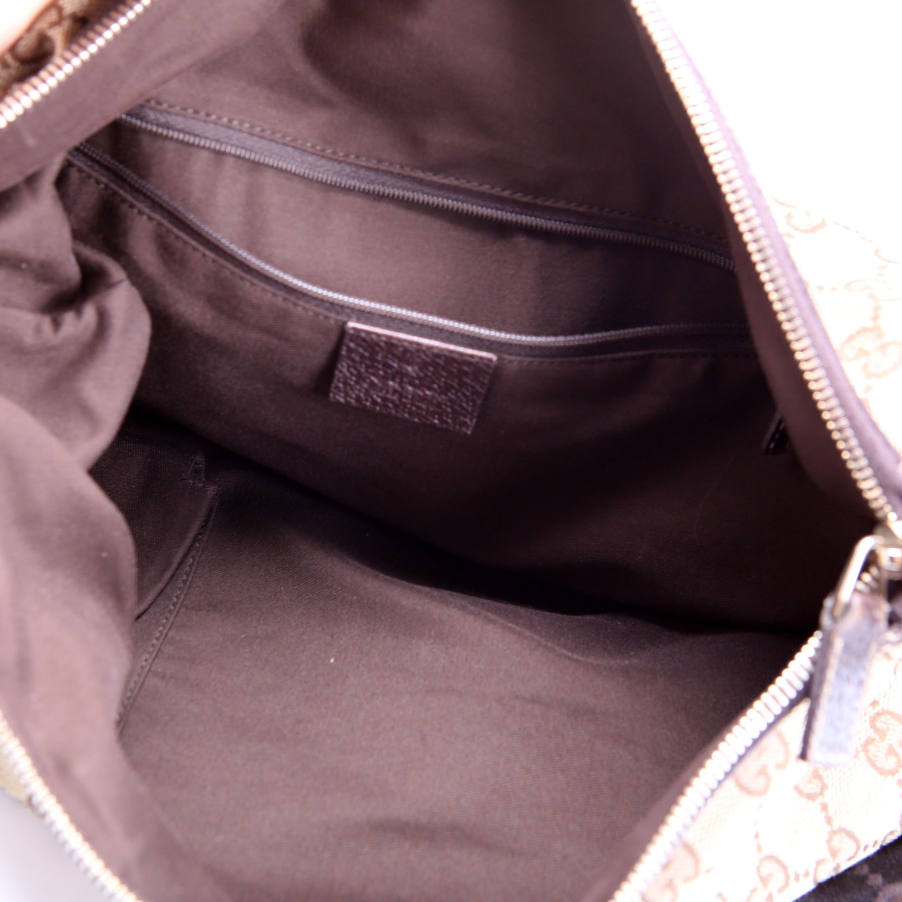 Interior: The interior is free from wear. It features one open pocket, and one zip closure pocket.