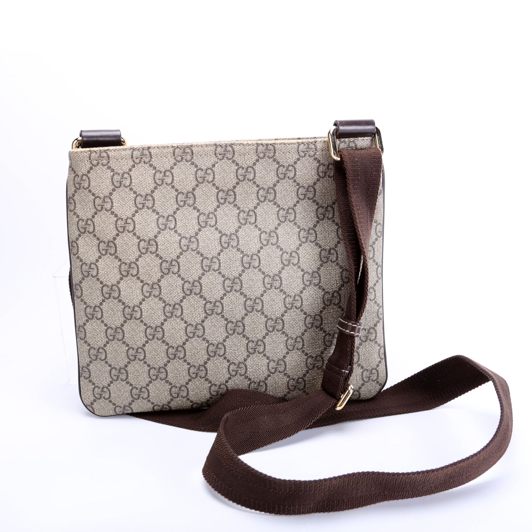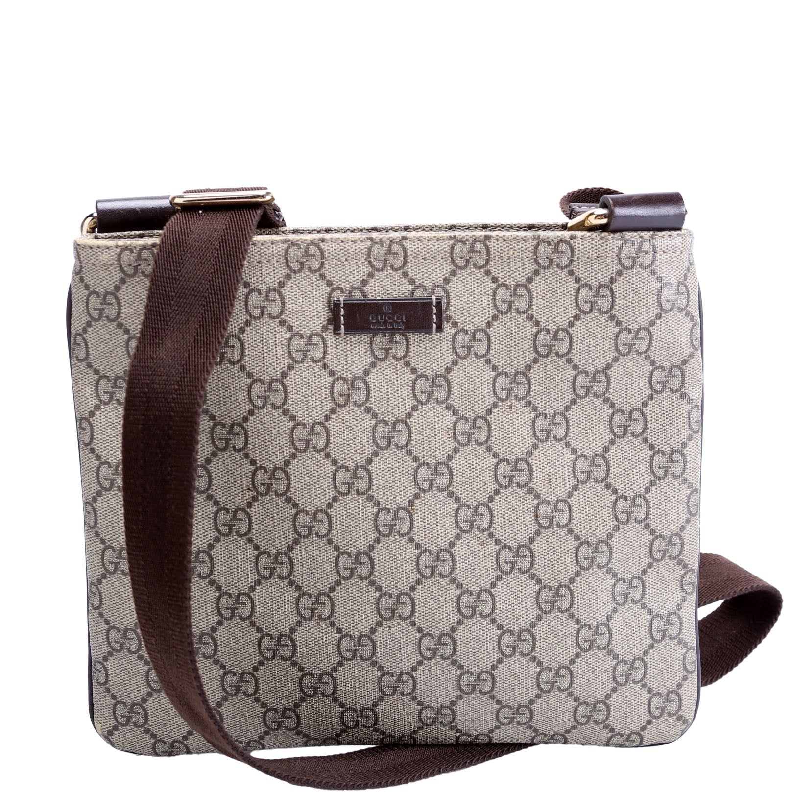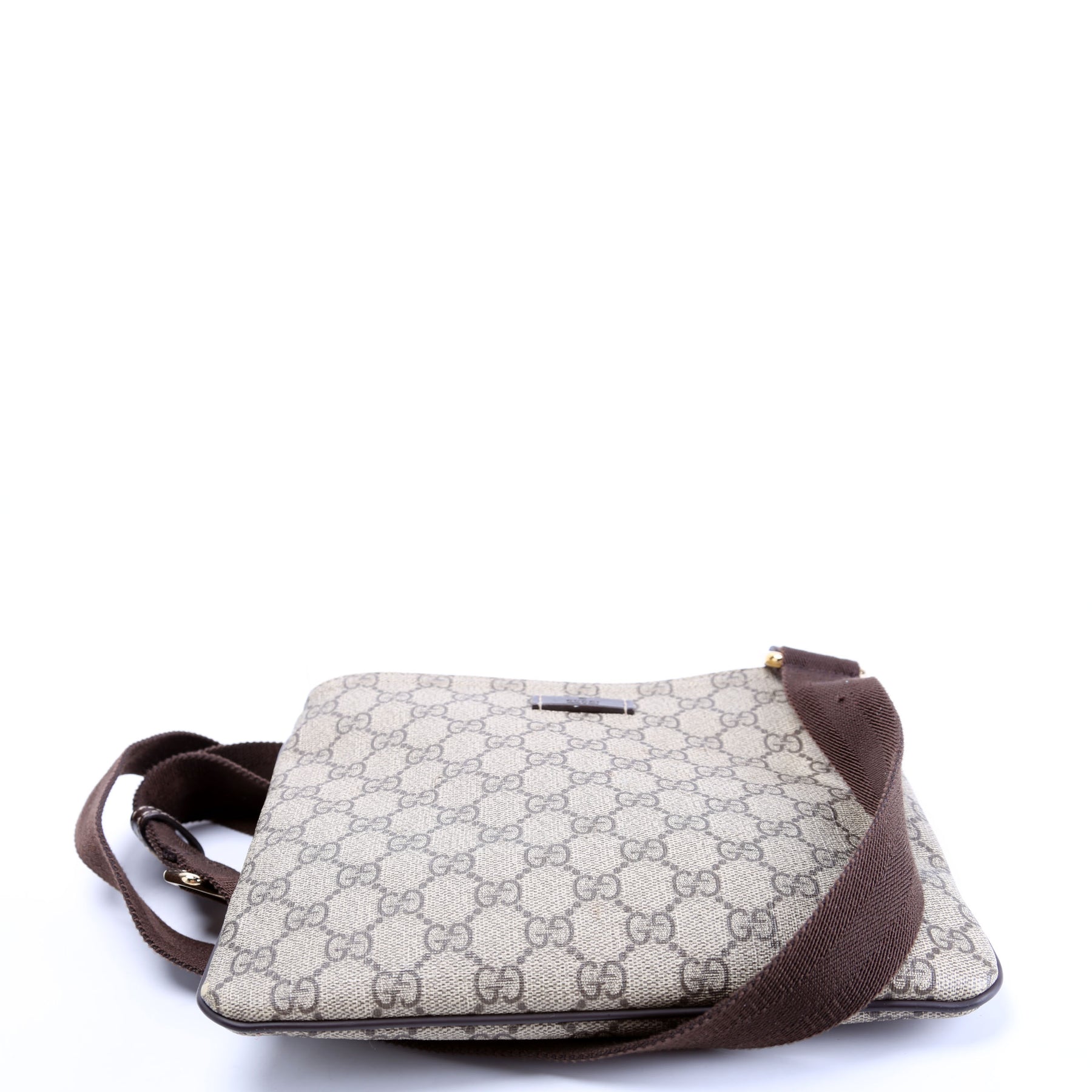 This pre-owned Gucci GG Supreme Flat Messenger Bag is guaranteed 100% authentic. The exterior is in the classic Gucci GG Supreme coated canvas.