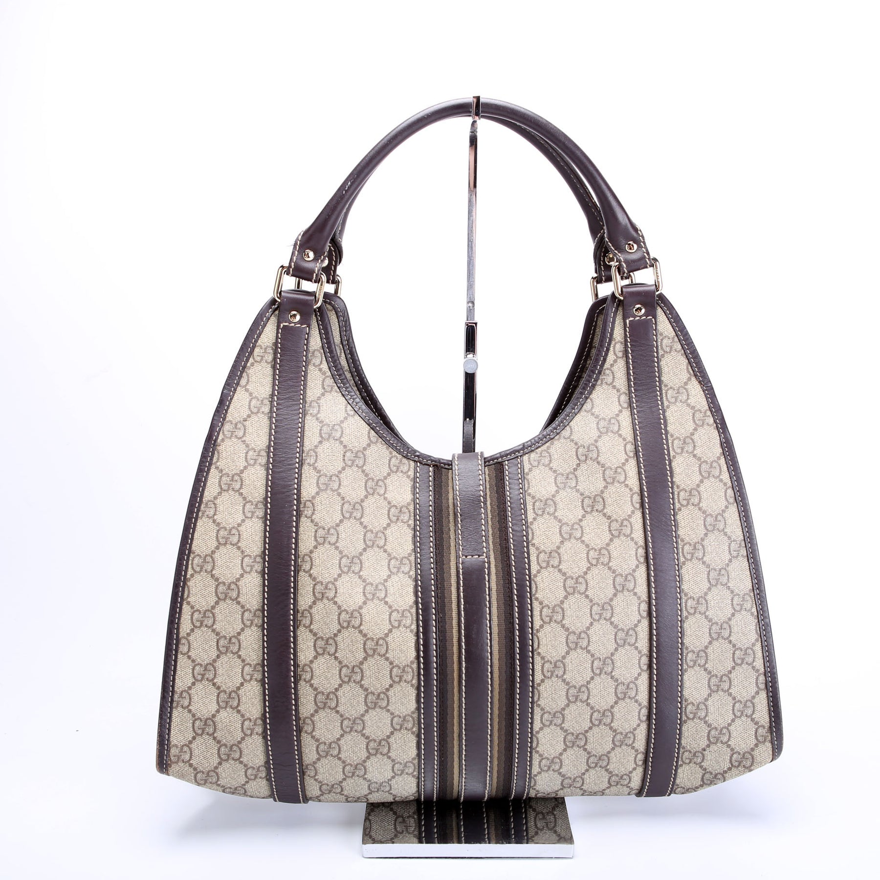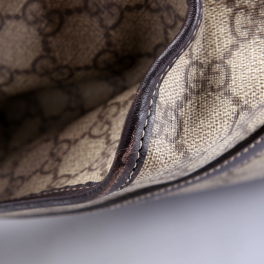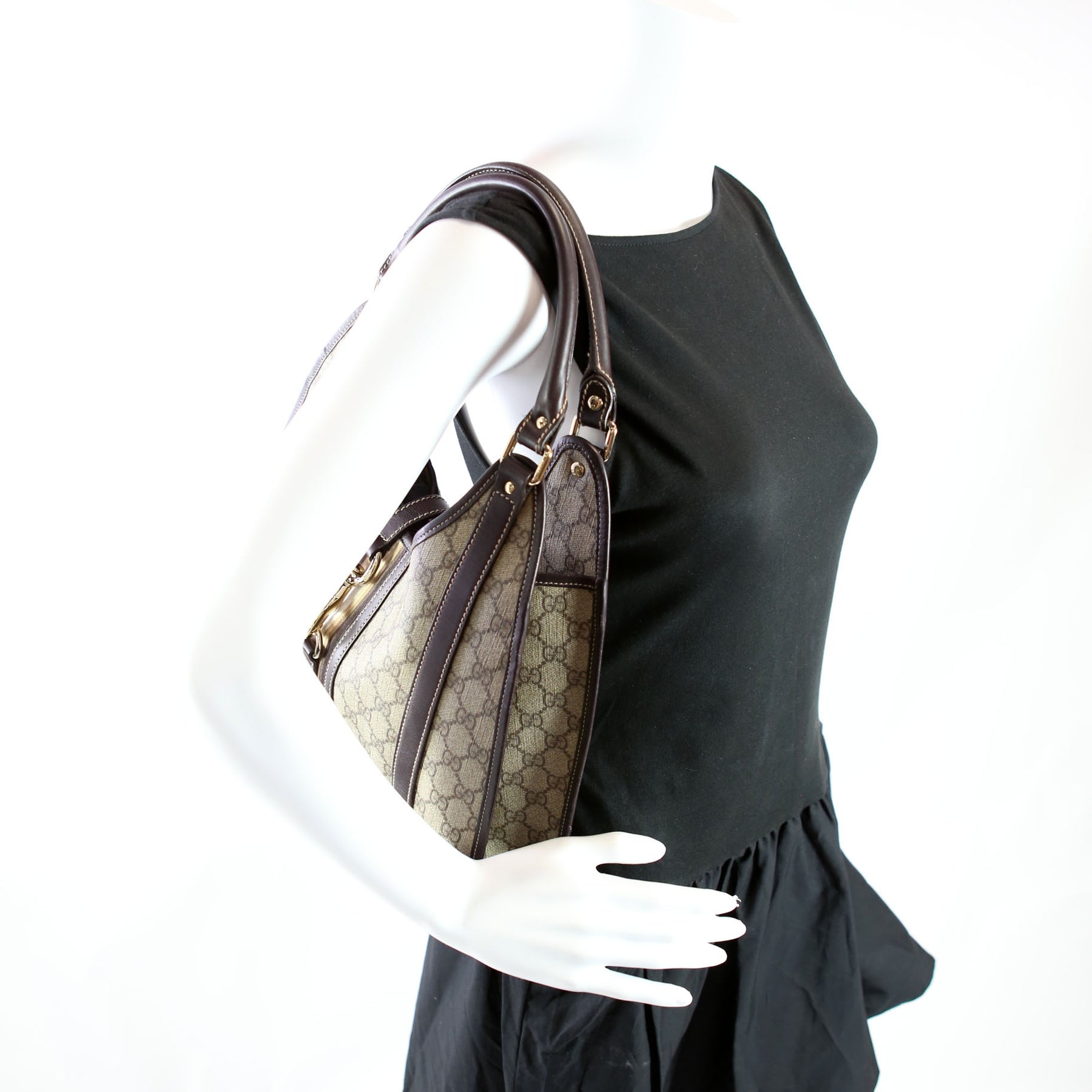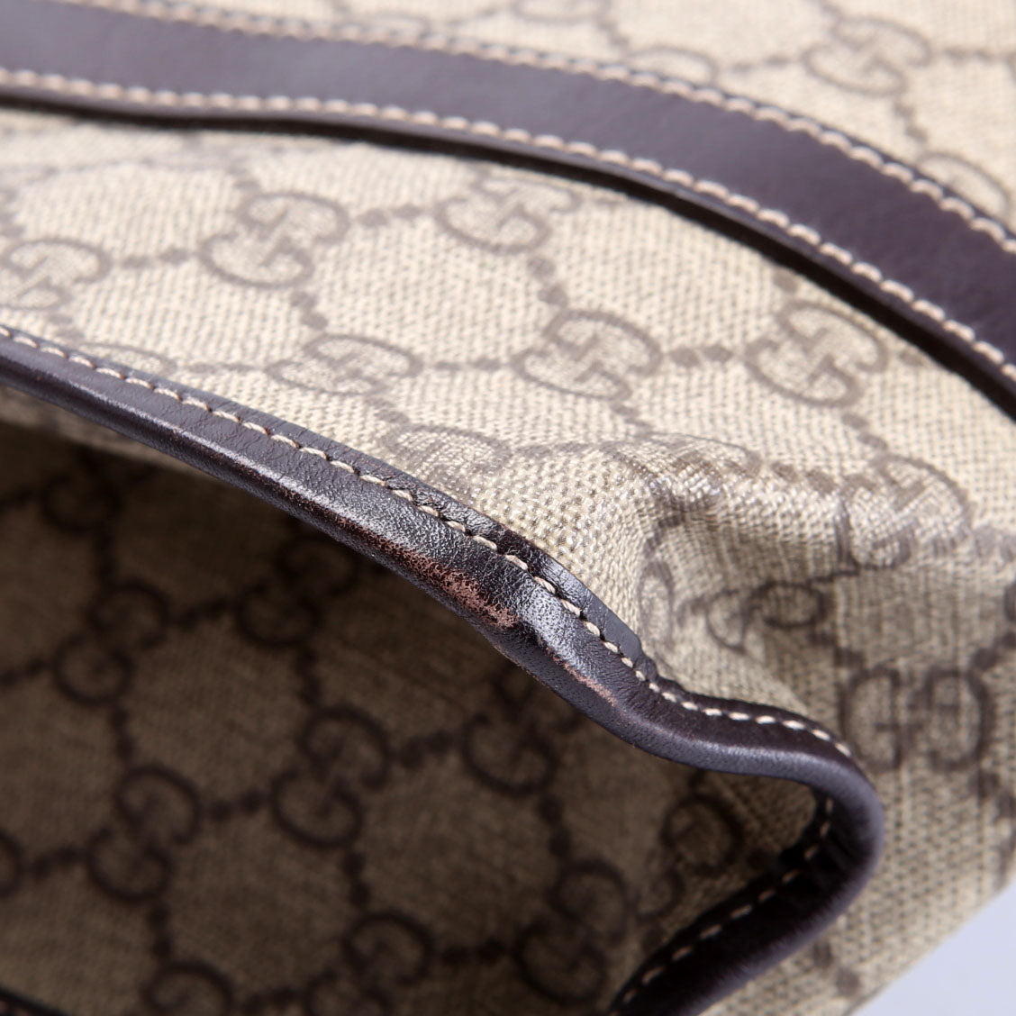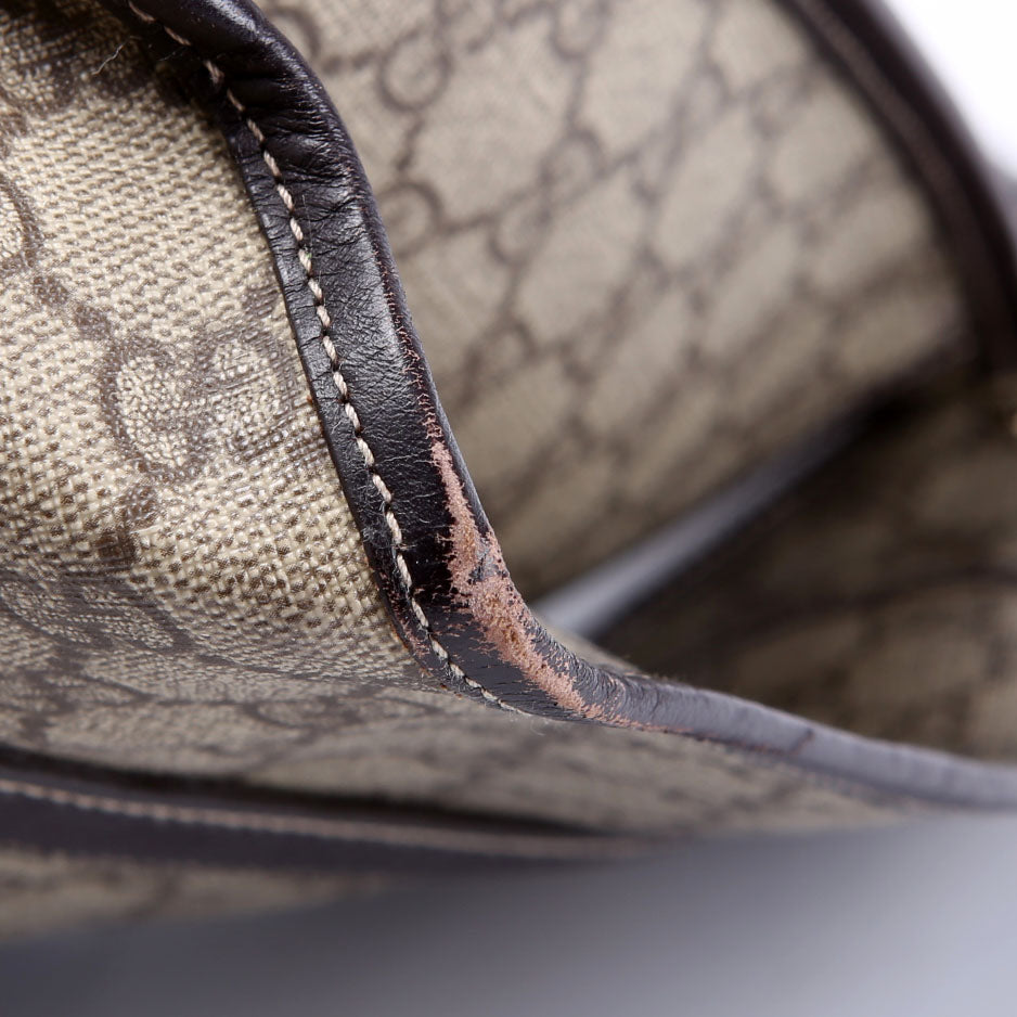 This pre-owned Gucci GG Supreme Medium Joy Shoulder Bag is guaranteed 100% authentic. The exterior is in the classic Gucci GG Supreme coated canvas.