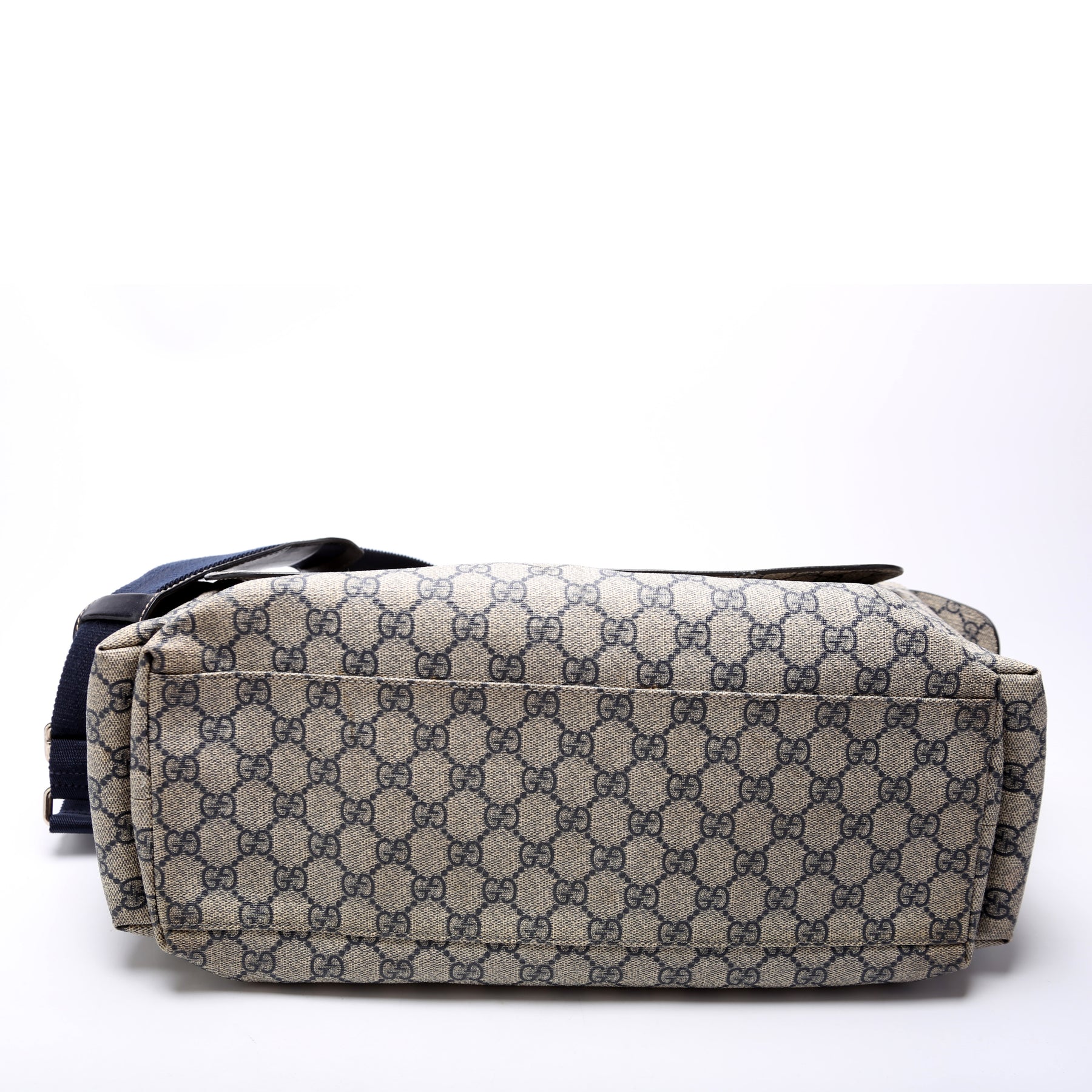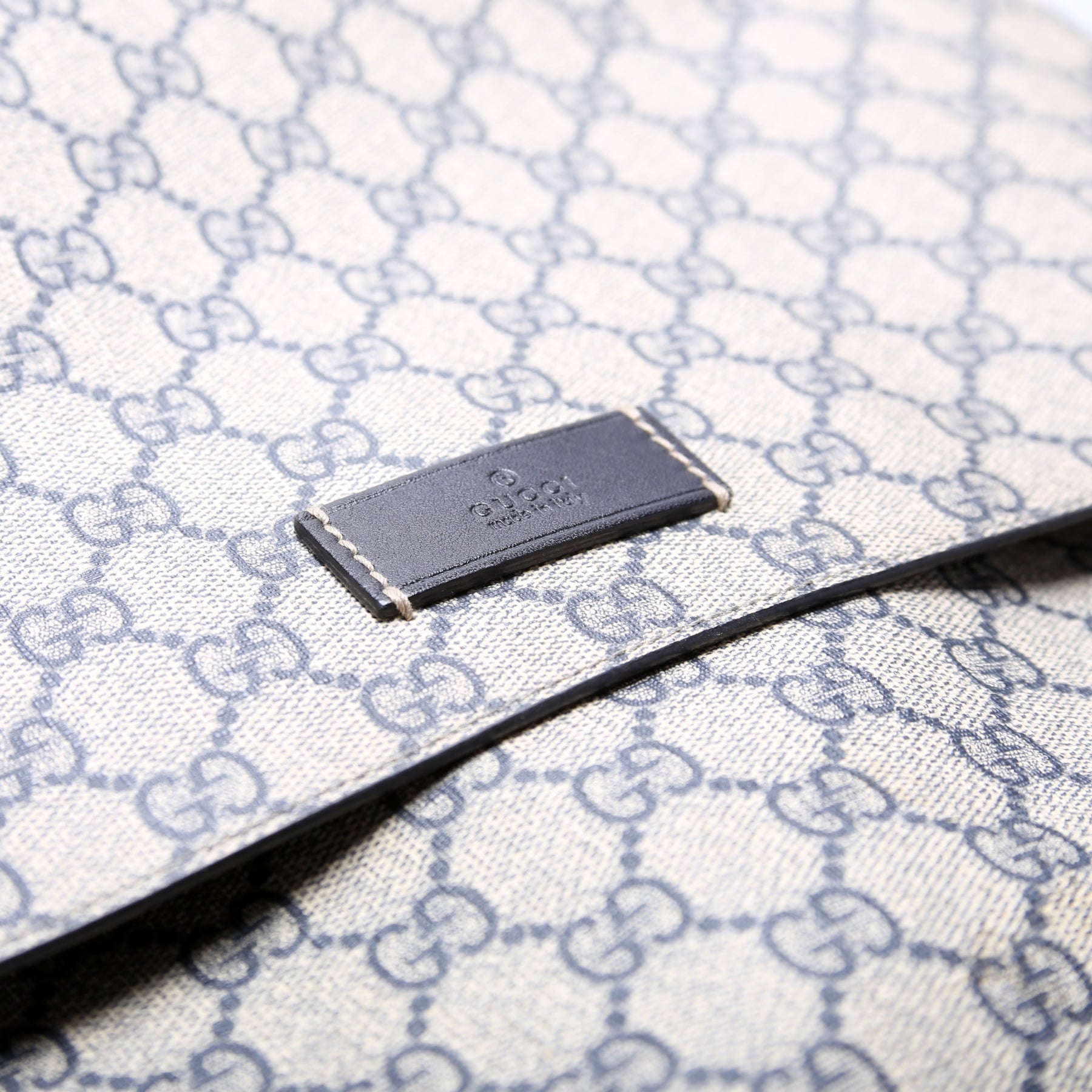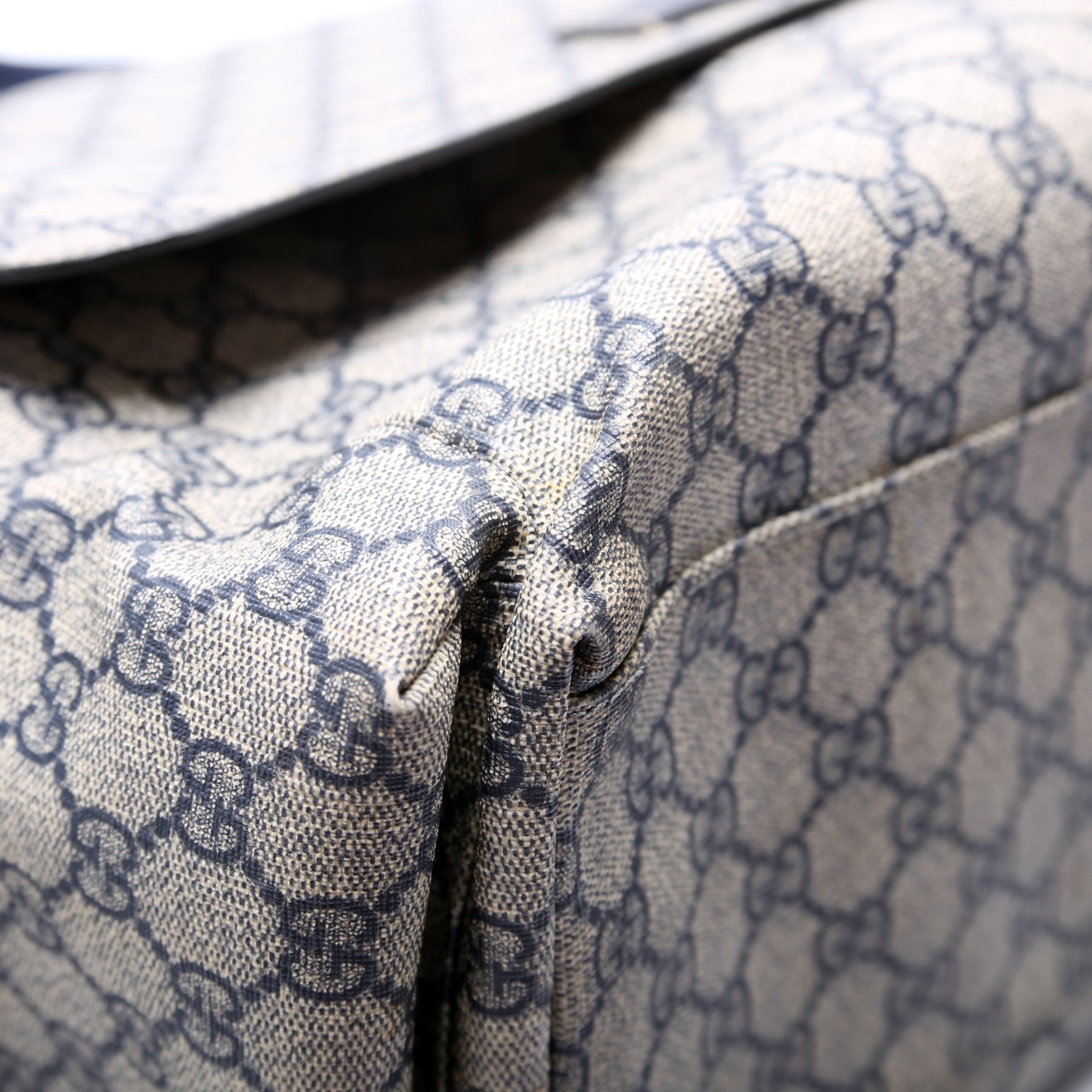 This pre-owned Gucci GG Canvas Diaper Bag is guaranteed 100% authentic. The exterior is in the classic Gucci GG coated canvas.