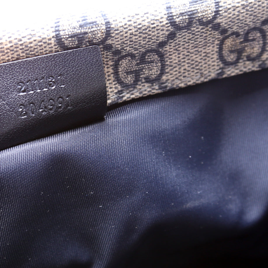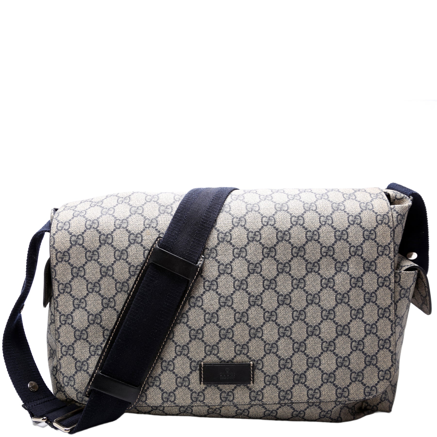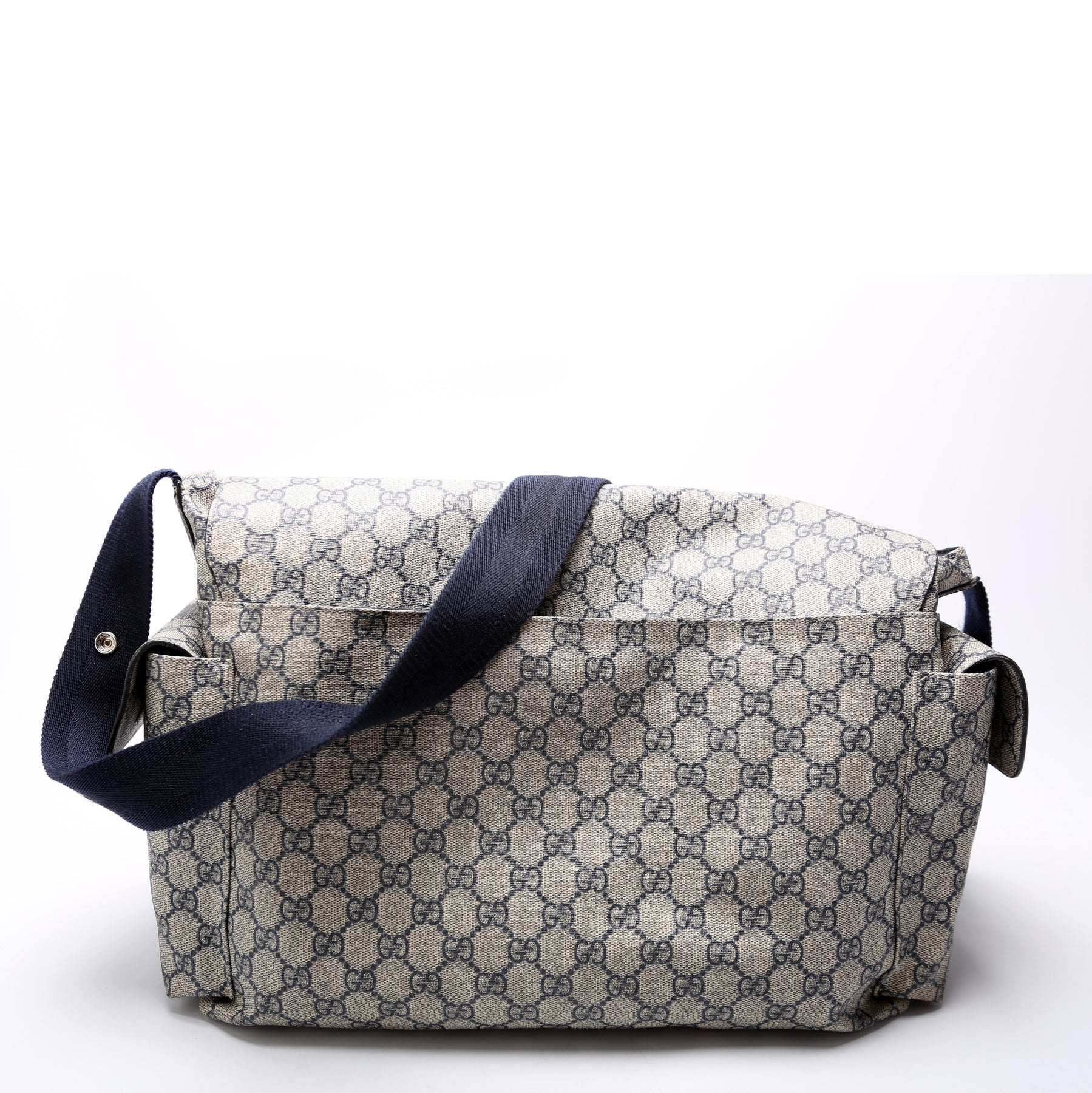 This pre-owned Gucci GG Canvas Diaper Bag is guaranteed 100% authentic. The exterior is in the classic Gucci GG coated canvas.