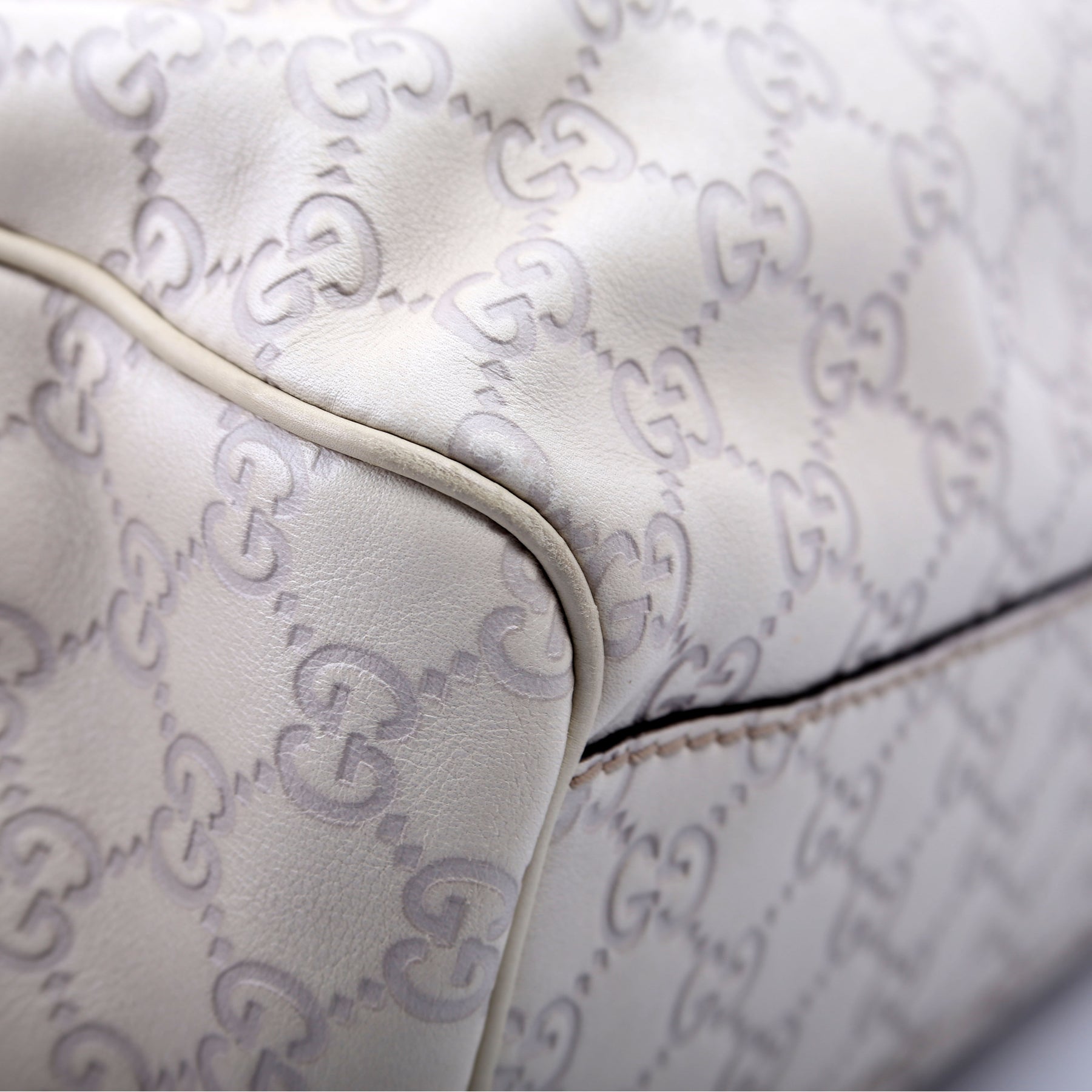 This pre-owned Gucci Sukey Medium is guaranteed 100% authentic. The exterior is in the classic Gucci Guccissima leather.