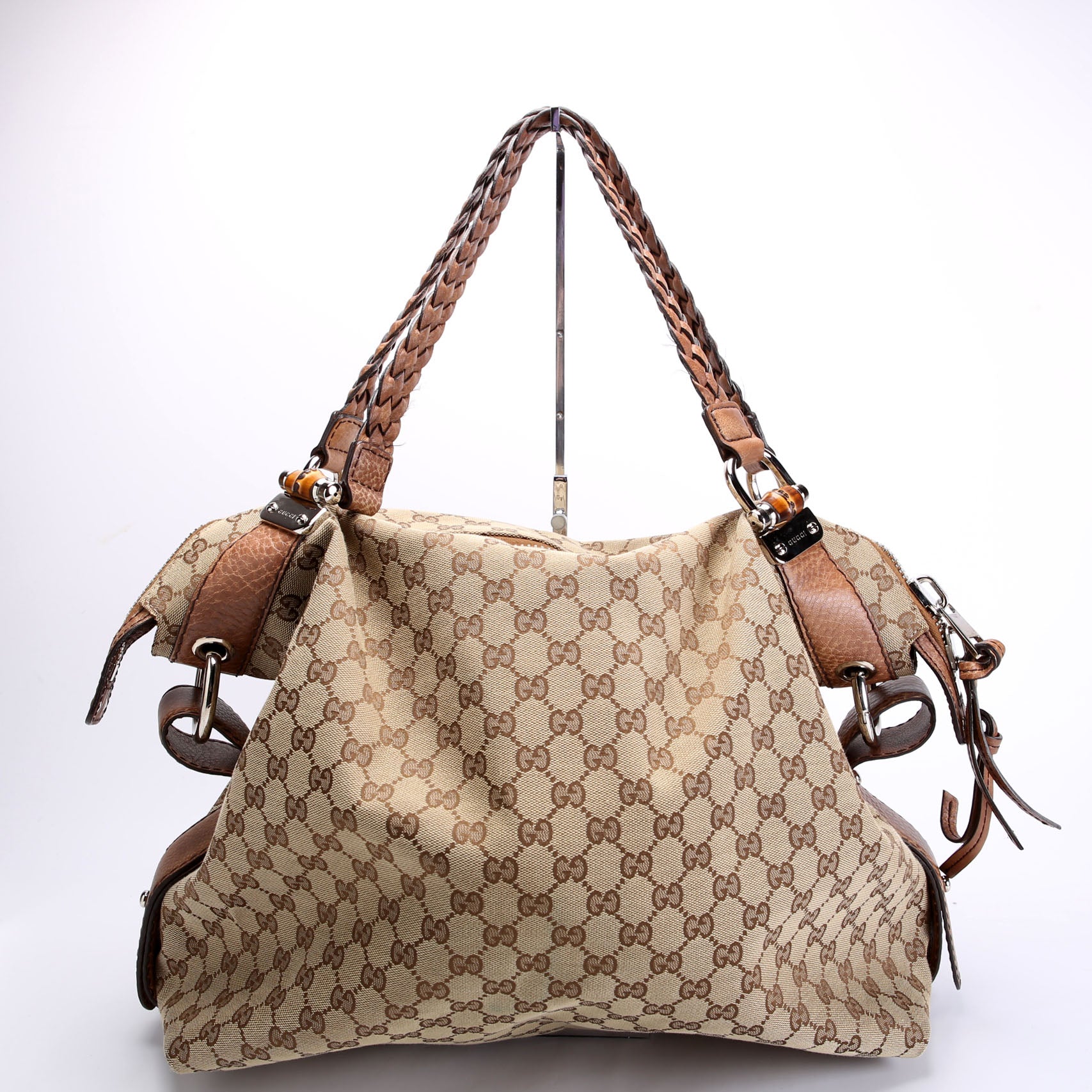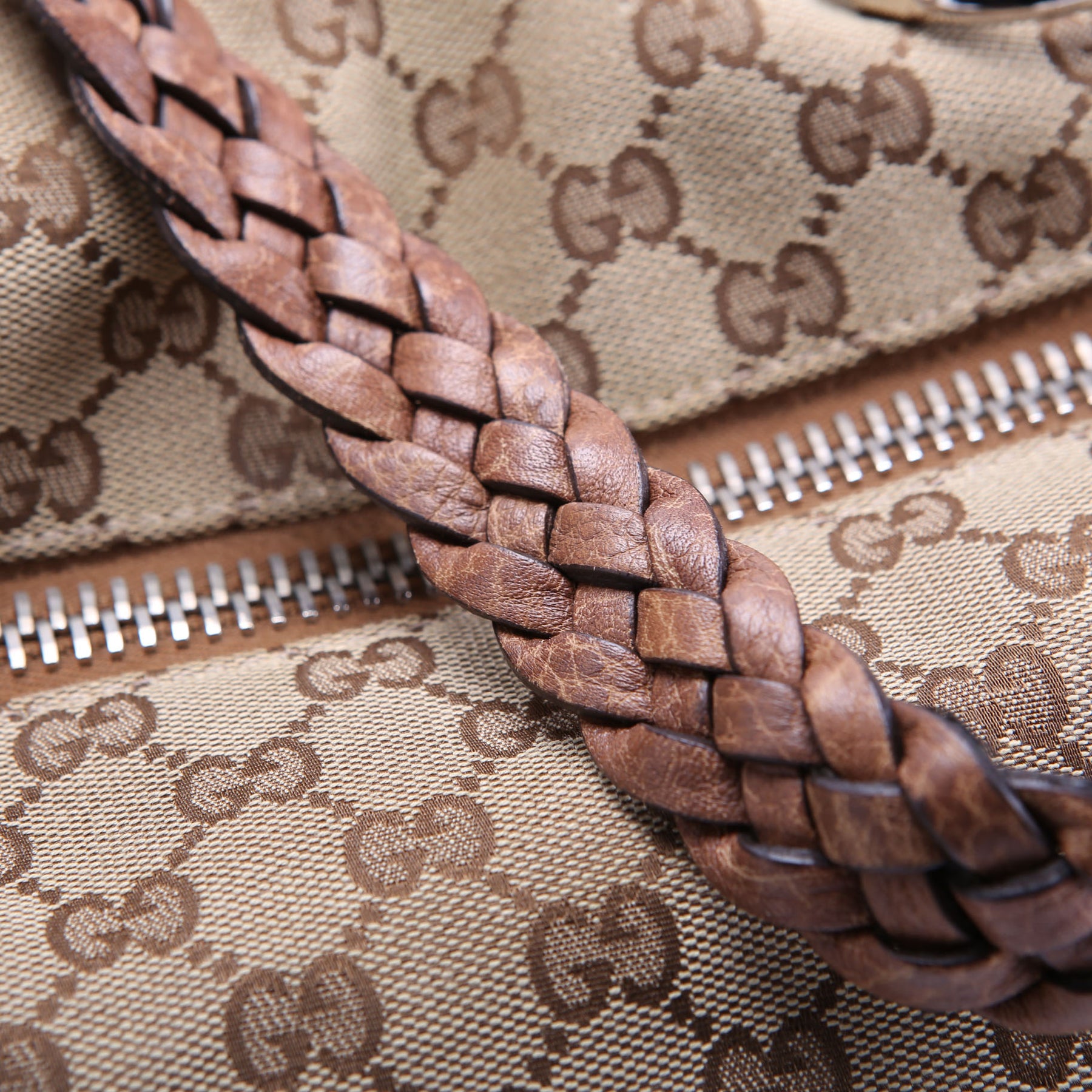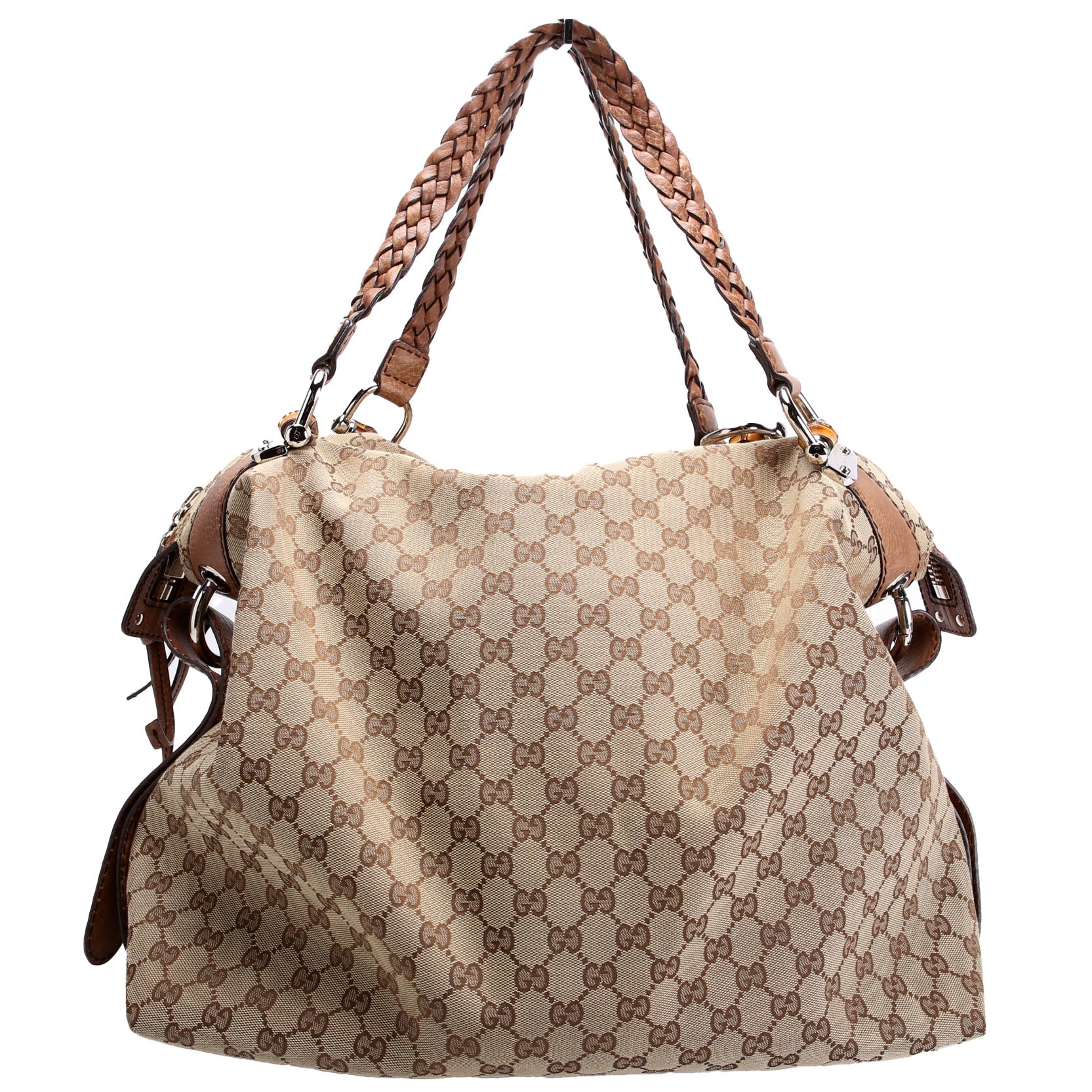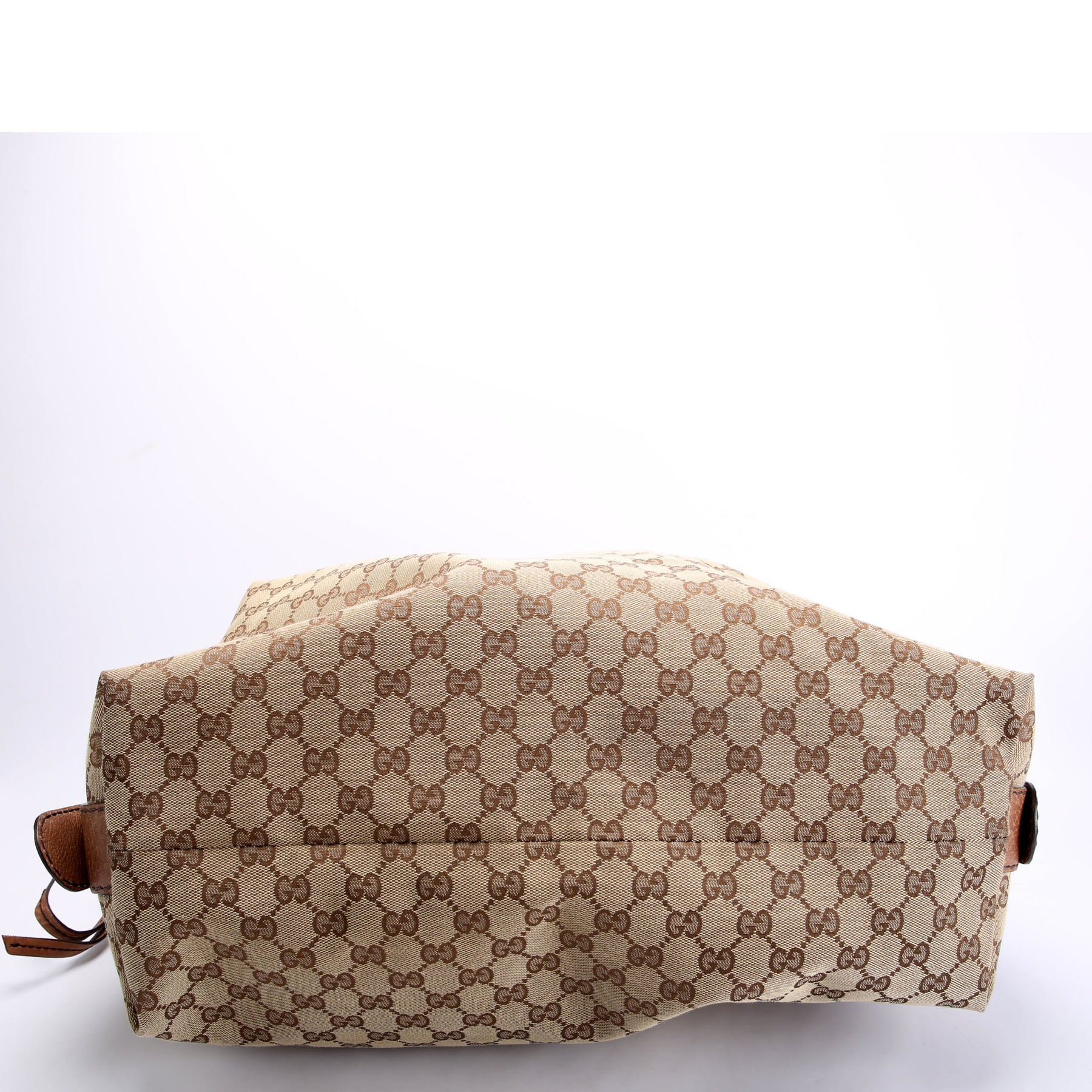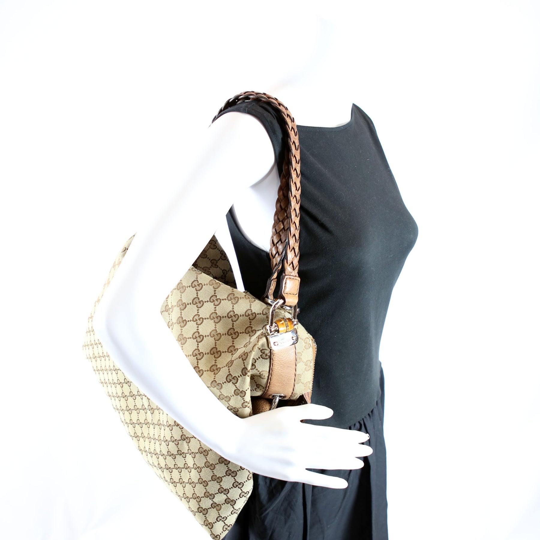 This pre-owned Gucci Bamboo Car Large GG Canvas Shoulder Bag is guaranteed 100% authentic.
