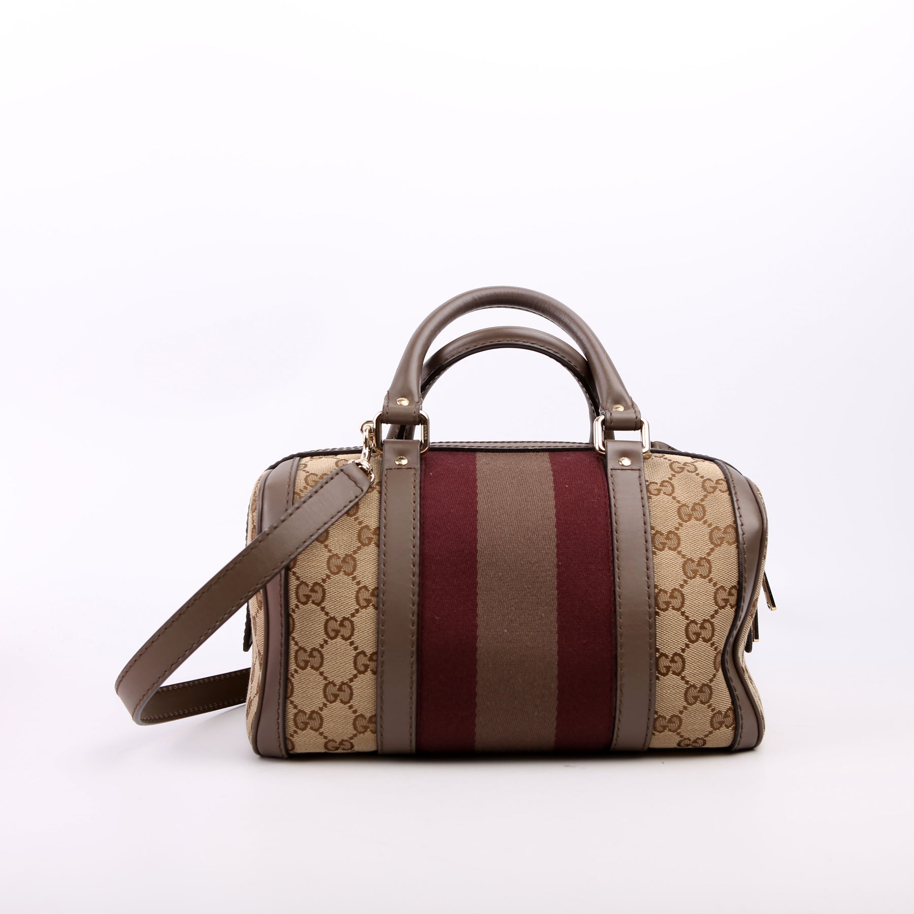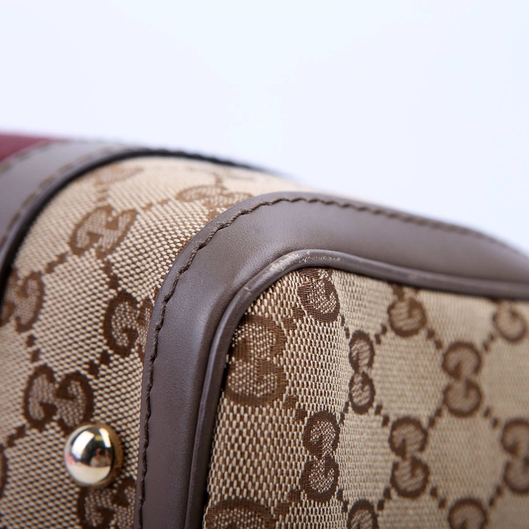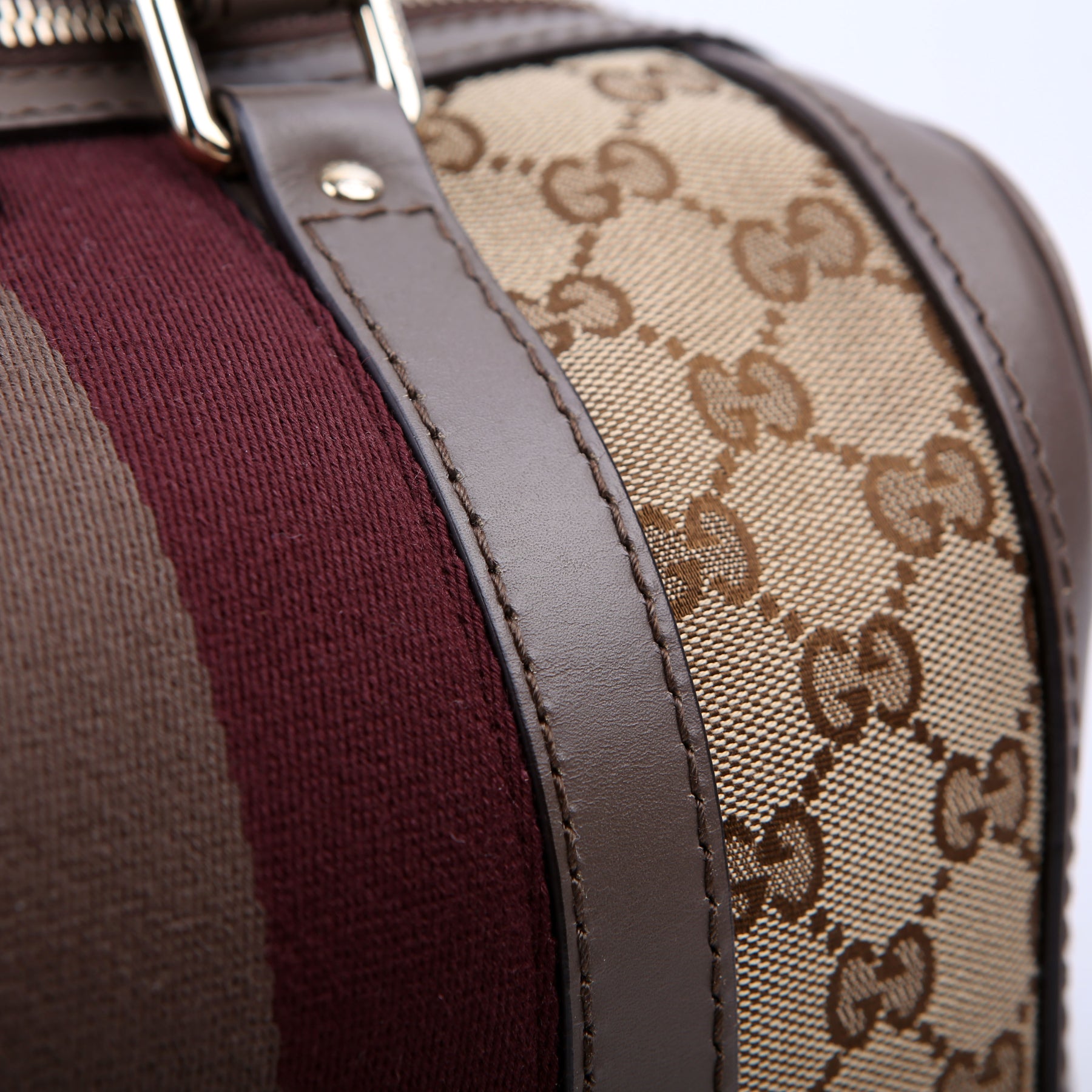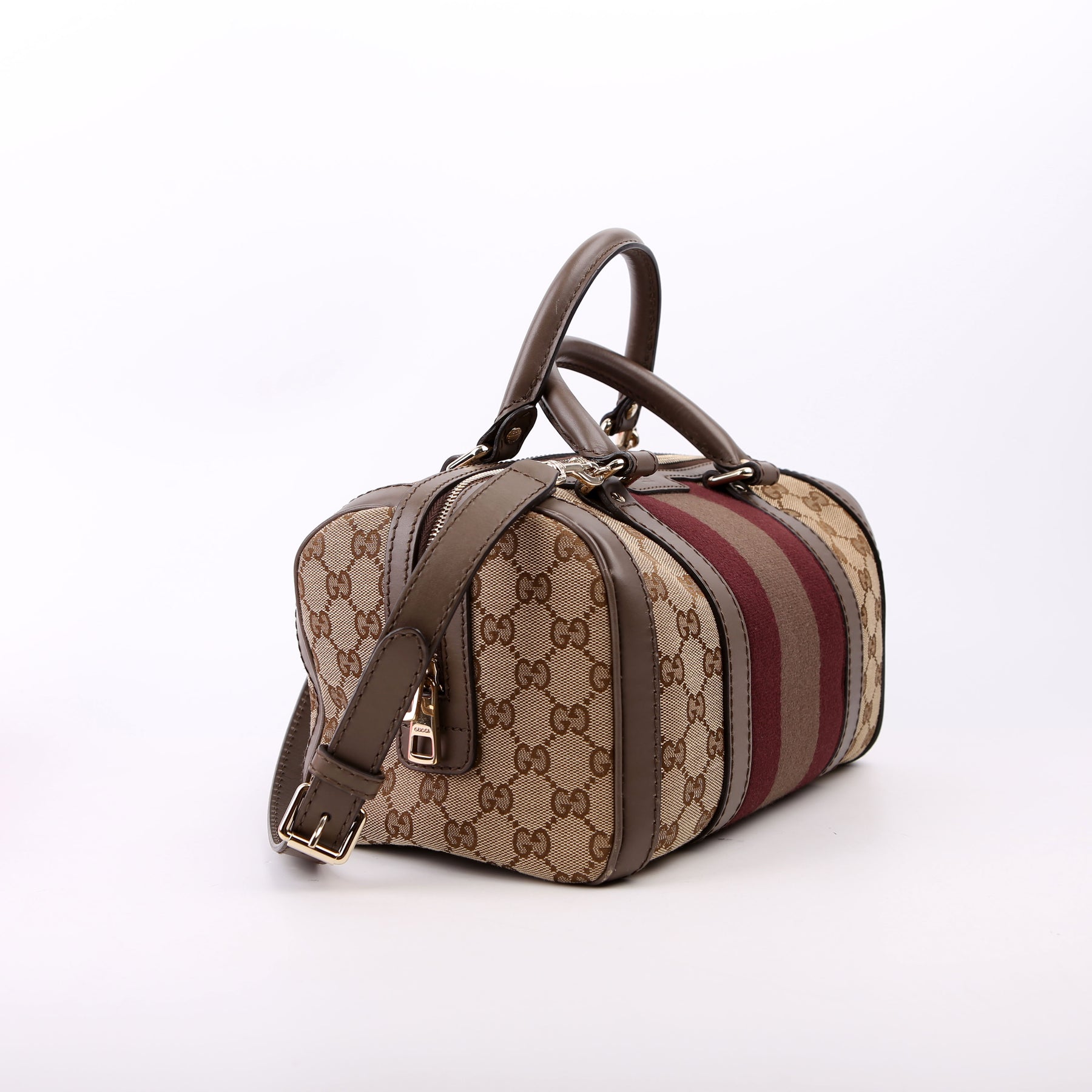 This pre-owned Gucci Small Boston is guaranteed 100% authentic. The exterior is in the Gucci canvas.