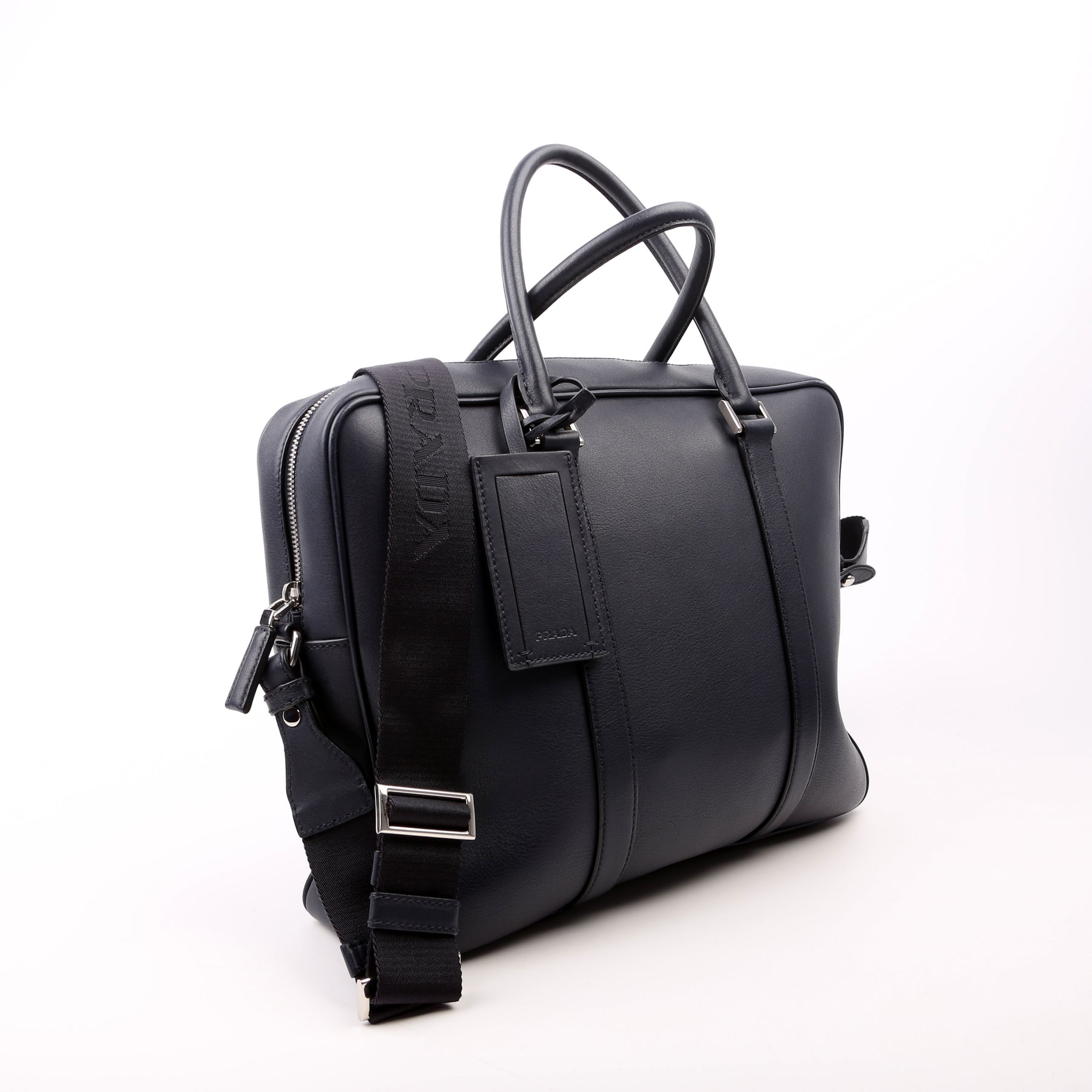 This pre-owned Prada Business 2-Way Bag is guaranteed 100% authentic. The exterior is leather.