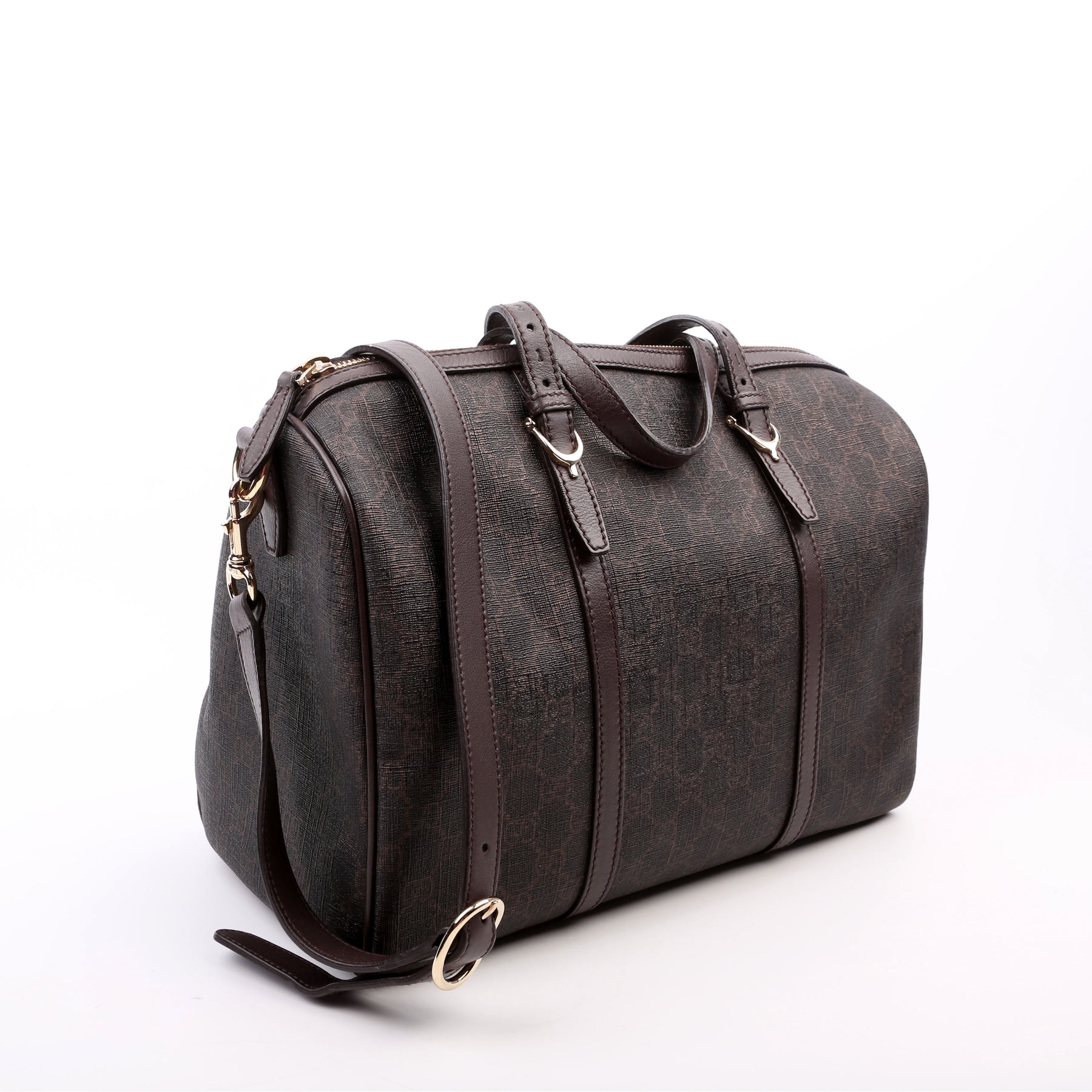 This pre-owned Gucci GG Supreme Boston Bag is guaranteed 100% authentic. The exterior is in the classic Gucci GG Supreme coated canvas.