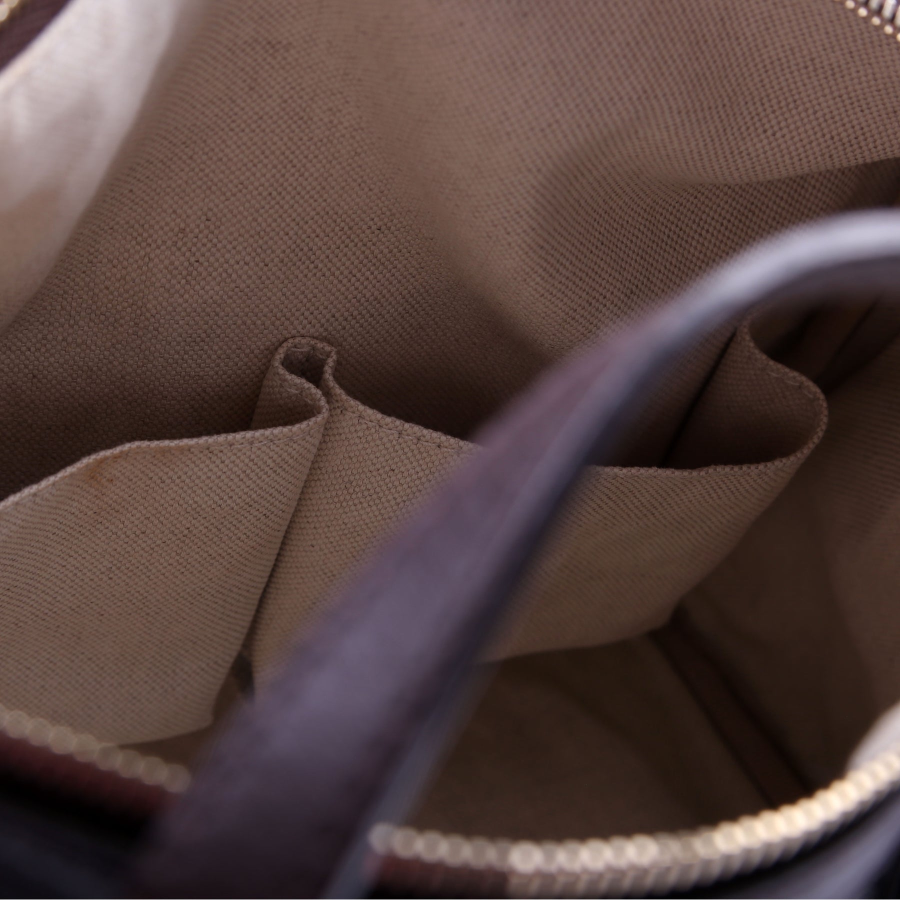 Interior: The interior is clean and is free of rips or tears. The interior features two open pocket and one zip closure pocket.