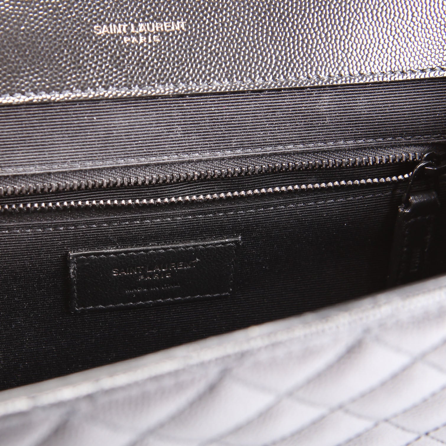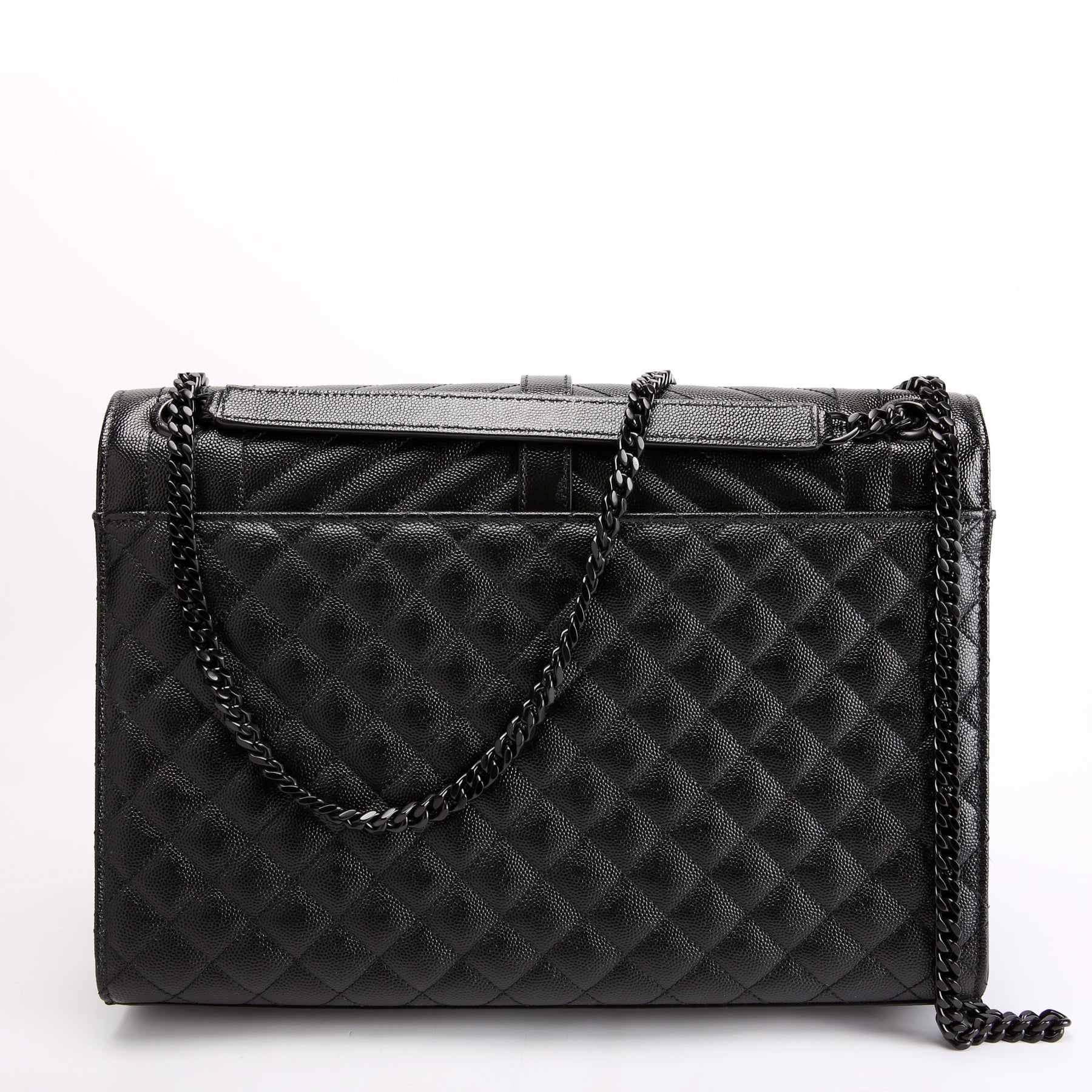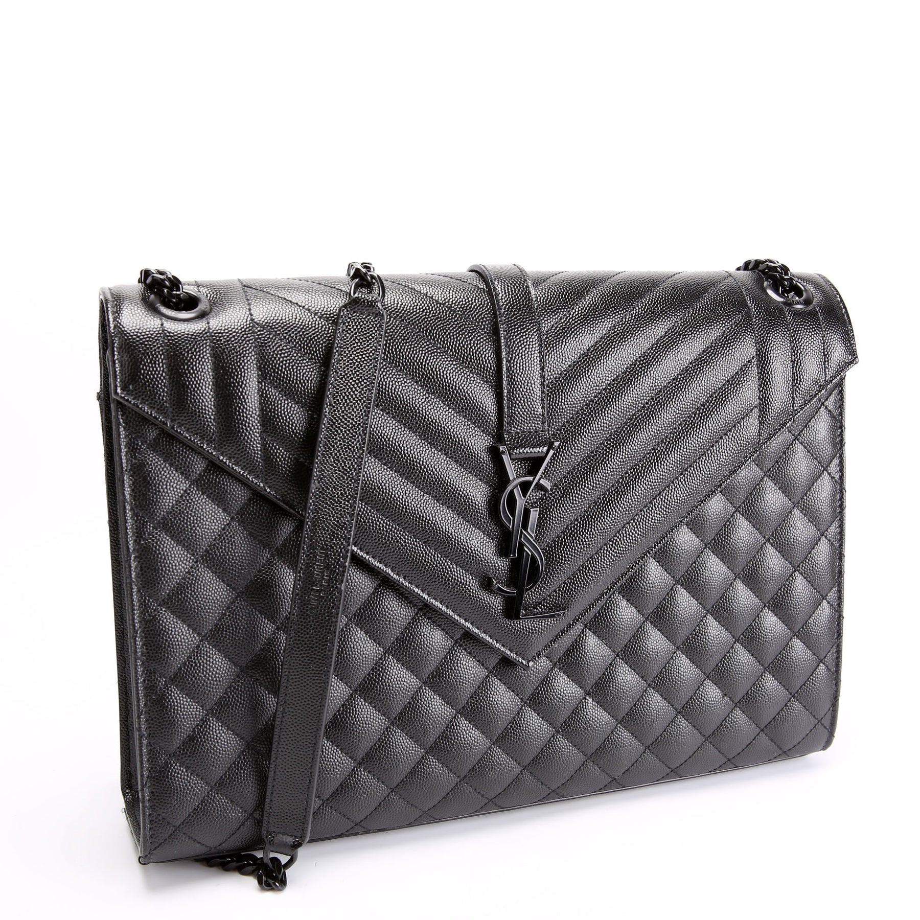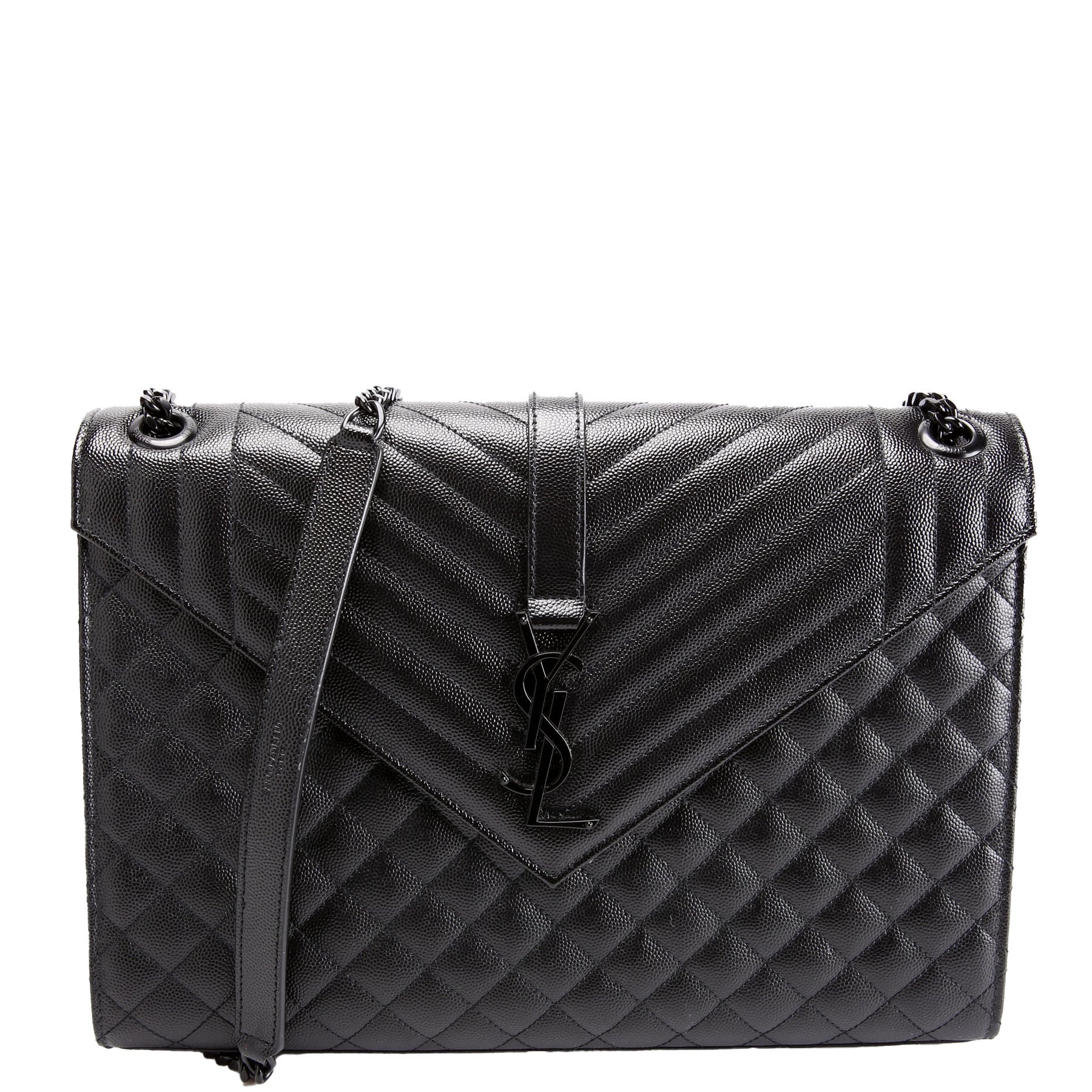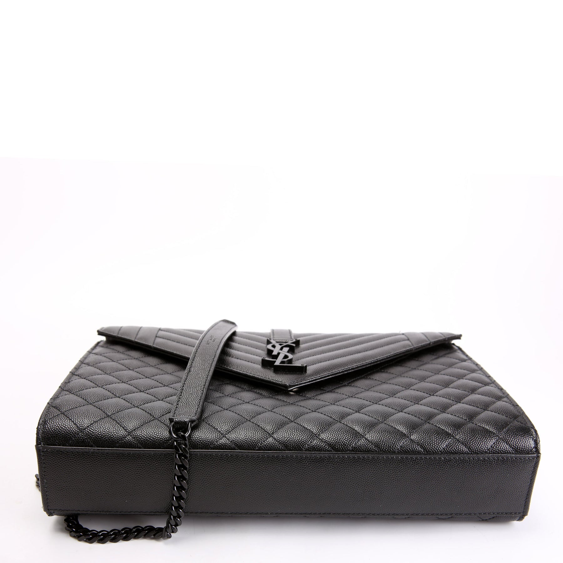 This pre-owned Saint Laurent Envelope Chevron Large is guaranteed 100% authentic. The exterior is in the classic Yves Saint Laurent grained leather.