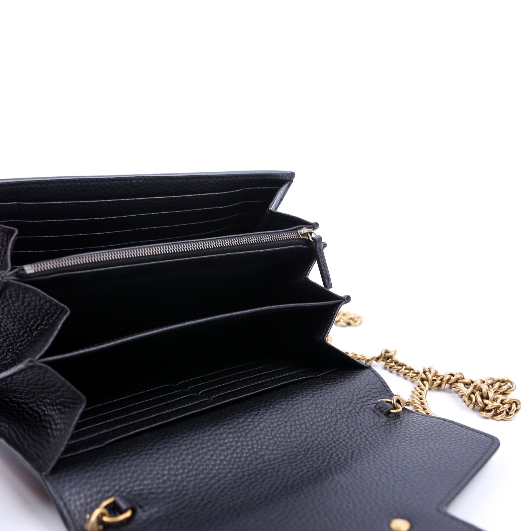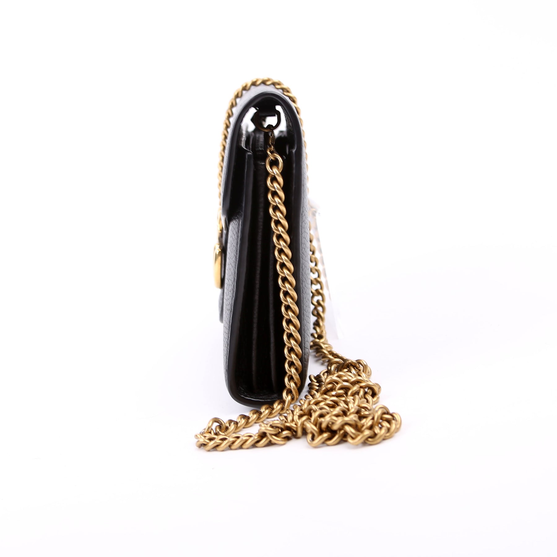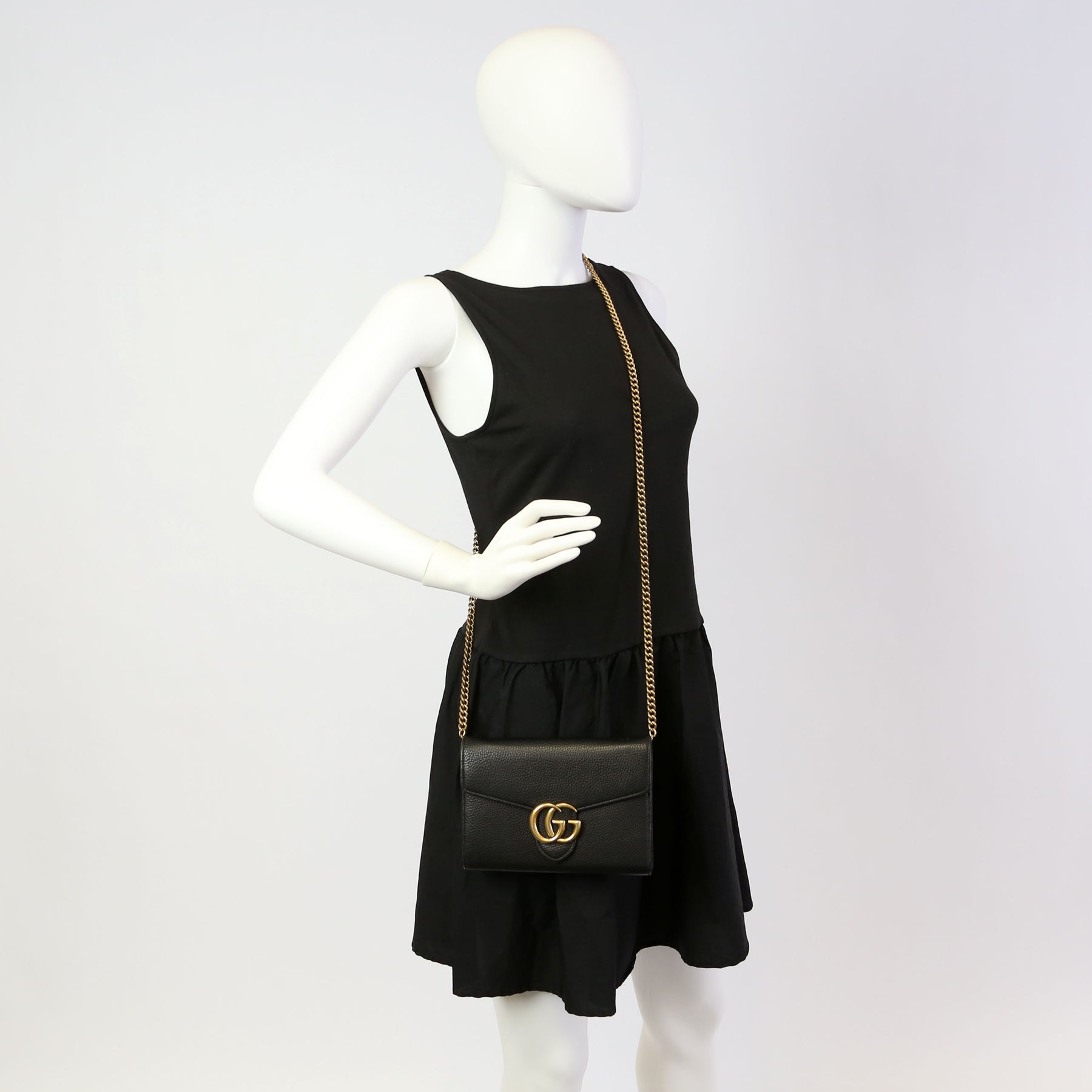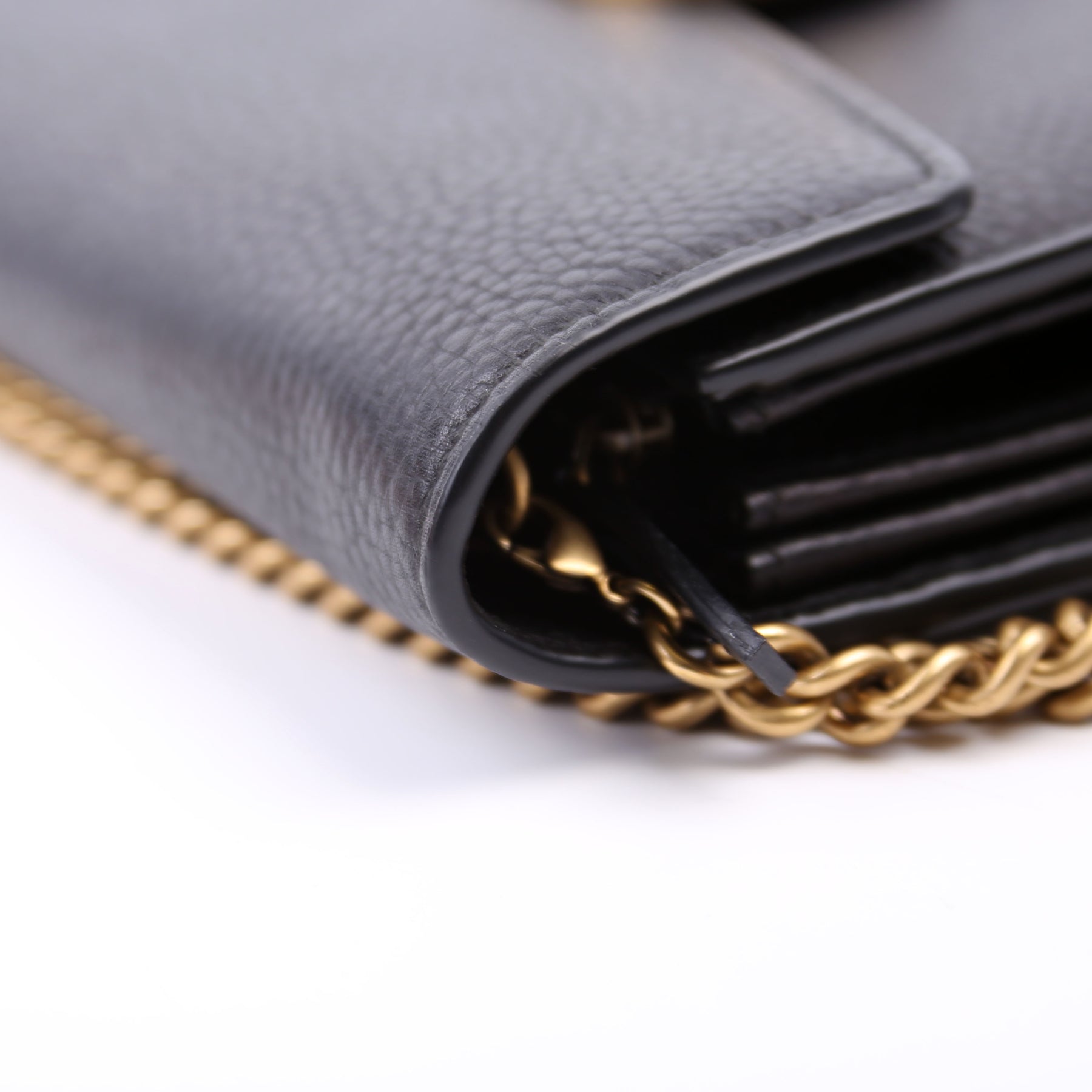 This pre-owned Gucci GG Marmont Chain Wallet is guaranteed 100% authentic. The exterior is in the classic Gucci Marmont leather.