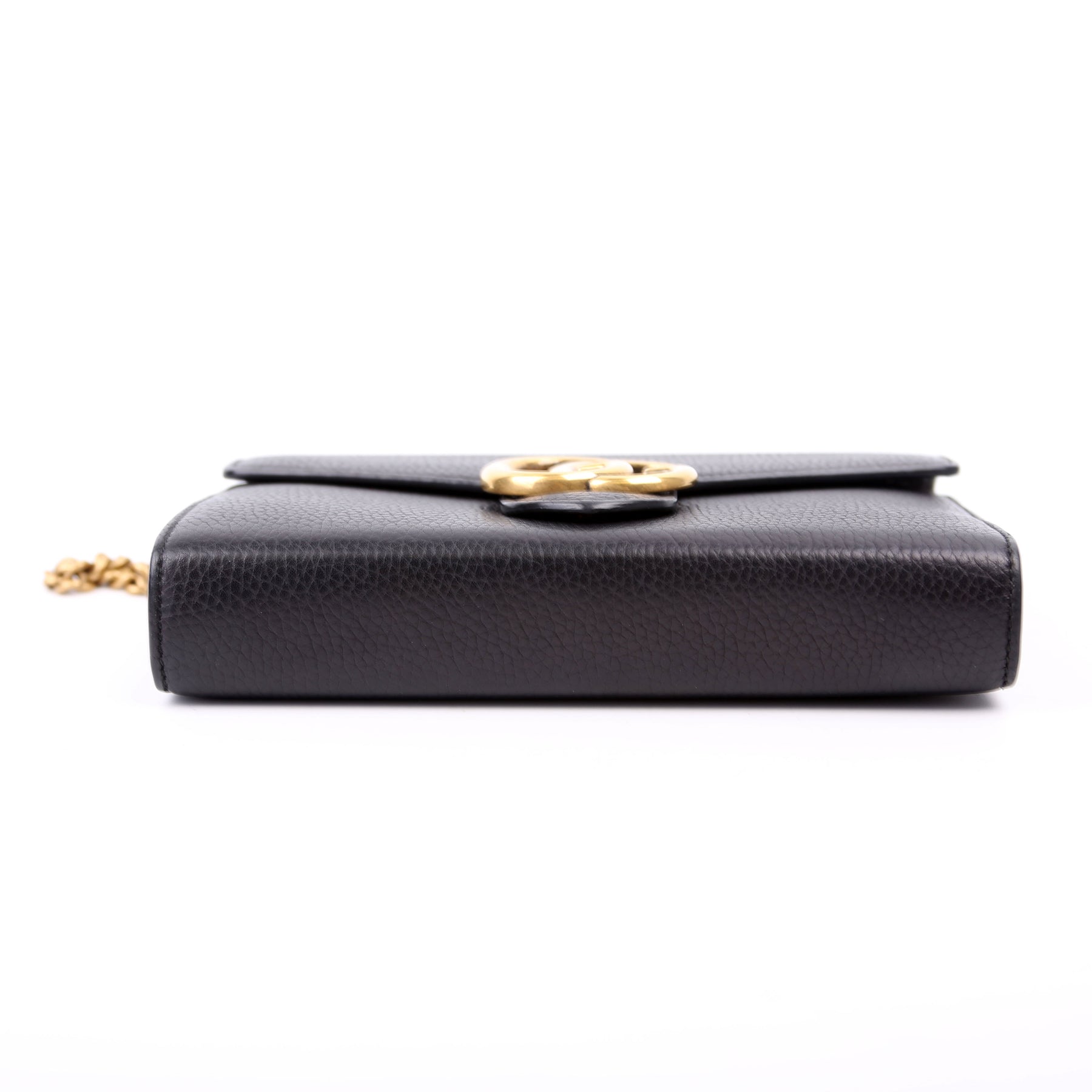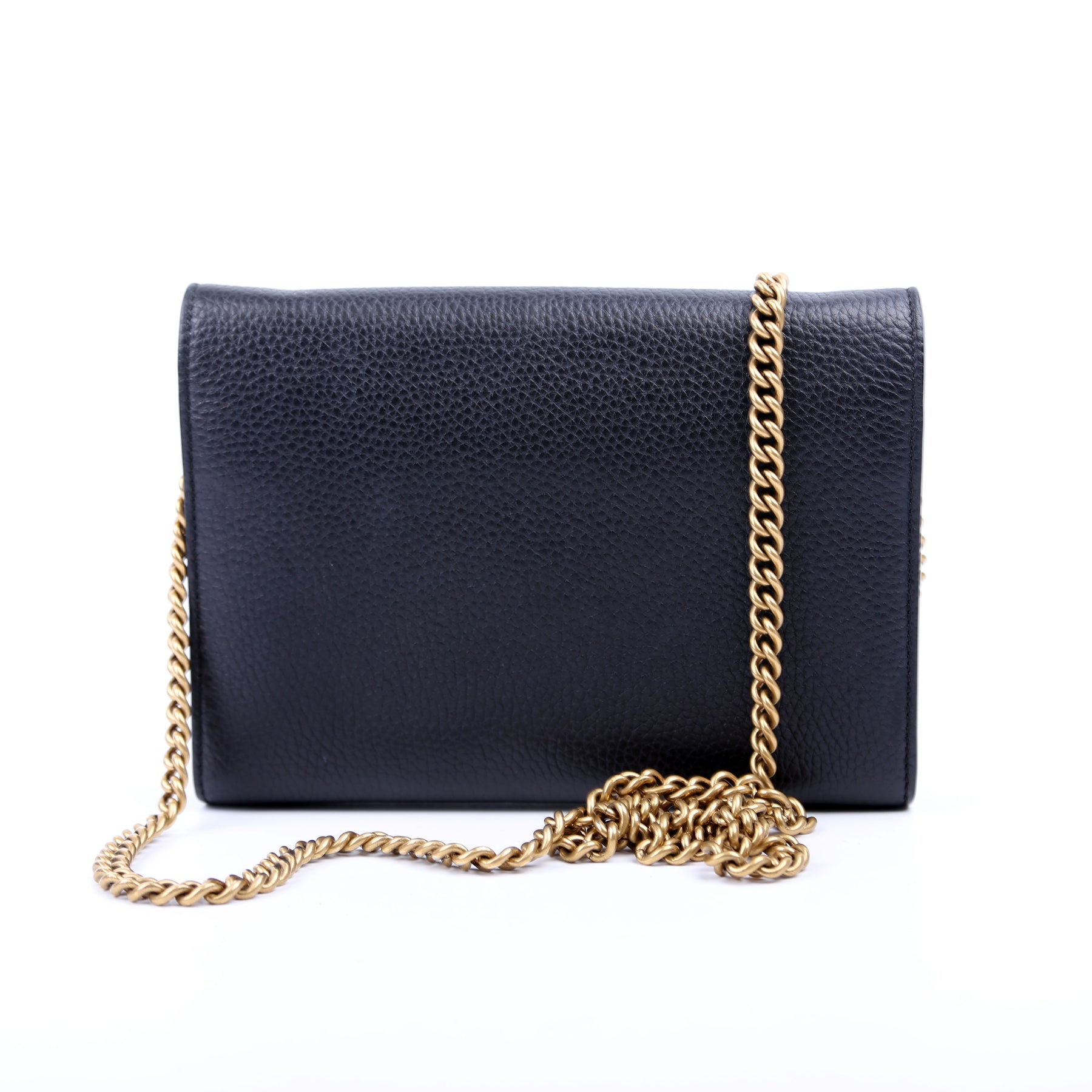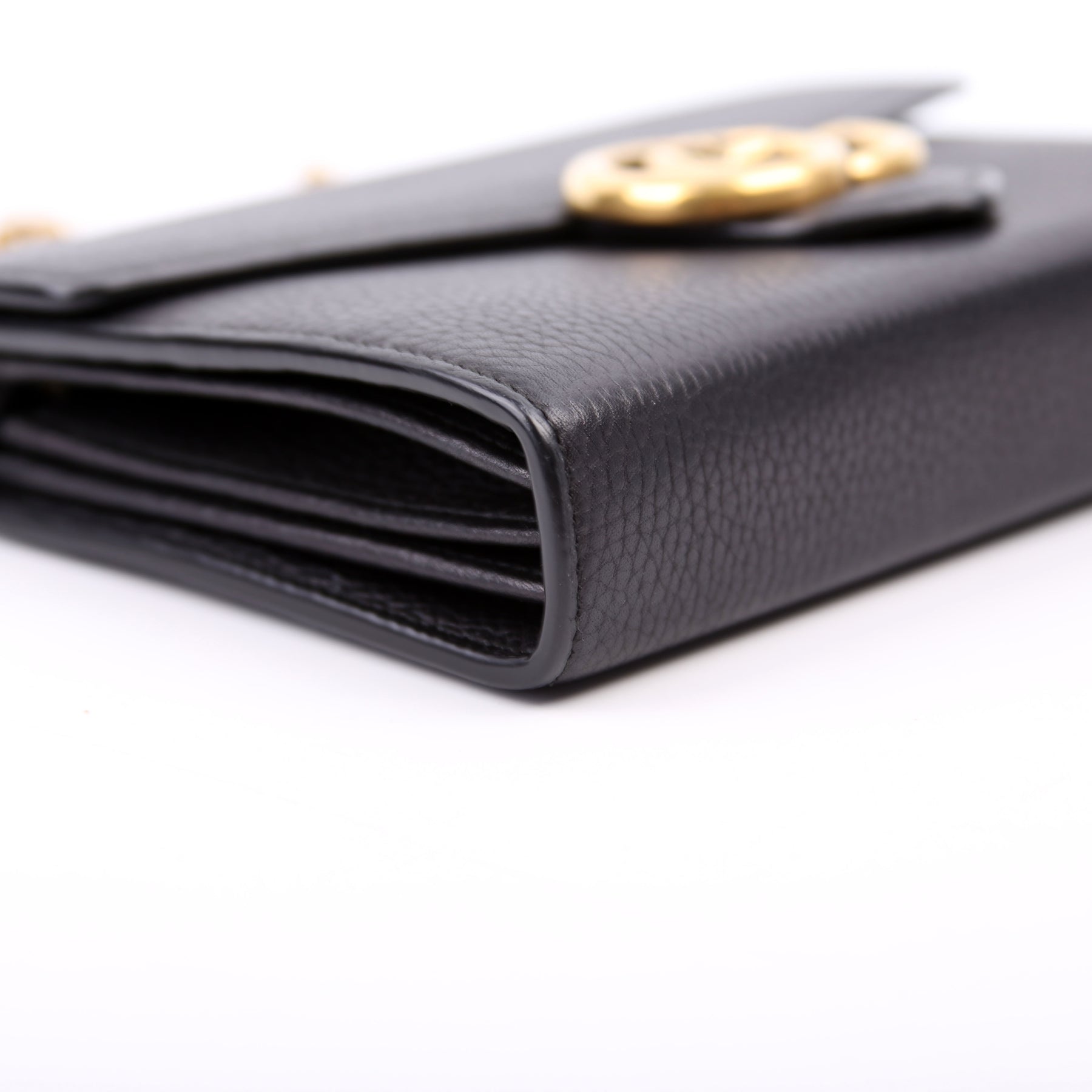 This pre-owned Gucci GG Marmont Chain Wallet is guaranteed 100% authentic. The exterior is in the classic Gucci Marmont leather.