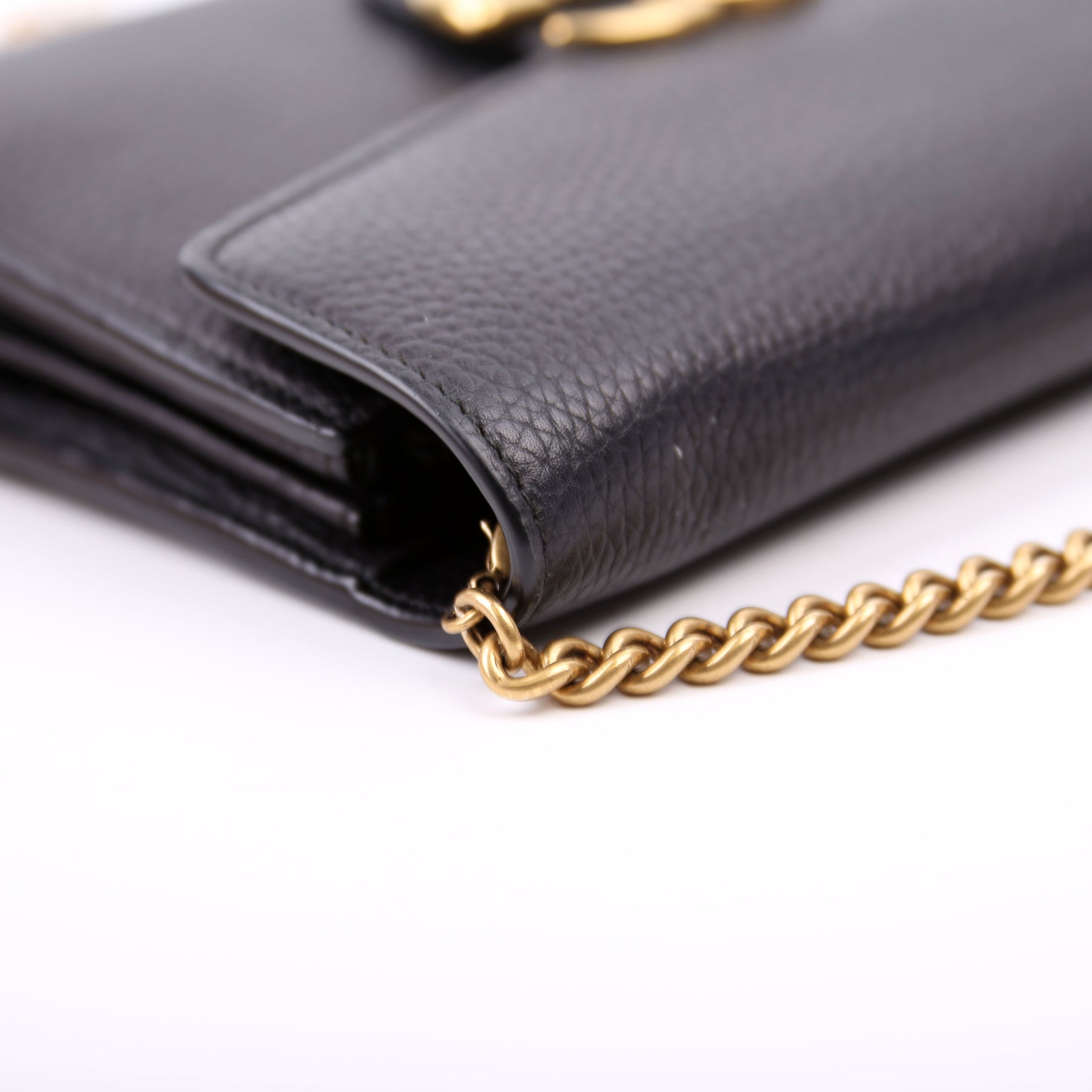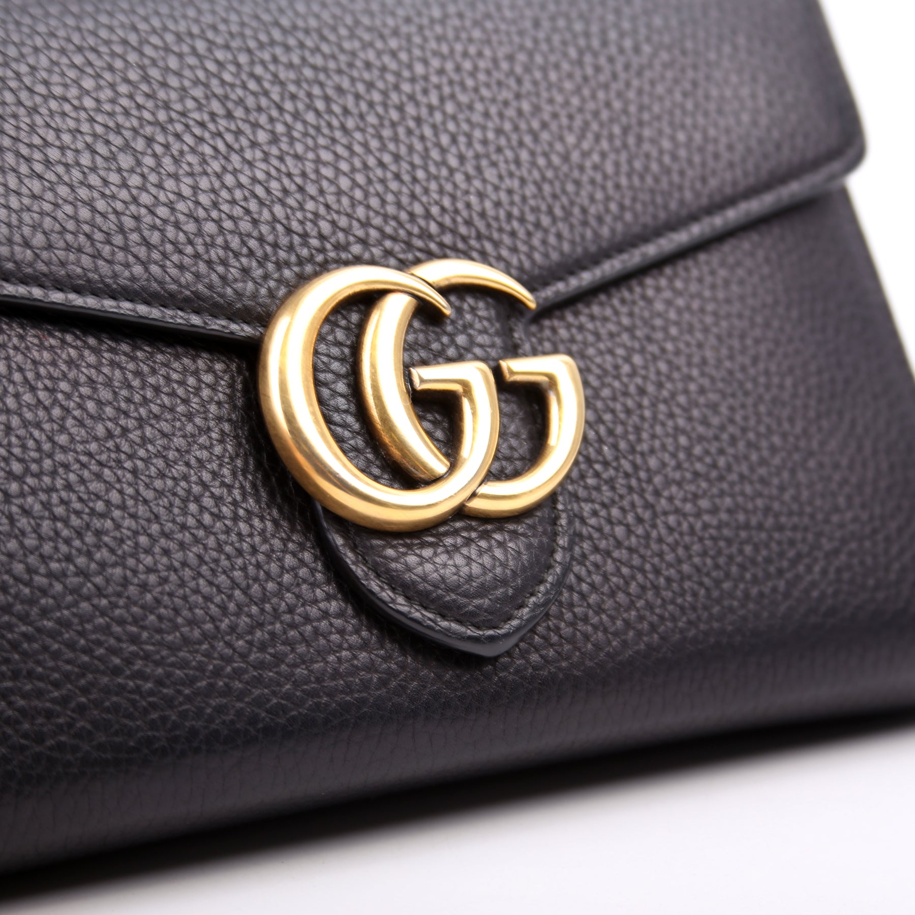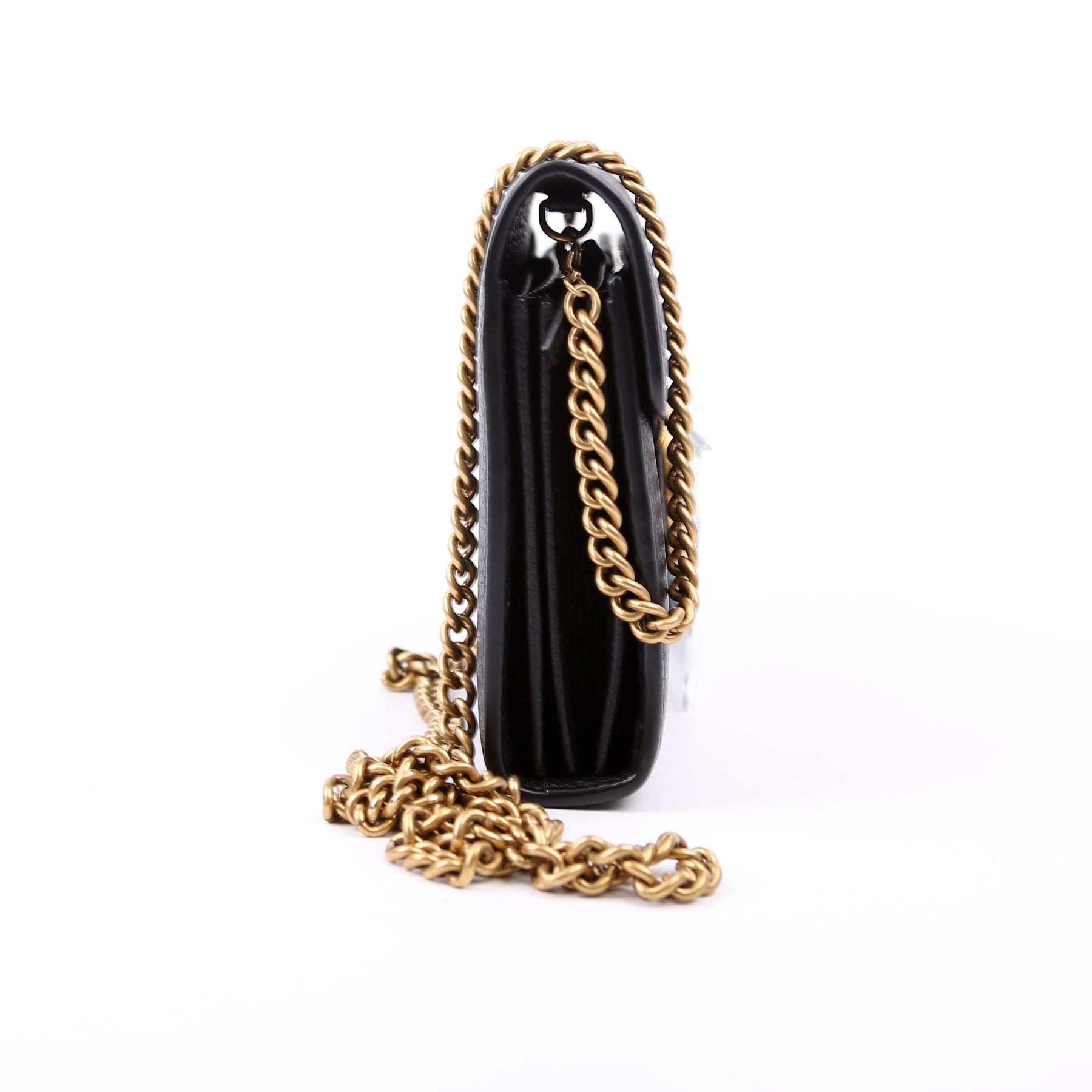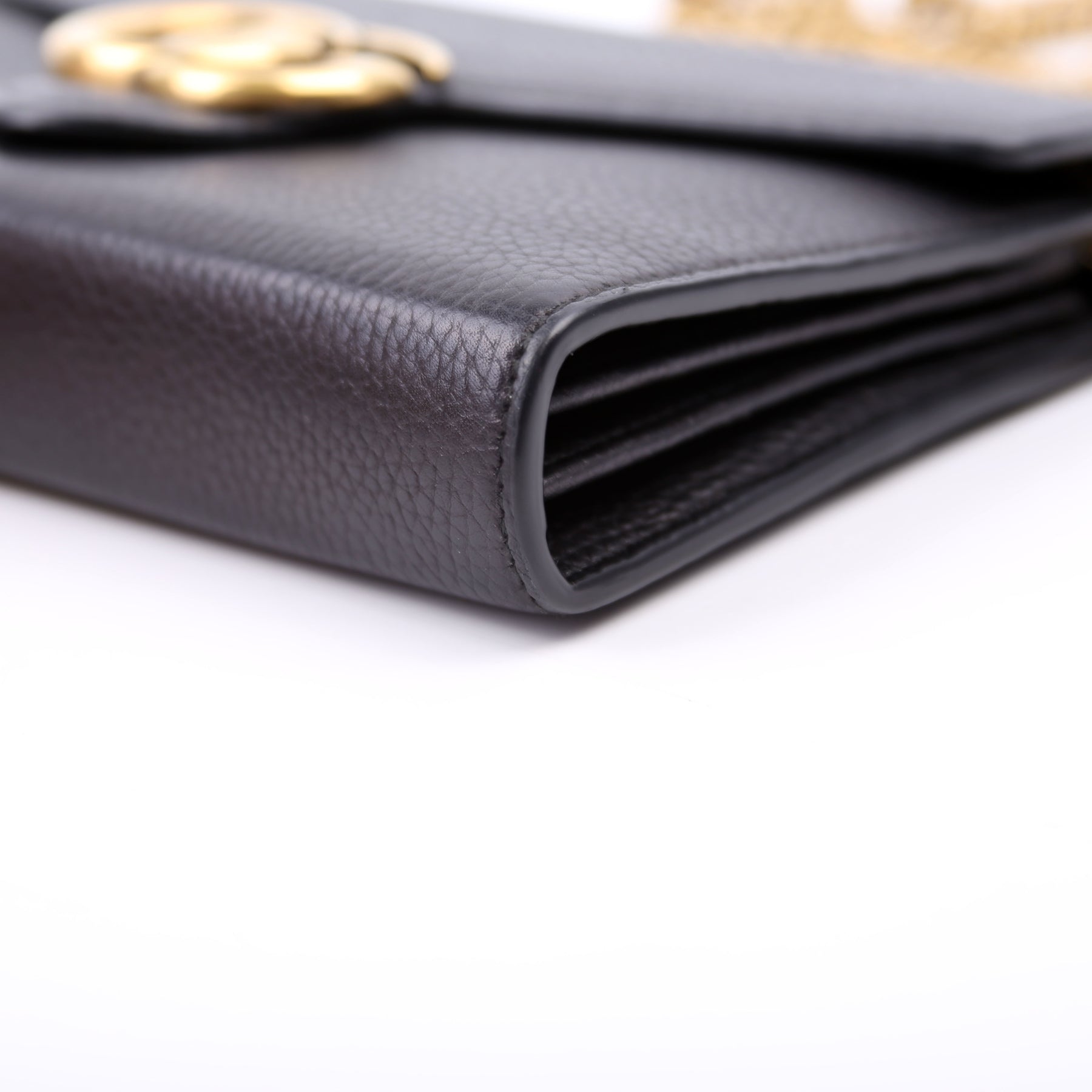 This pre-owned Gucci GG Marmont Chain Wallet is guaranteed 100% authentic. The exterior is in the classic Gucci Marmont leather.