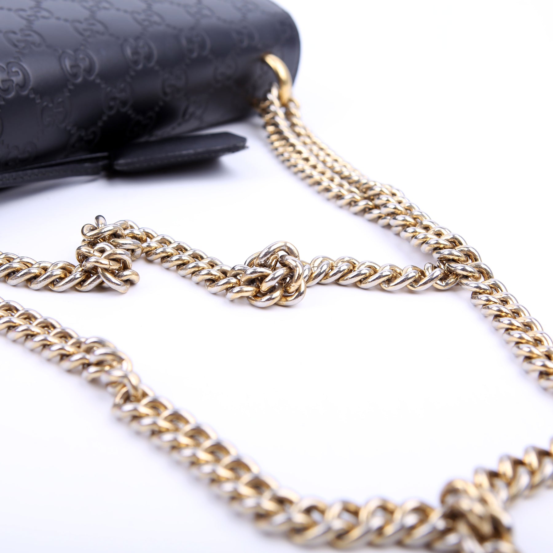 Strap: The chain strap shows minor discoloration throughout.