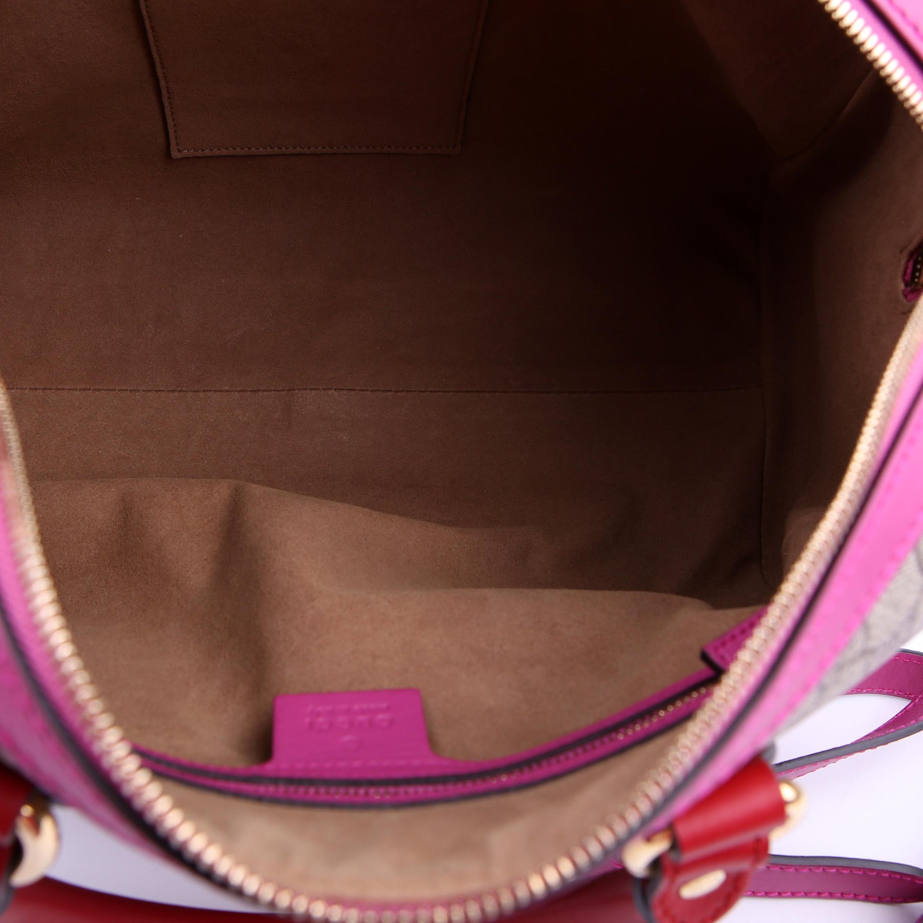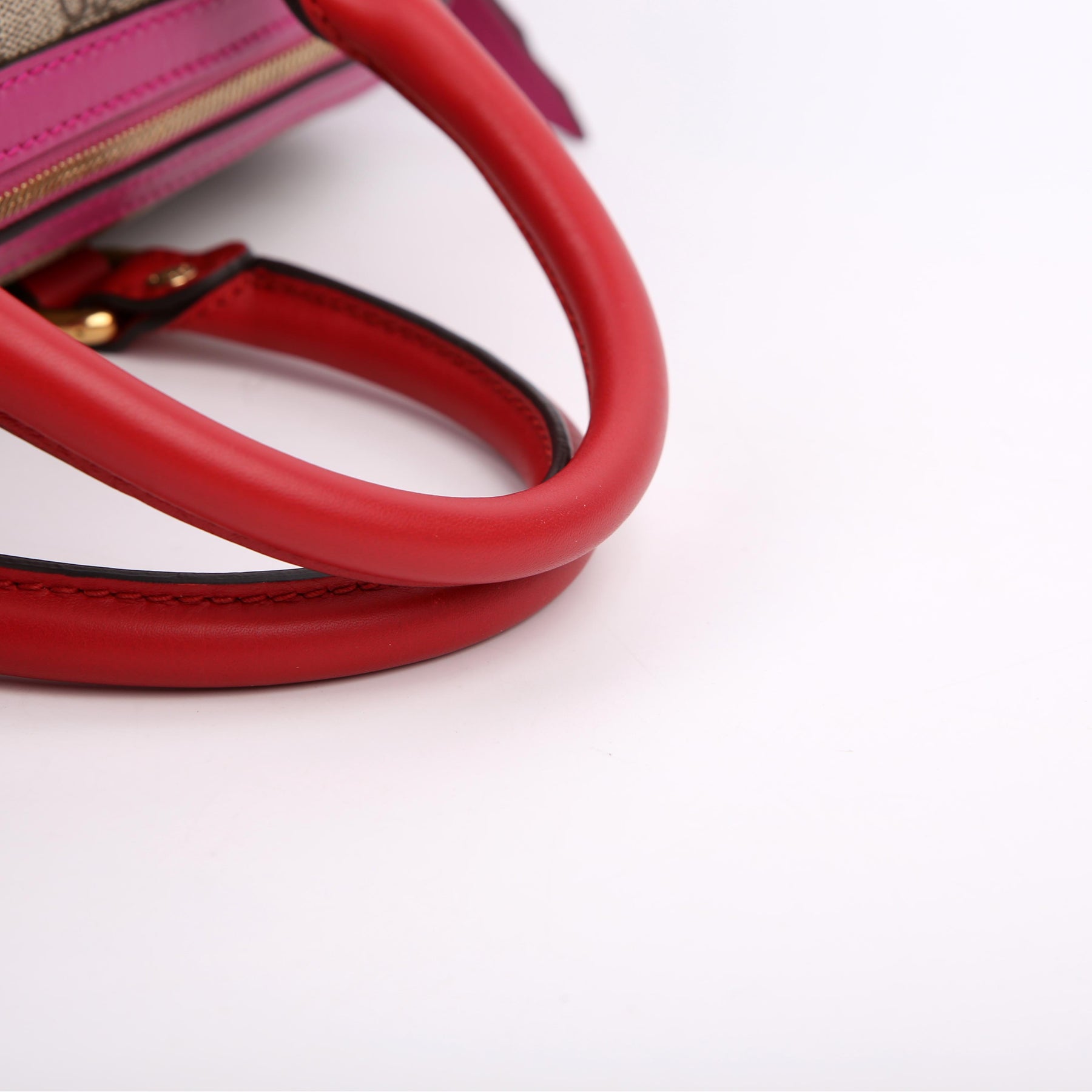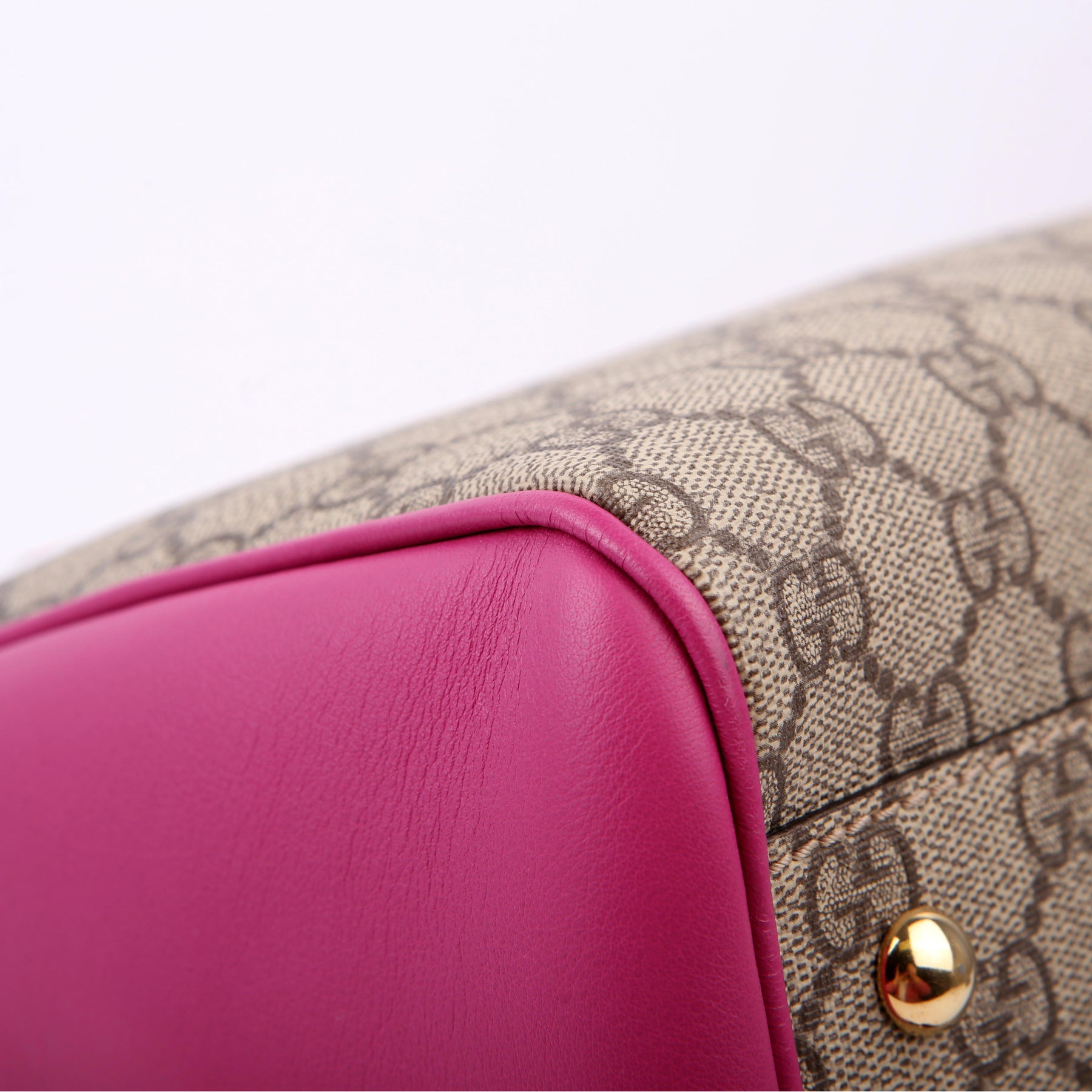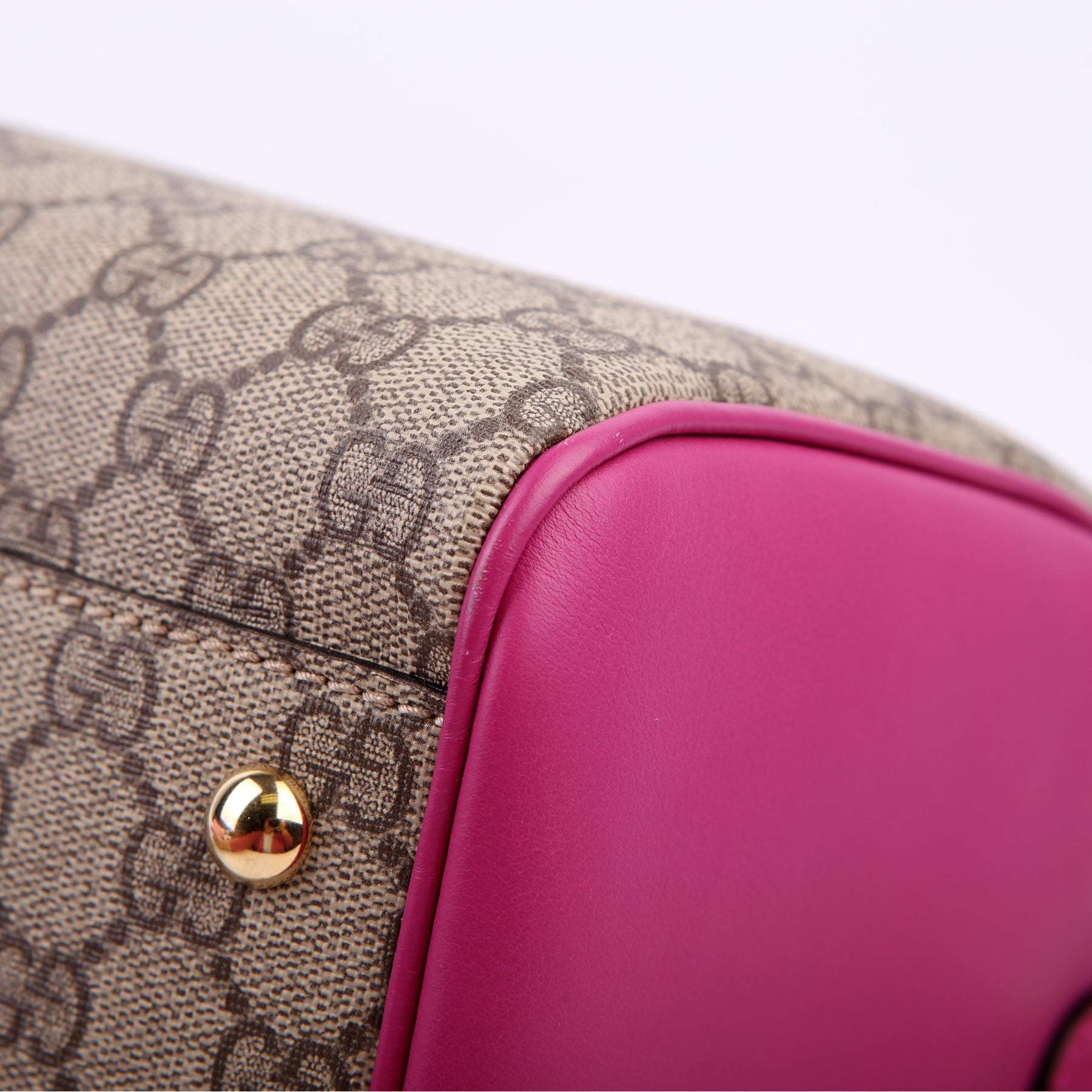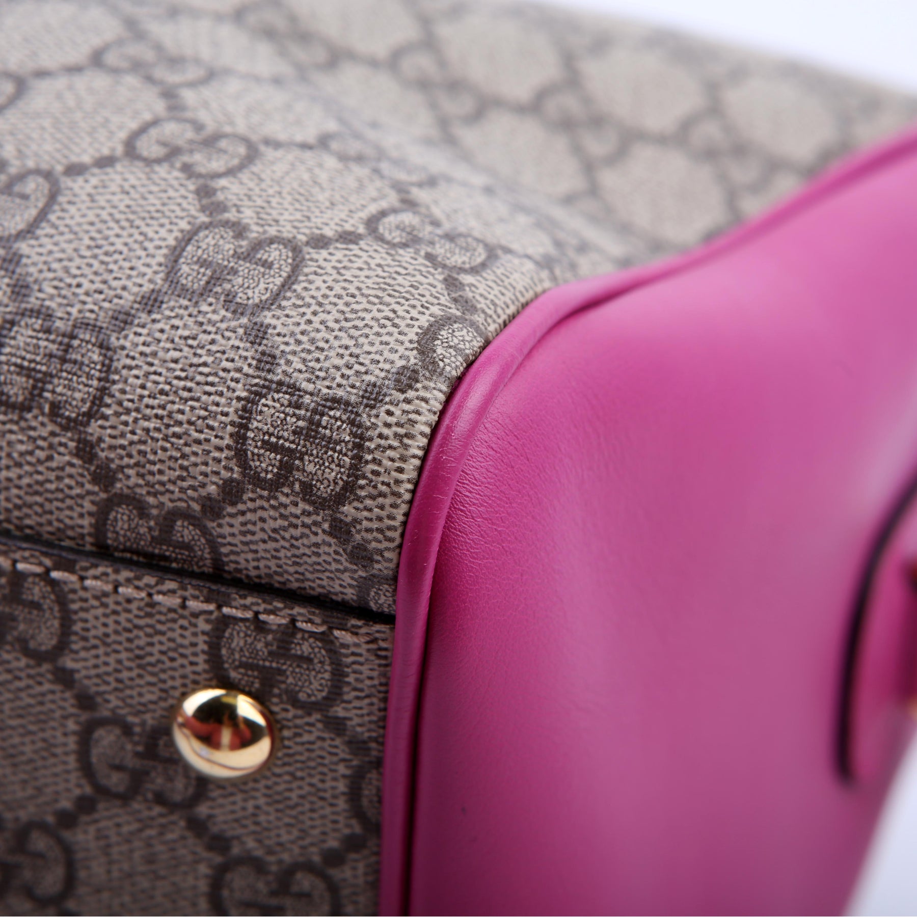 This pre-owned Gucci GG Supreme Boston Bag Large is guaranteed 100% authentic. The exterior is in the classic Gucci GG Supreme coated canvas.