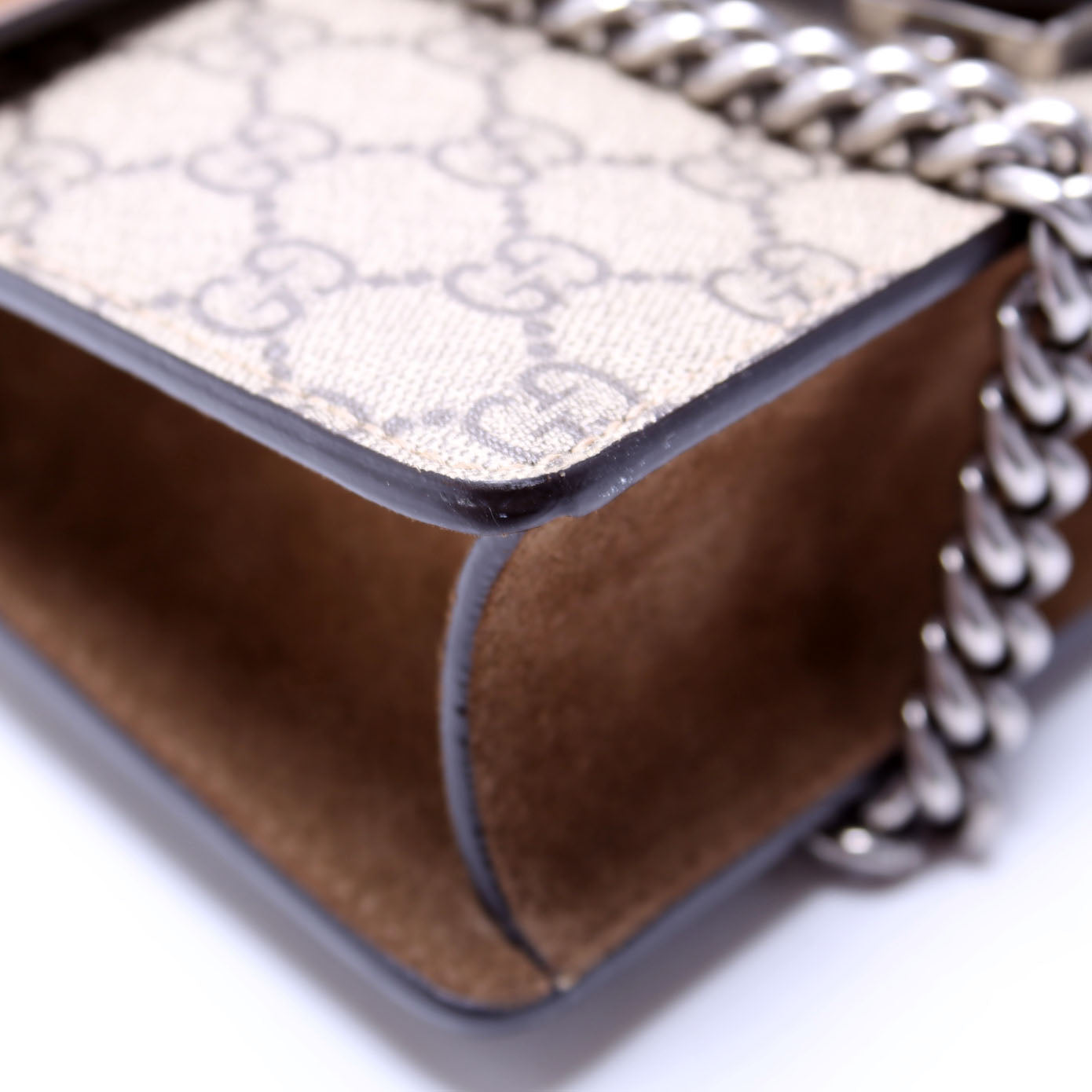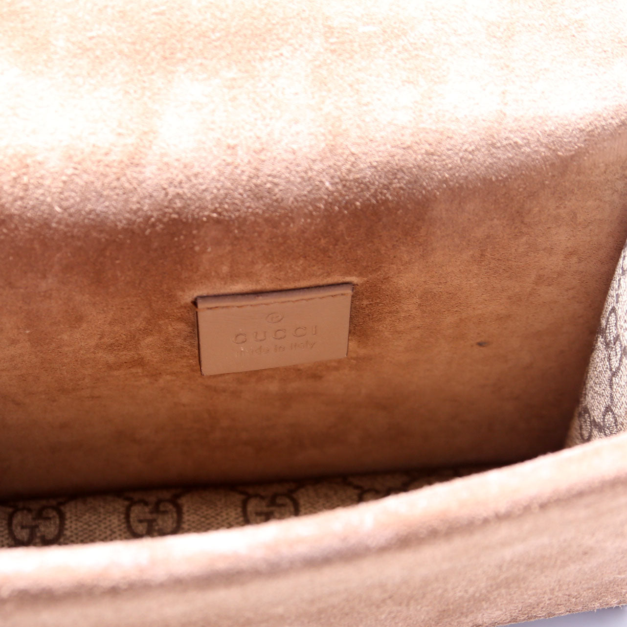 This pre-owned Gucci Dionysus Shoulder Mini is guaranteed 100% authentic. The exterior is in the classic GG Supreme coated canvas.