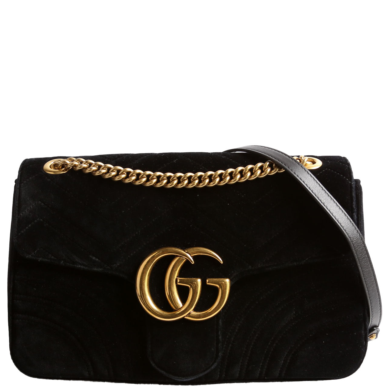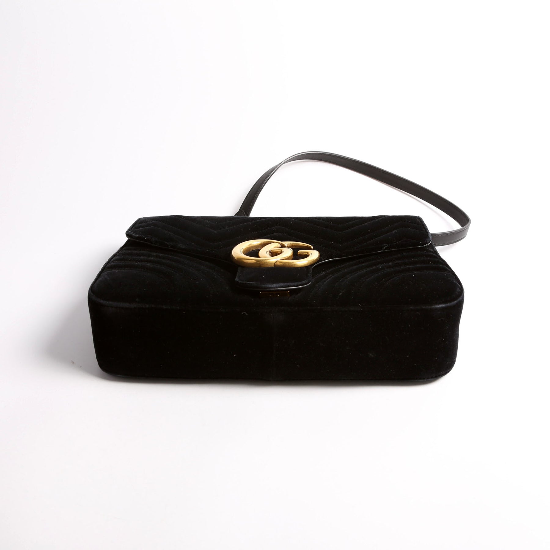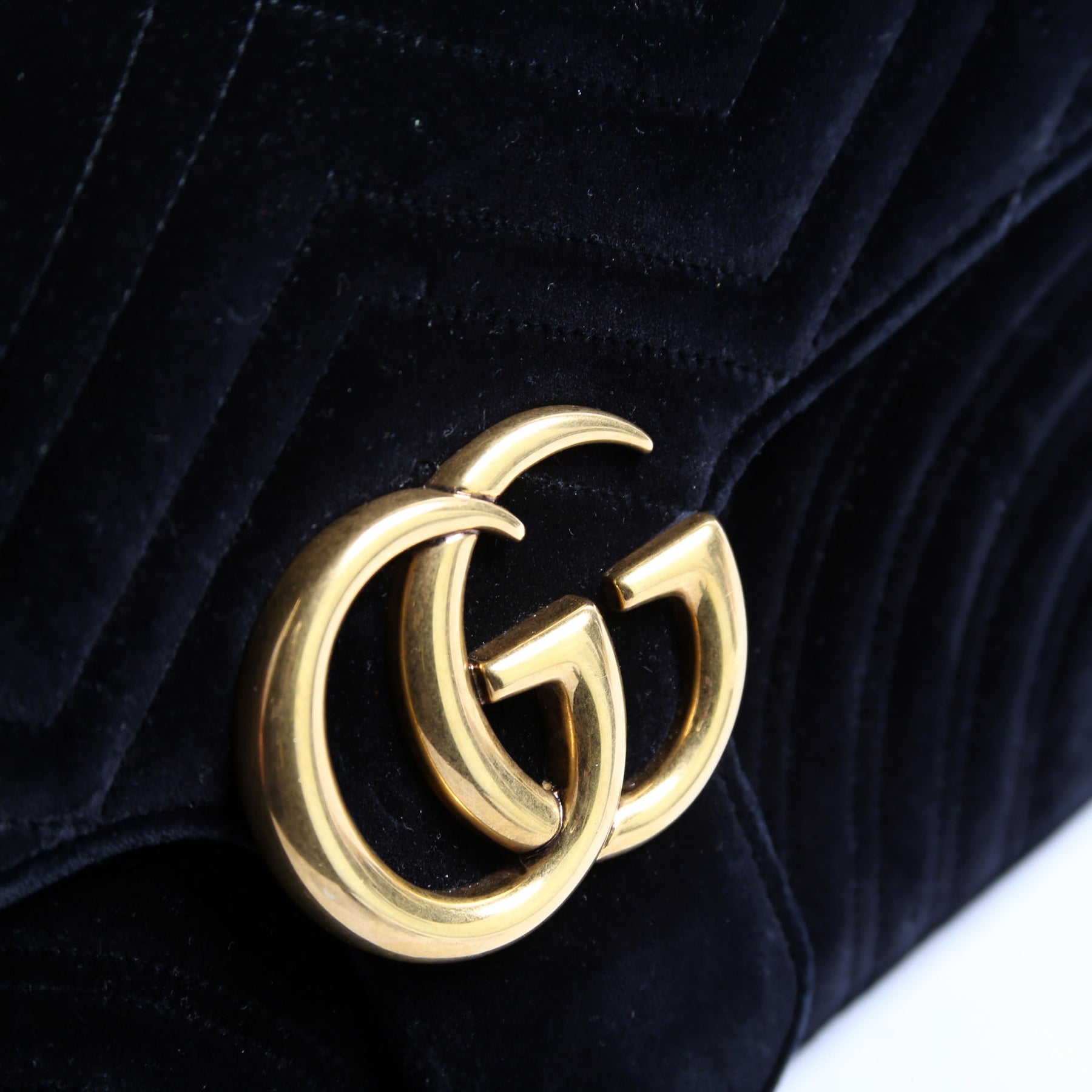 This pre-owned Gucci Marmont Velvet Medium Shoulder is guaranteed 100% authentic.