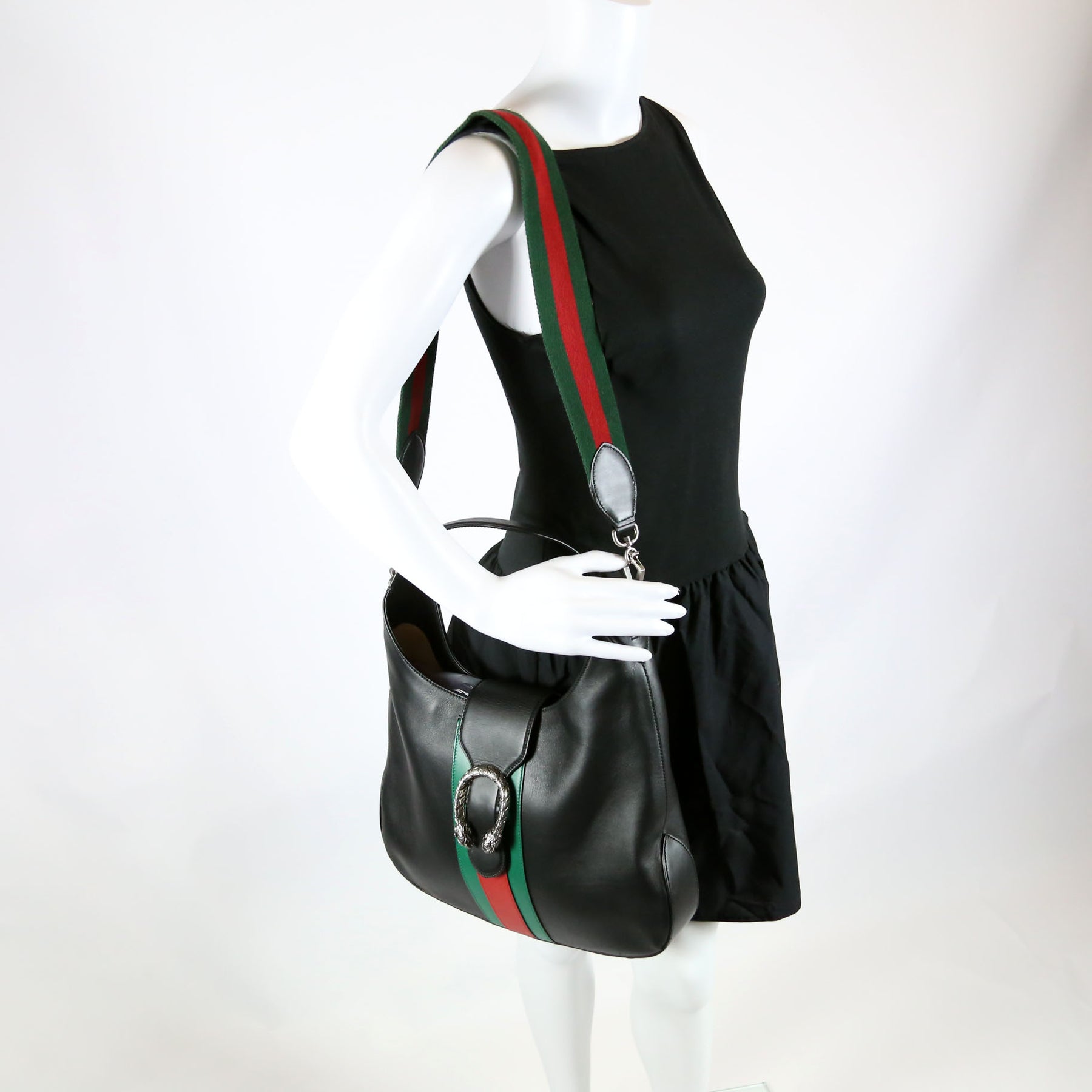 This pre-owned Gucci Web Stripe Dionysus Leather Hobo is guaranteed 100% authentic.