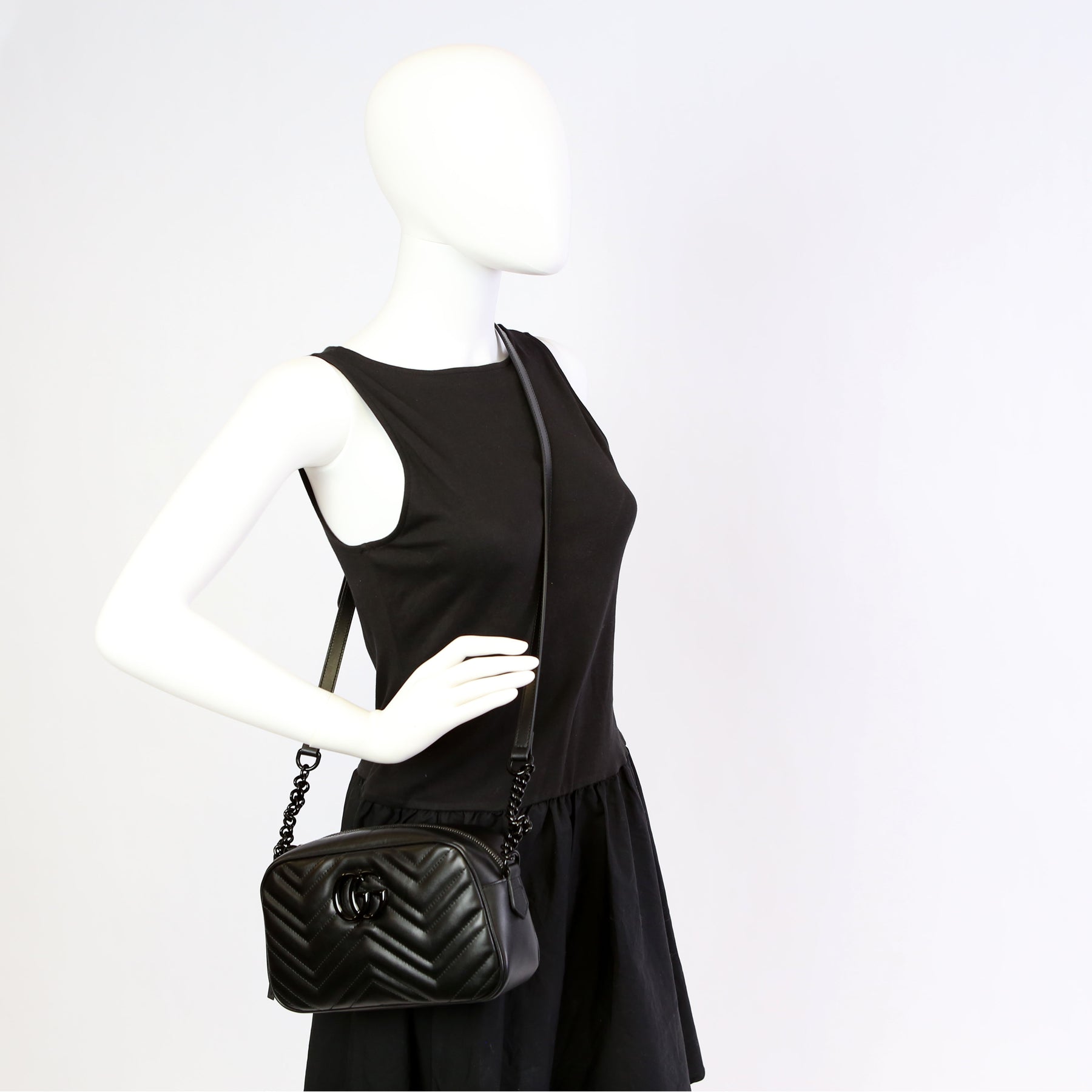 This pre-owned Gucci Marmont Small Leather Camera is guaranteed 100% authentic.