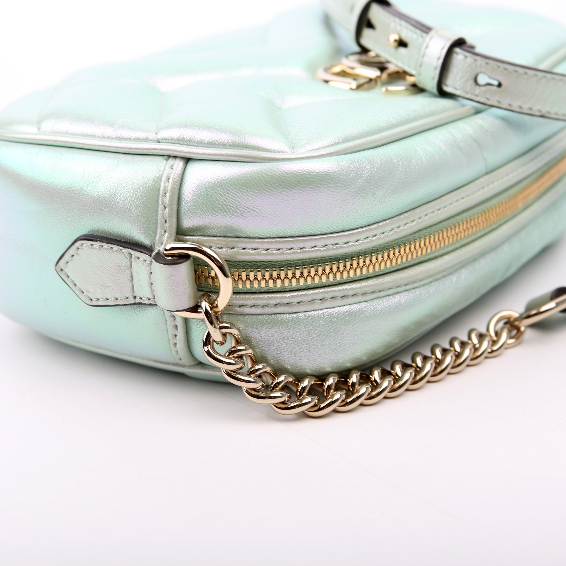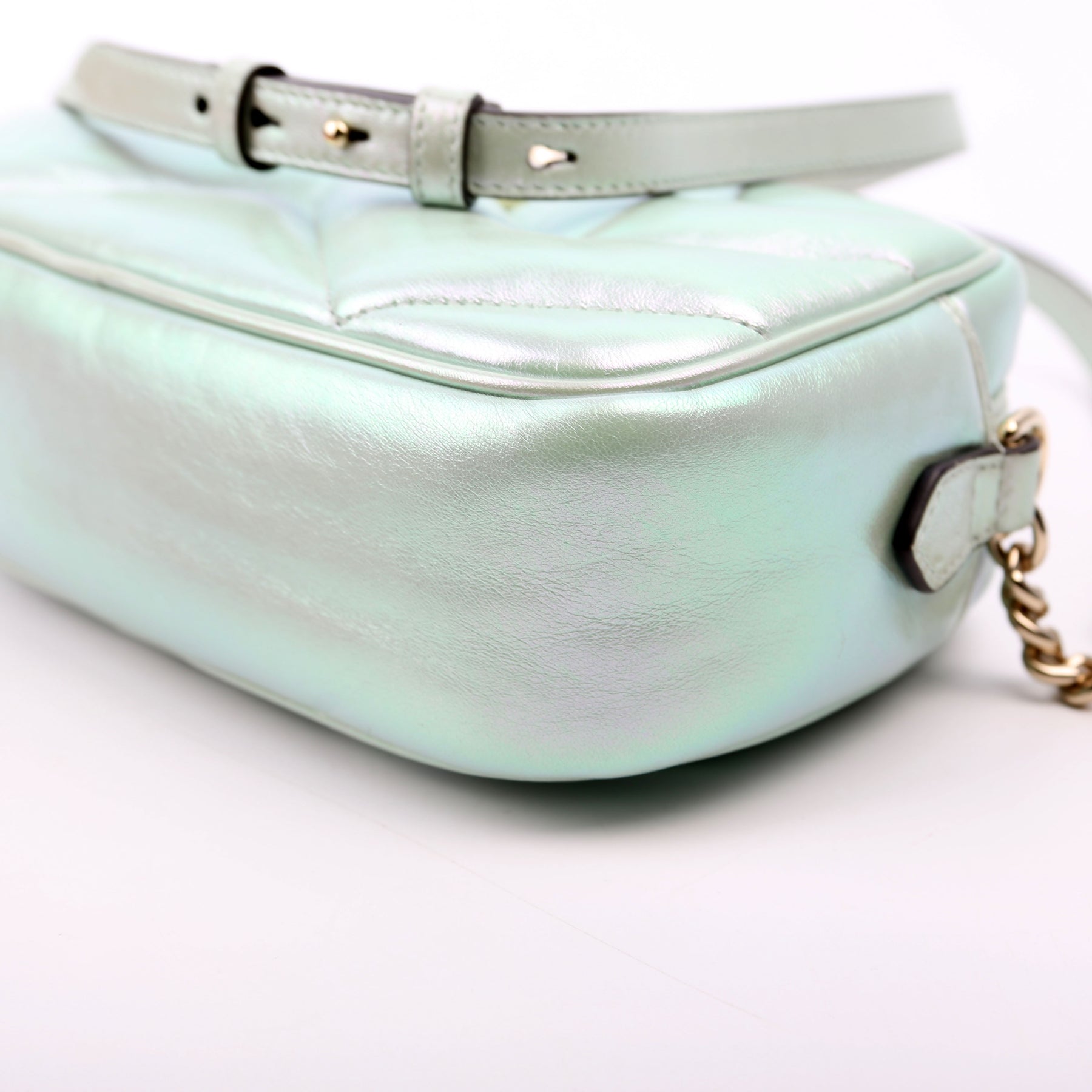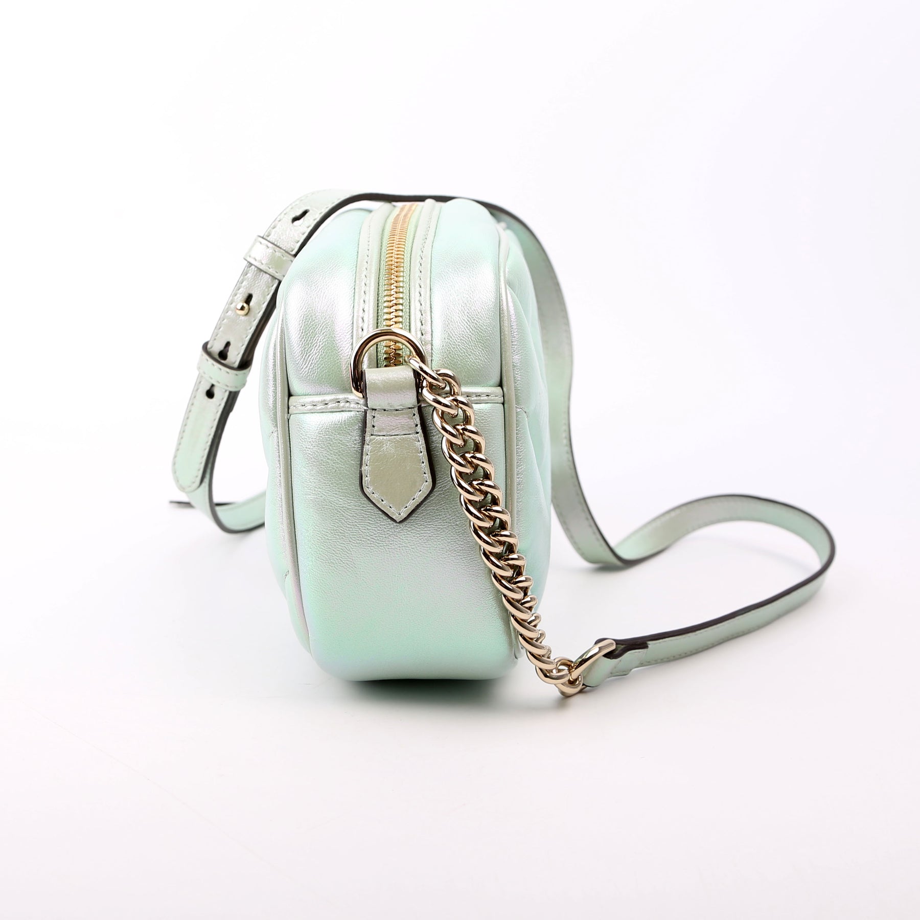 This pre-owned Gucci Marmont Small Leather Camera Iridescent is guaranteed 100% authentic.
