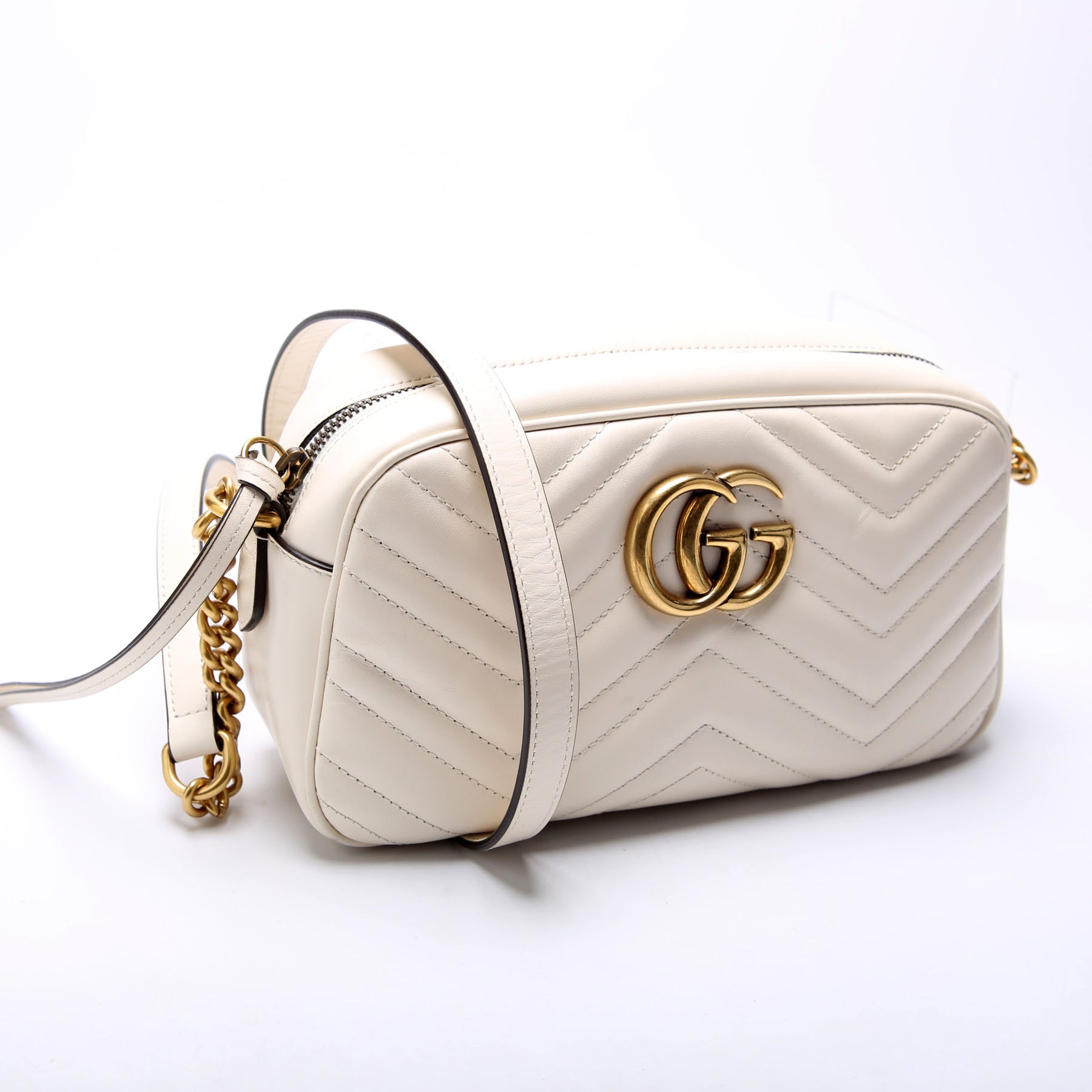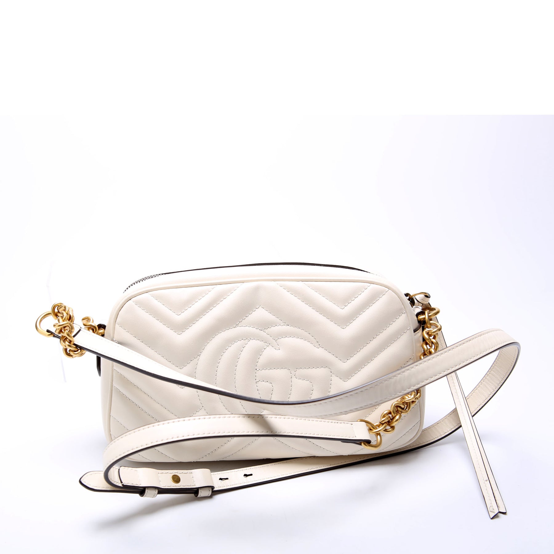 This pre-owned Gucci Marmont Small Leather Camera is guaranteed 100% authentic.