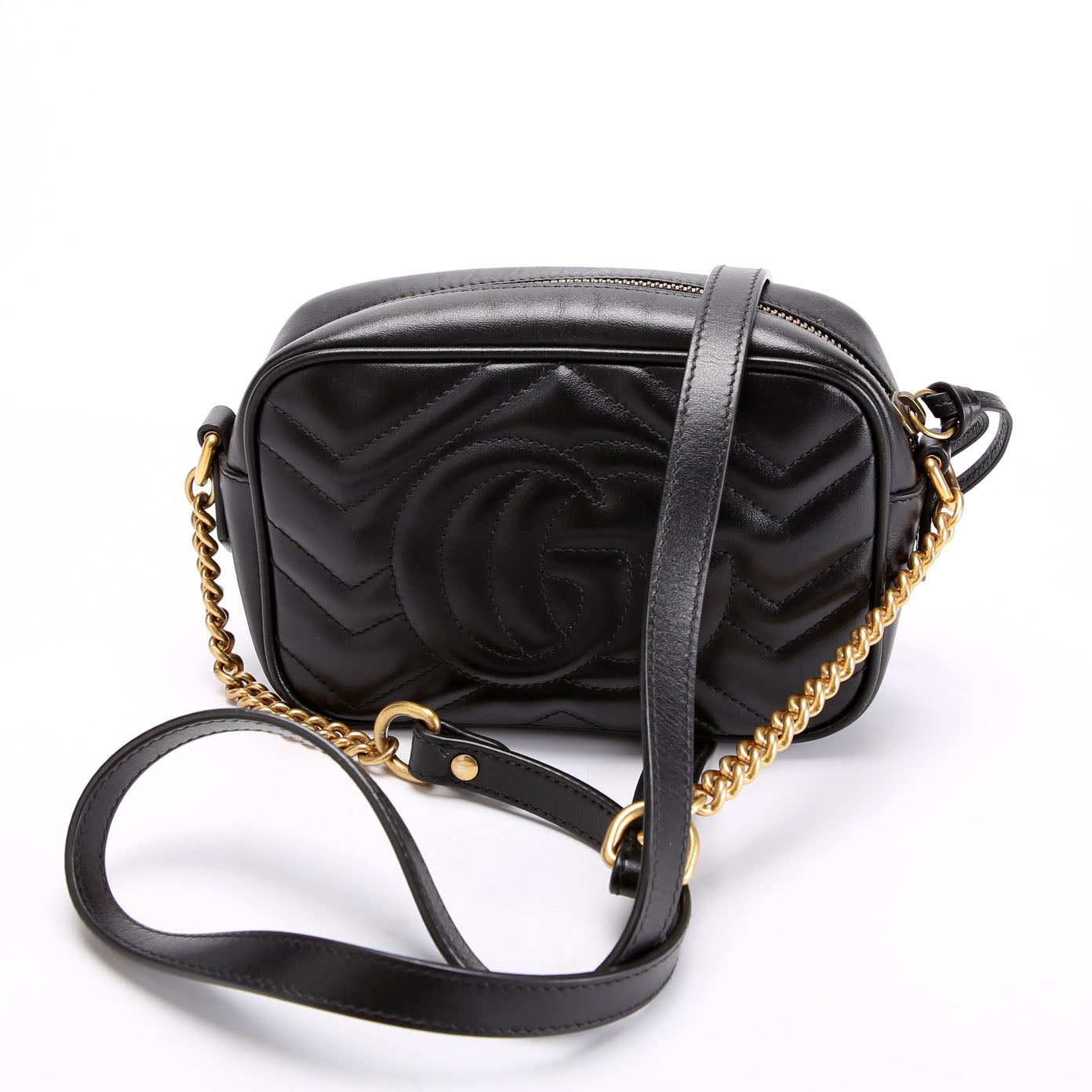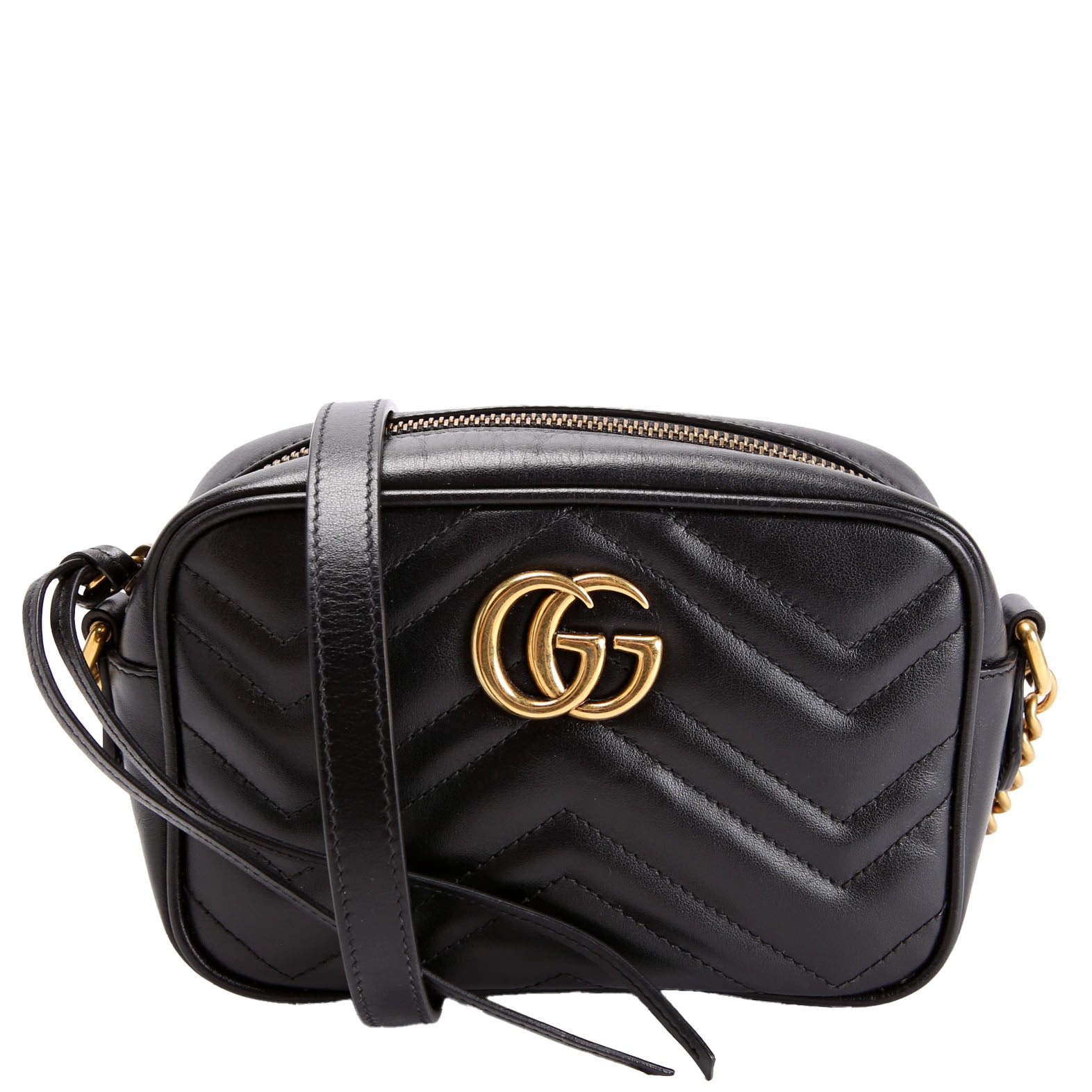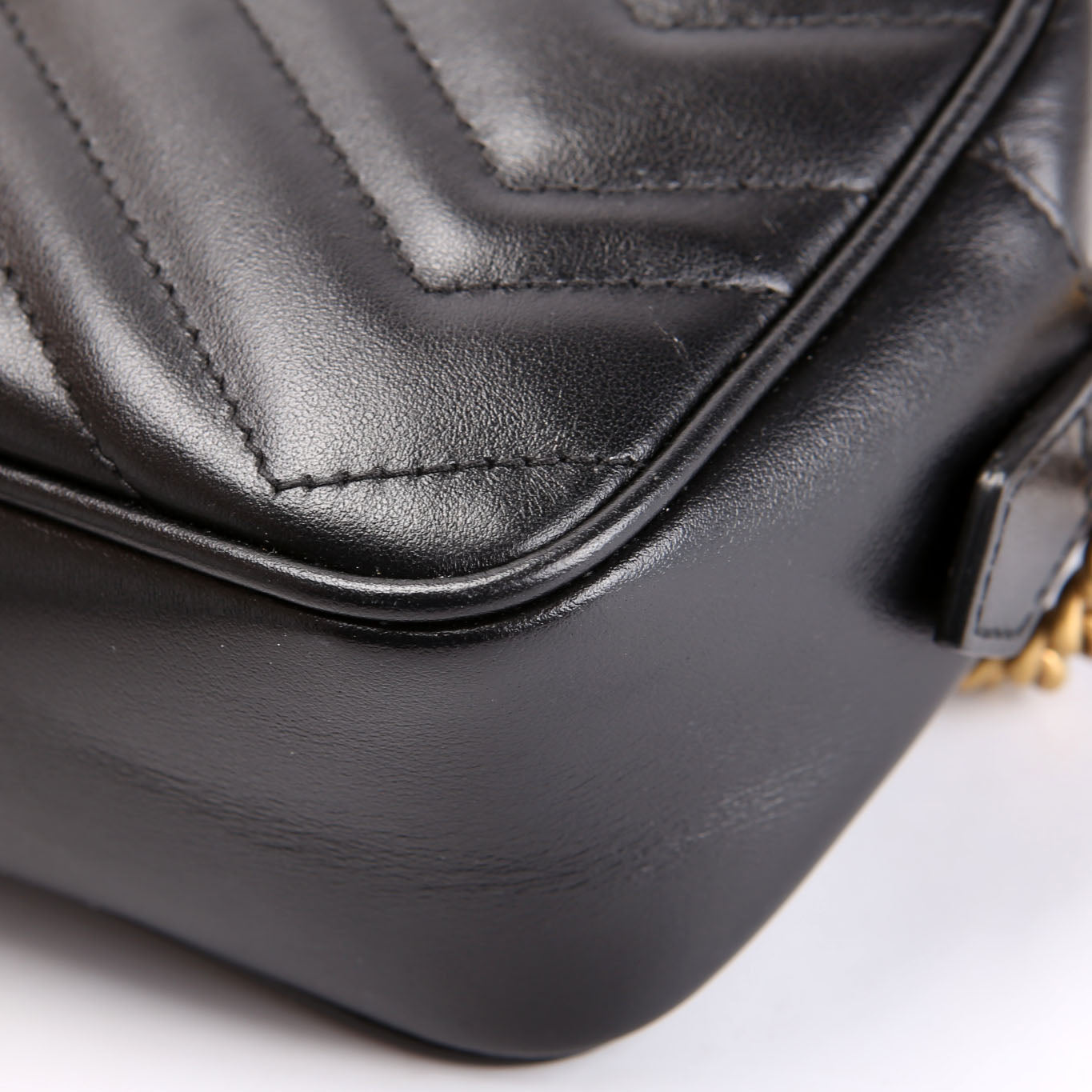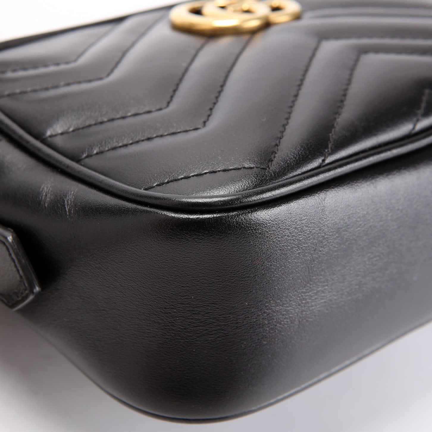 These pre-owned Gucci Marmont Mini Camera Bag are guaranteed 100% authentic. The exterior is in the classic Gucci Marmont leather.