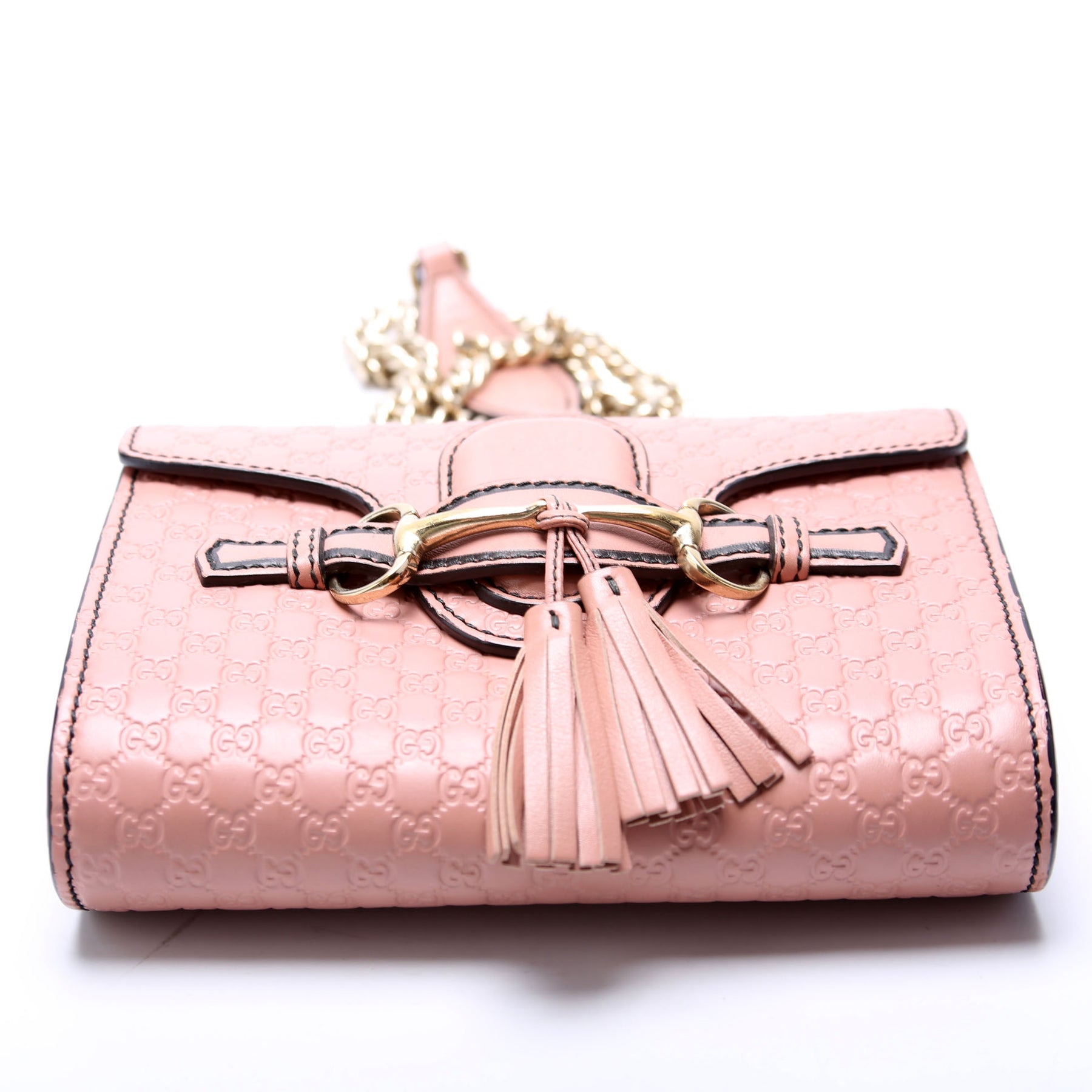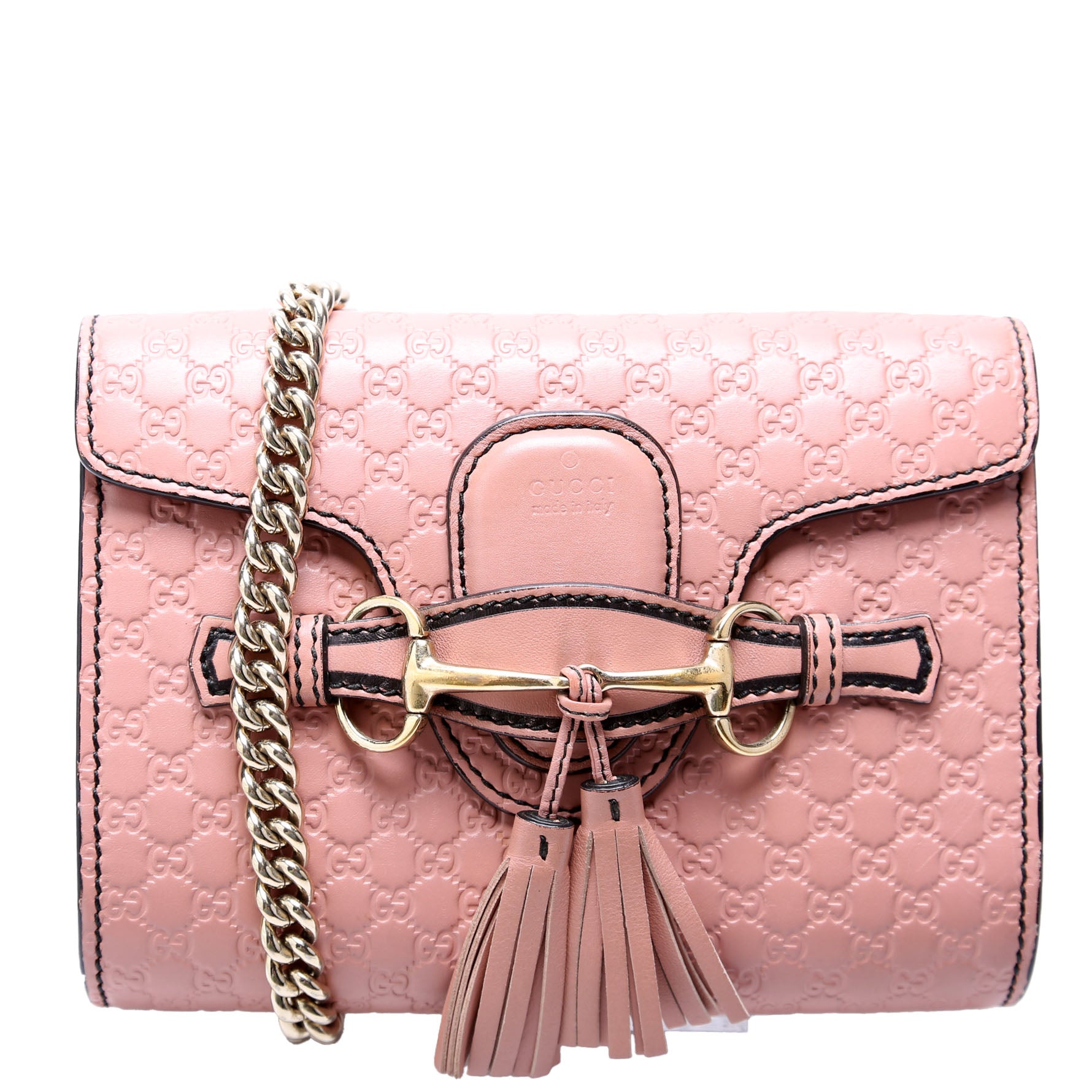 This pre-owned Gucci Emily Mini Shoulder is guaranteed 100% authentic. The exterior is in the classic Gucci Micro Guccisima leather.
