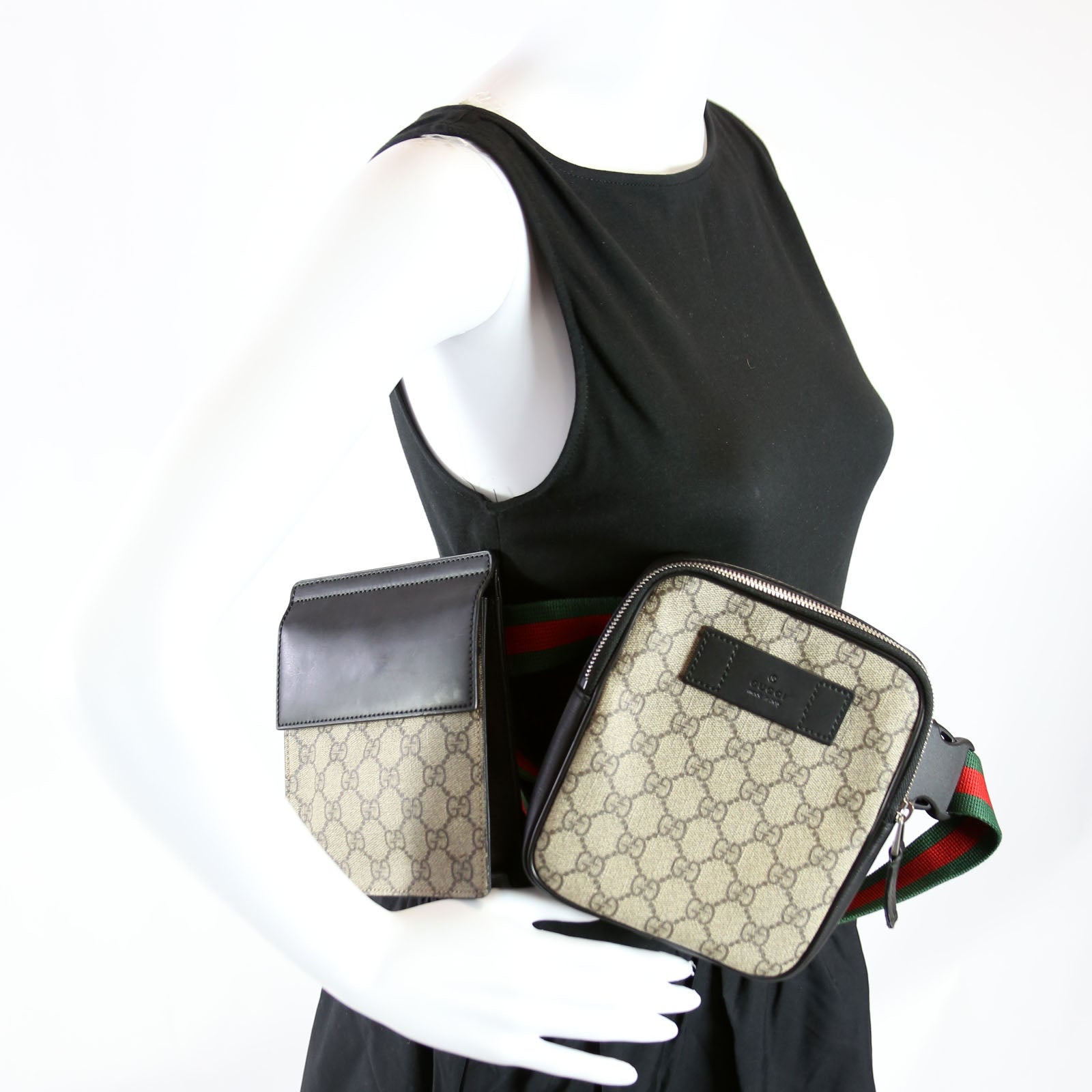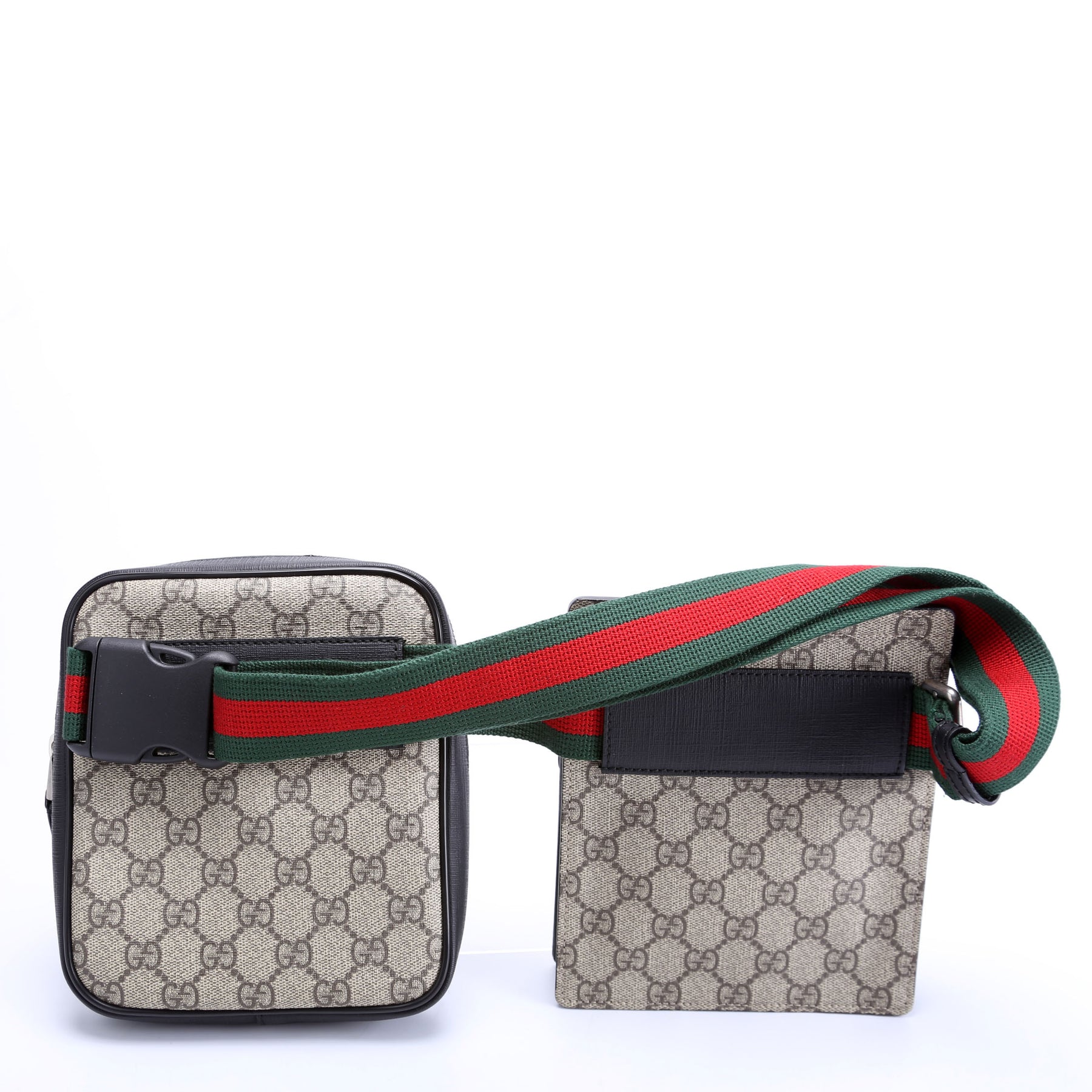 This pre-owned Gucci Belt Bag is guaranteed 100% authentic. The exterior is in the classic Gucci GG Supreme coated canvas.