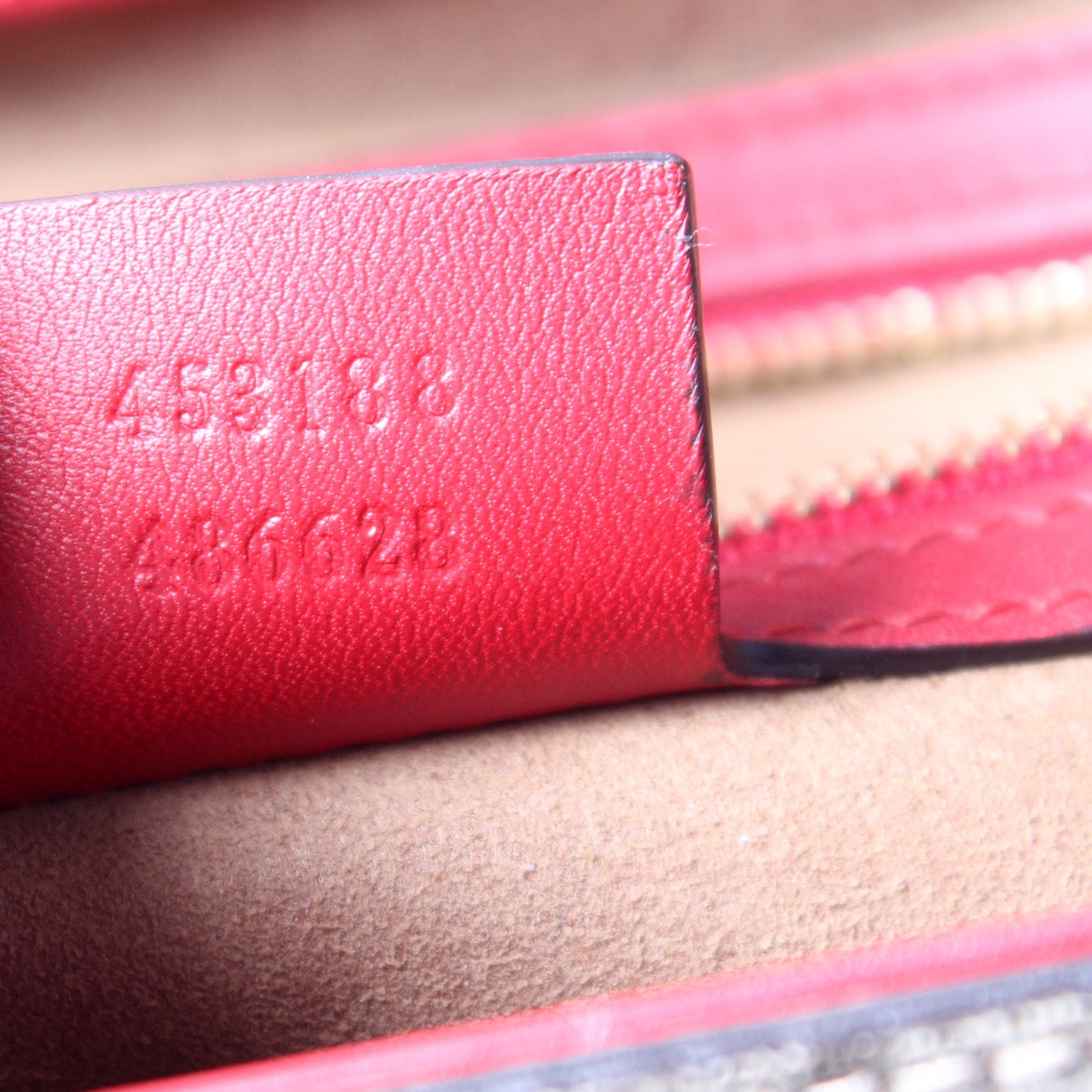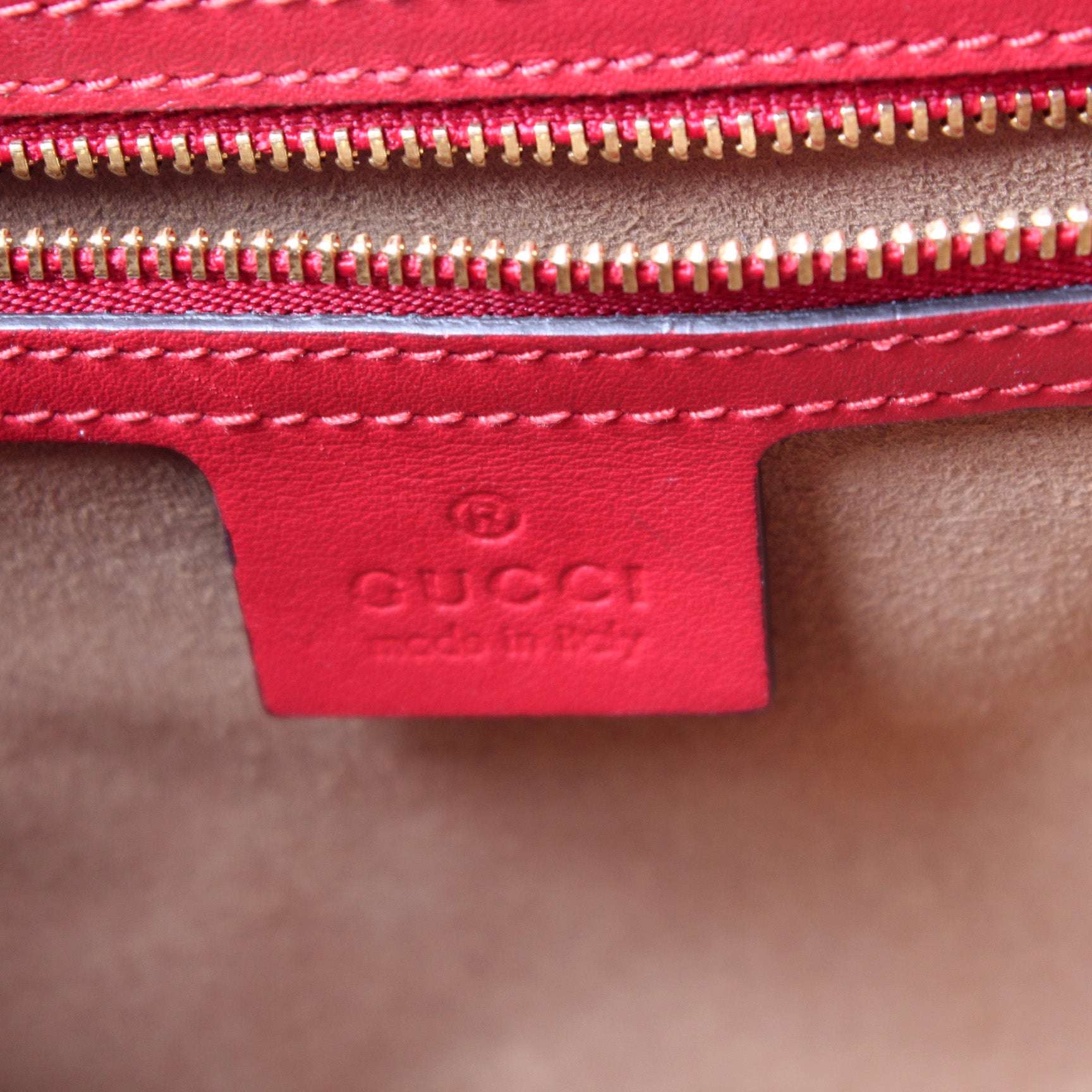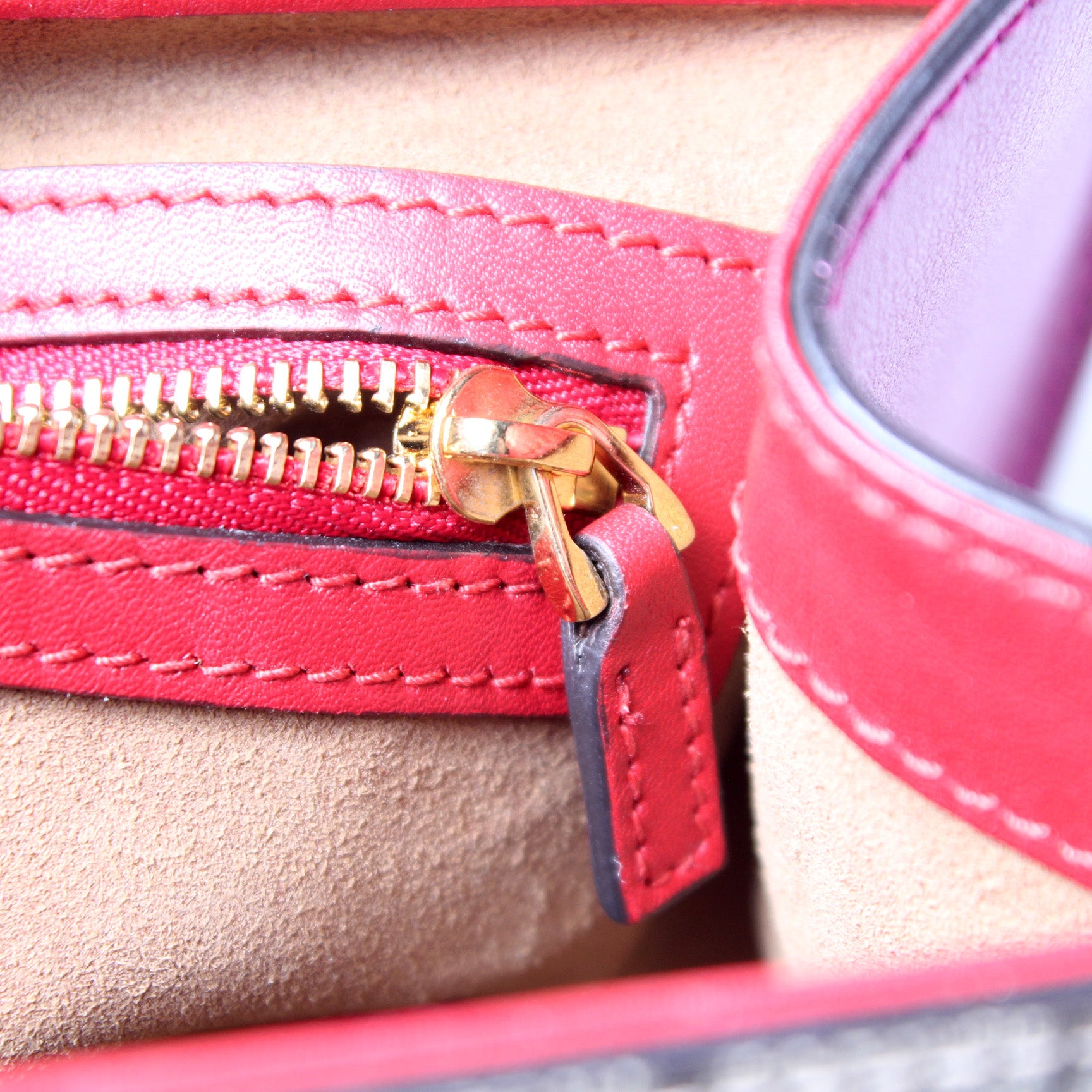 Interior: The interior is clean and free of rips or tears. The interior features one open pocket and one zip closure pocket.