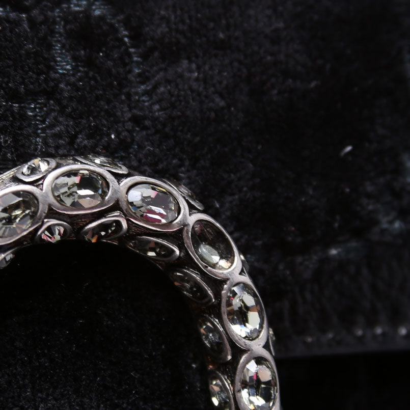 Hardware: The snap closure operates properly. One stone is missing on hardware.