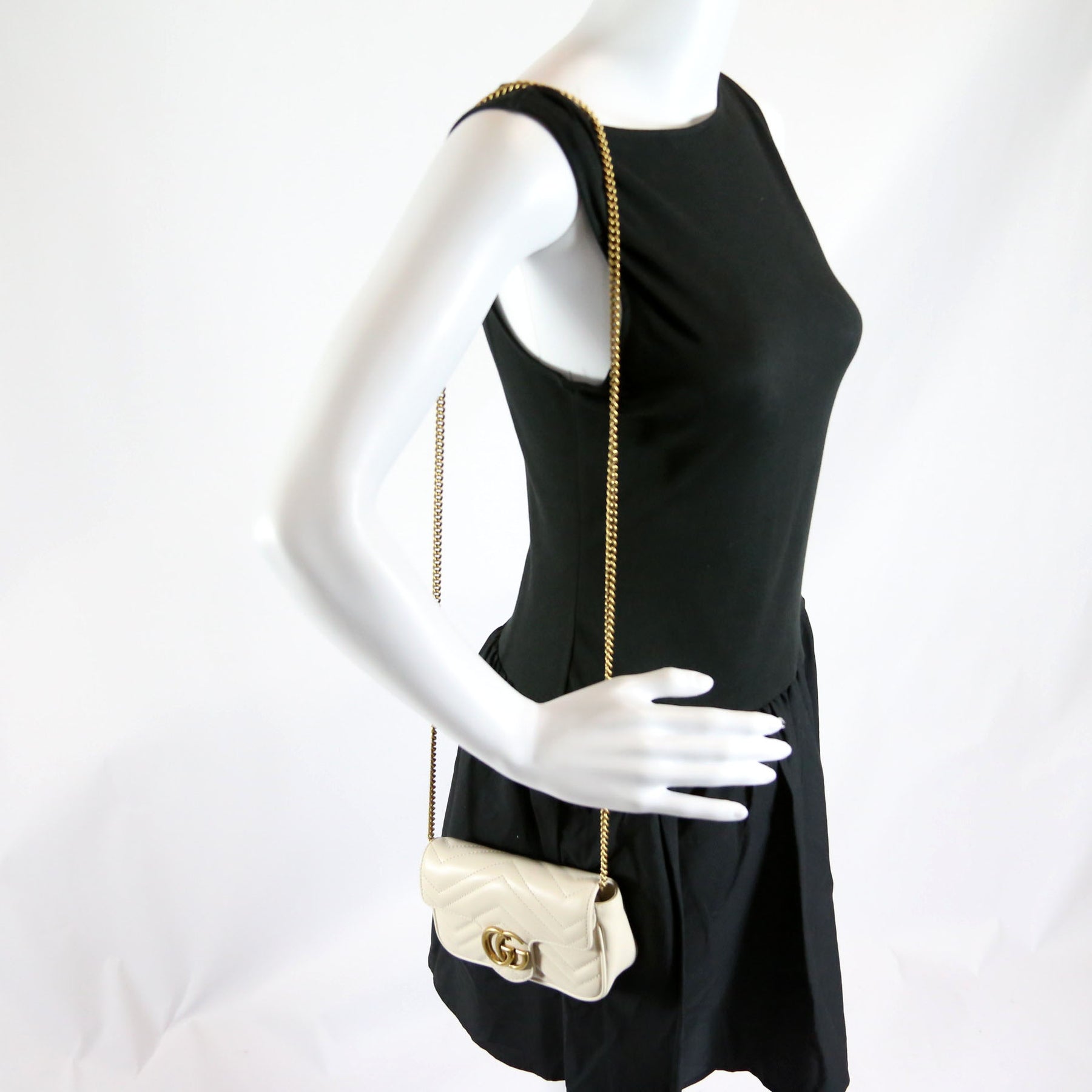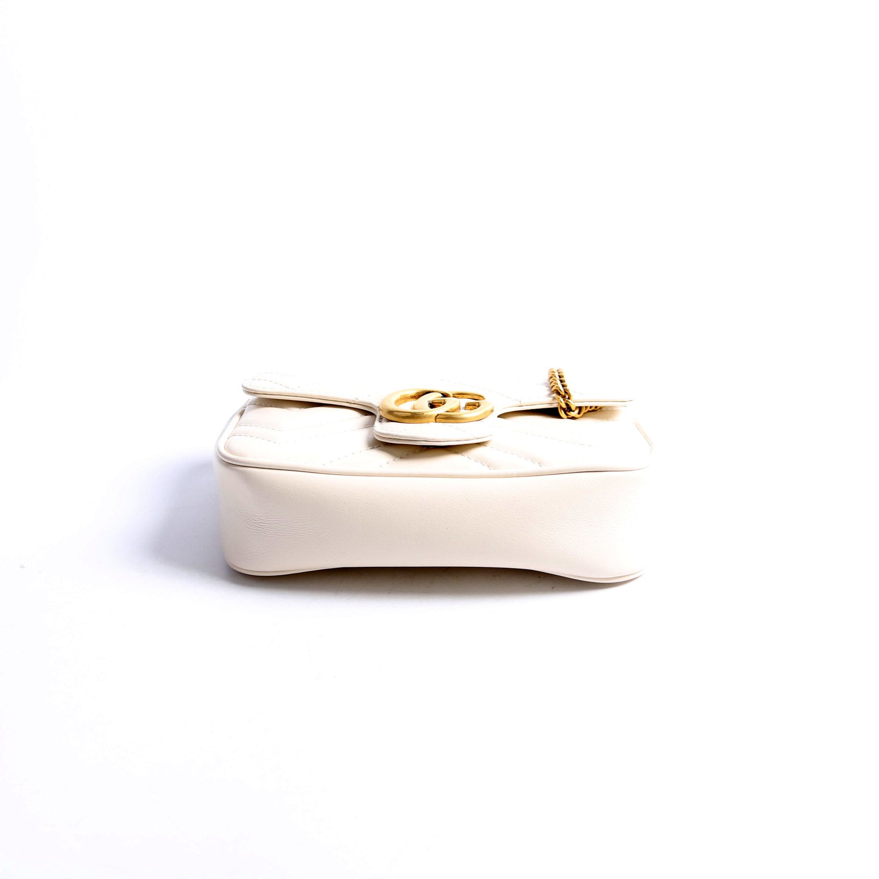 This pre-owned Gucci Marmont Canvas Super Mini Flap is guaranteed 100% authentic.
