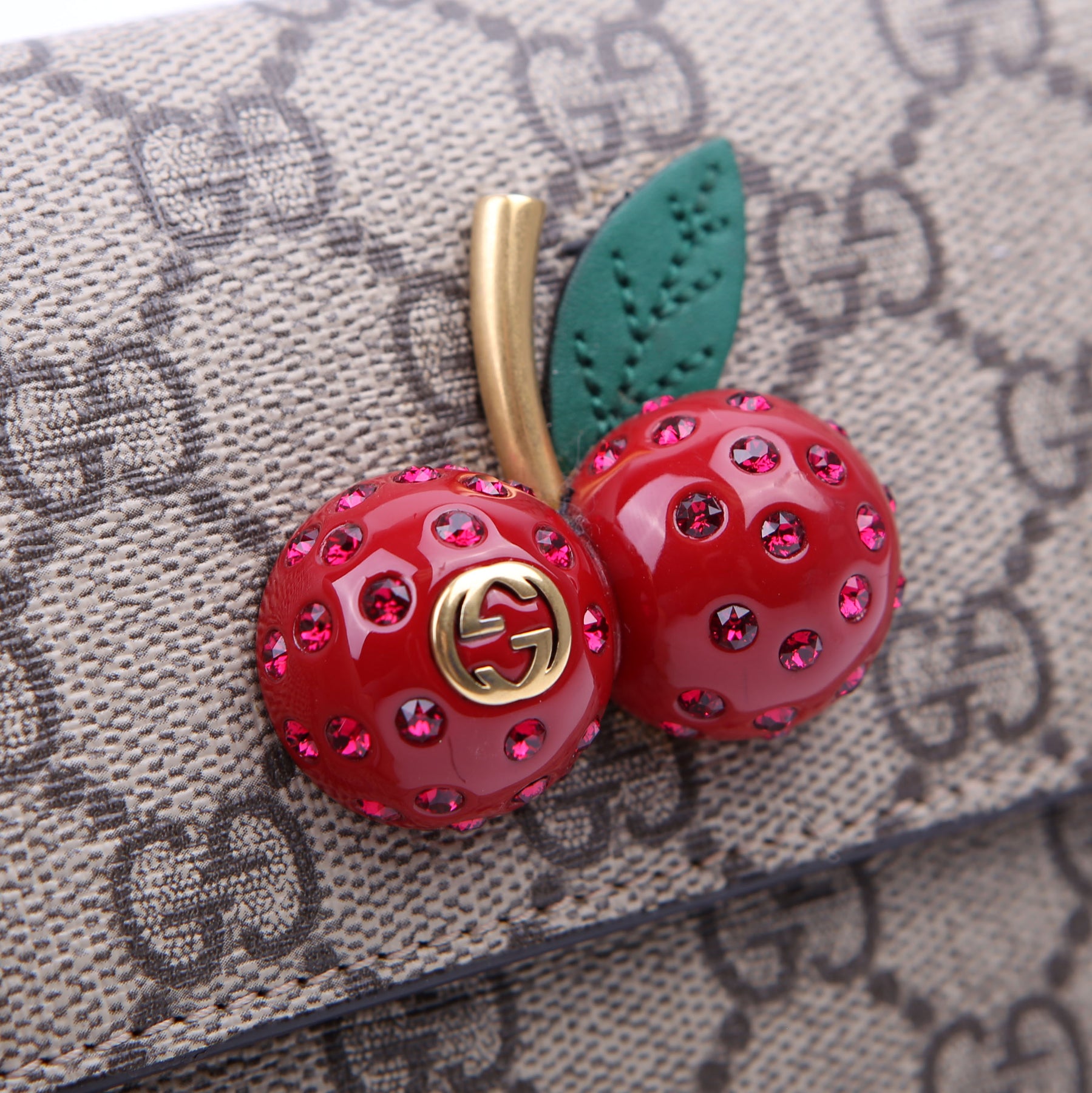 This pre-owned Gucci GG Supreme Cherries Mini Bag is guaranteed 100% authentic.