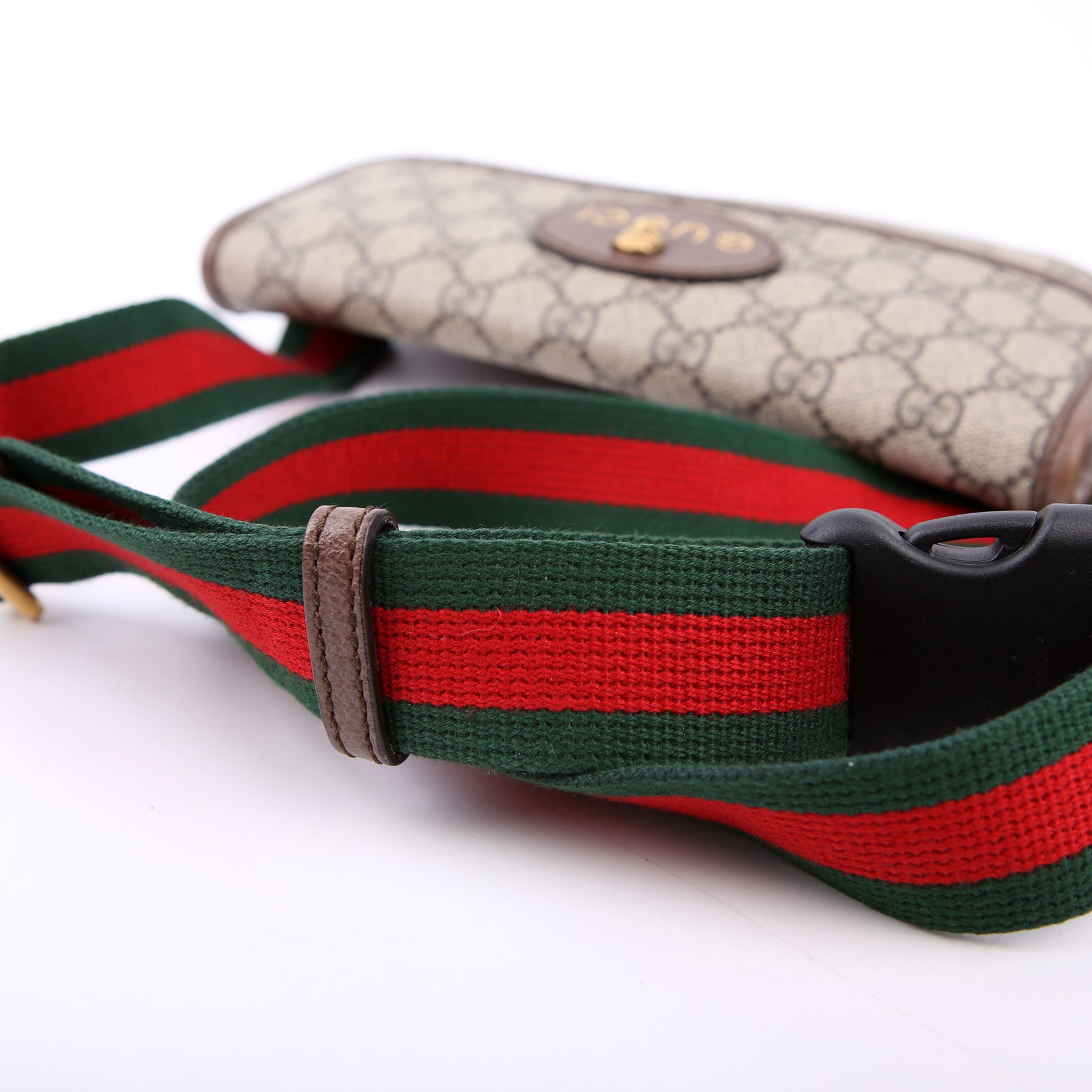 This pre-owned Gucci GG Supreme Neo Web Belt Bag is guaranteed 100% authentic. The exterior is in the classic Gucci GG Supreme coated canvas.