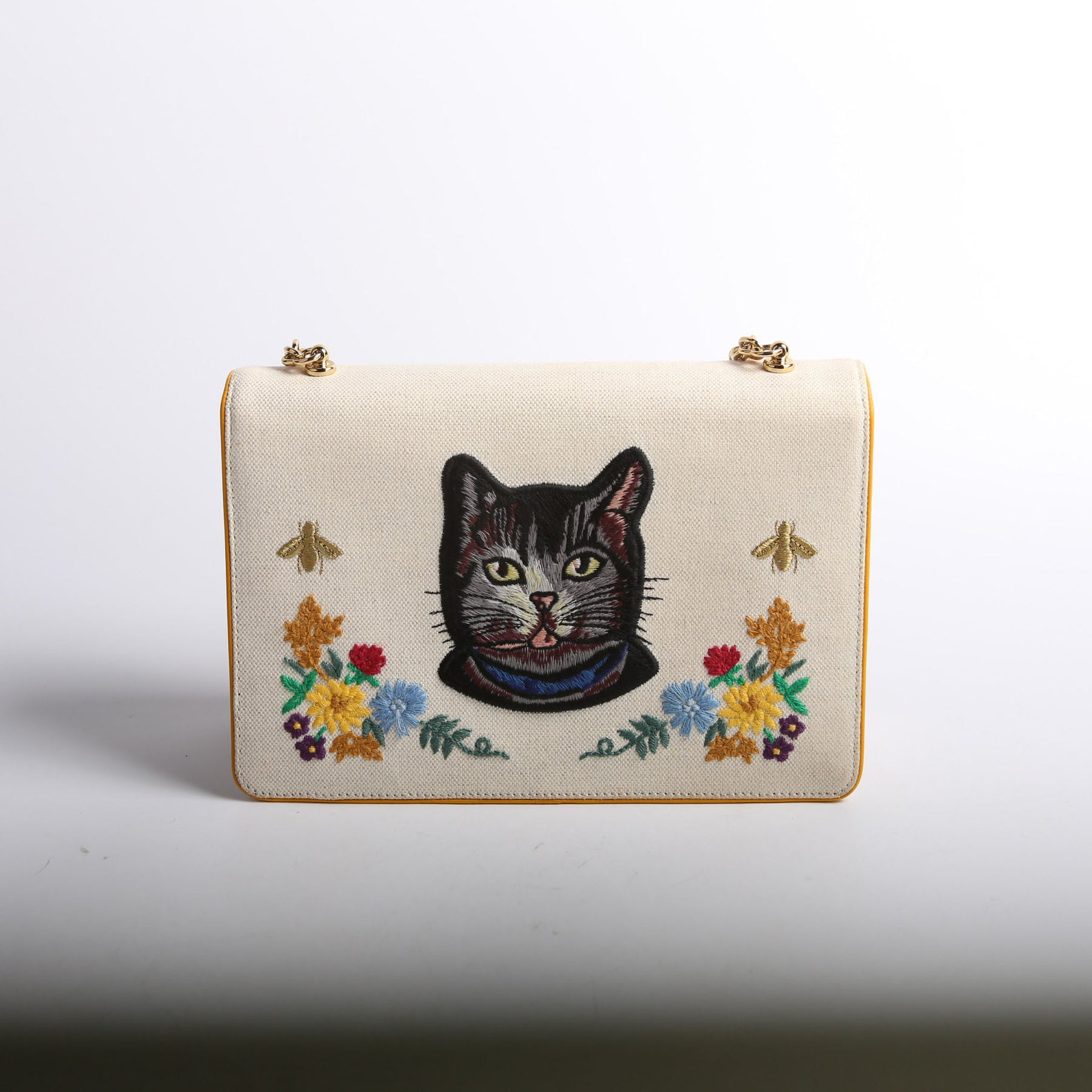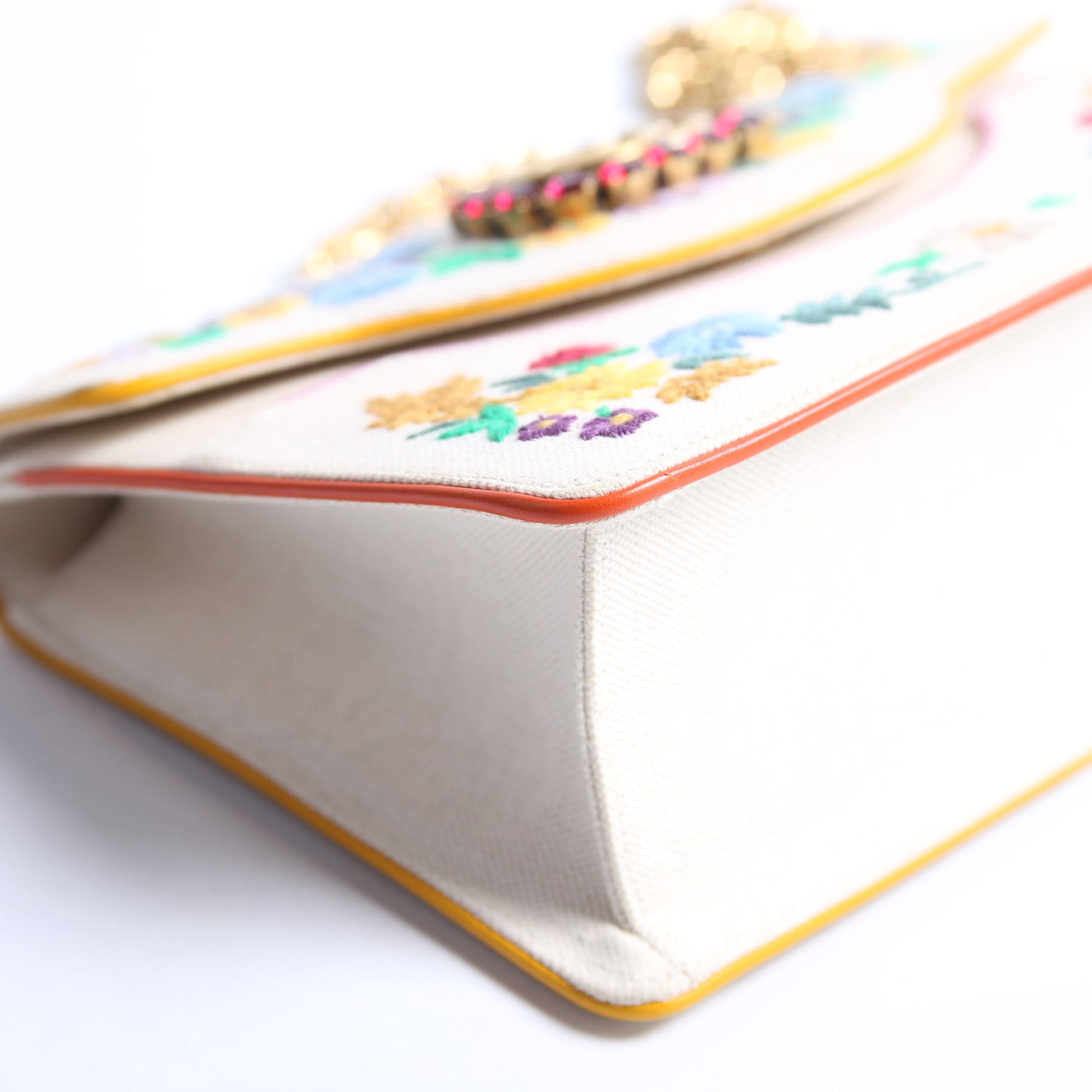 499617 Linen Ricami Floral Embellished Shoulder Bag