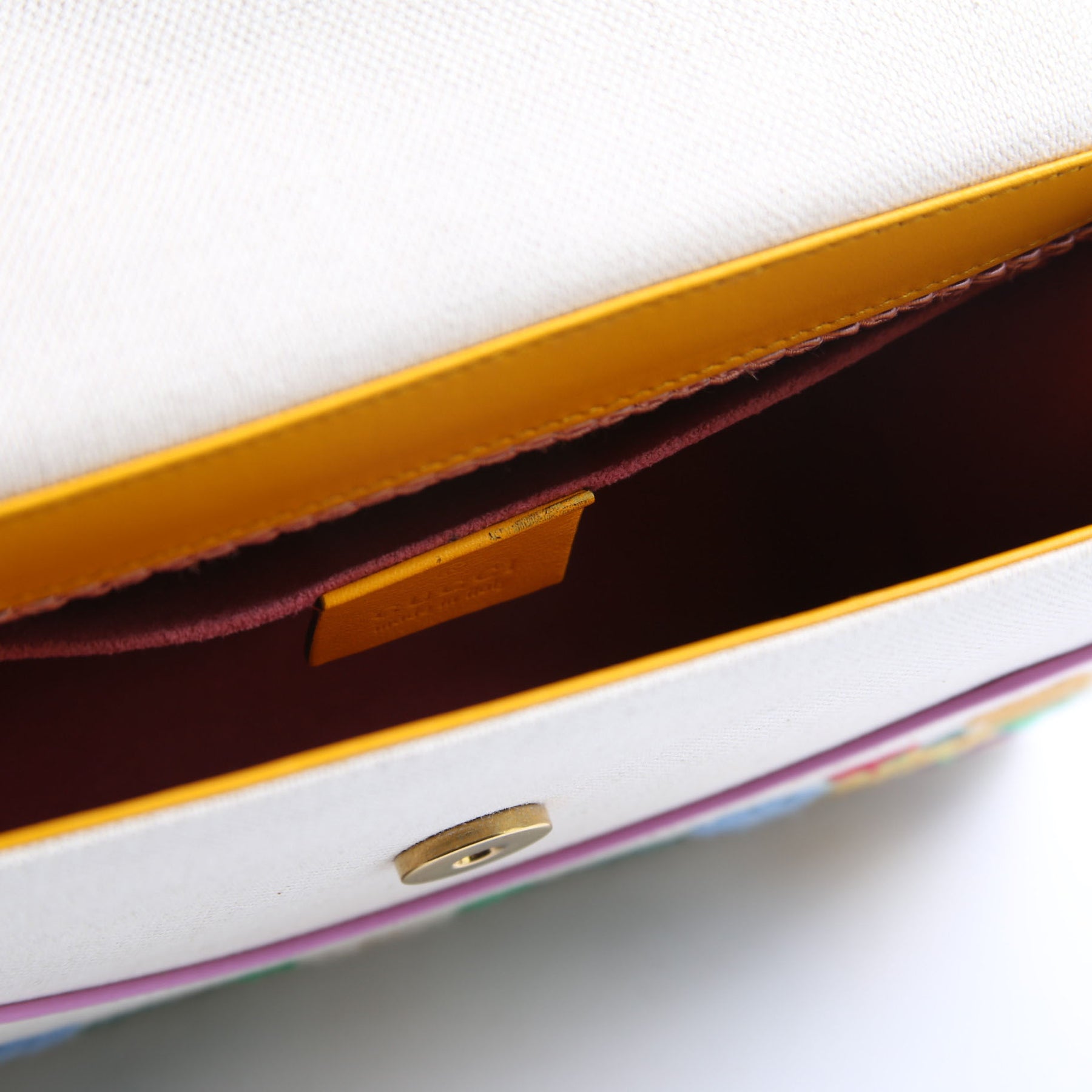This pre-owned Gucci Linen Ricami Floral Embellished Shoulder Bag is guaranteed 100% authentic.