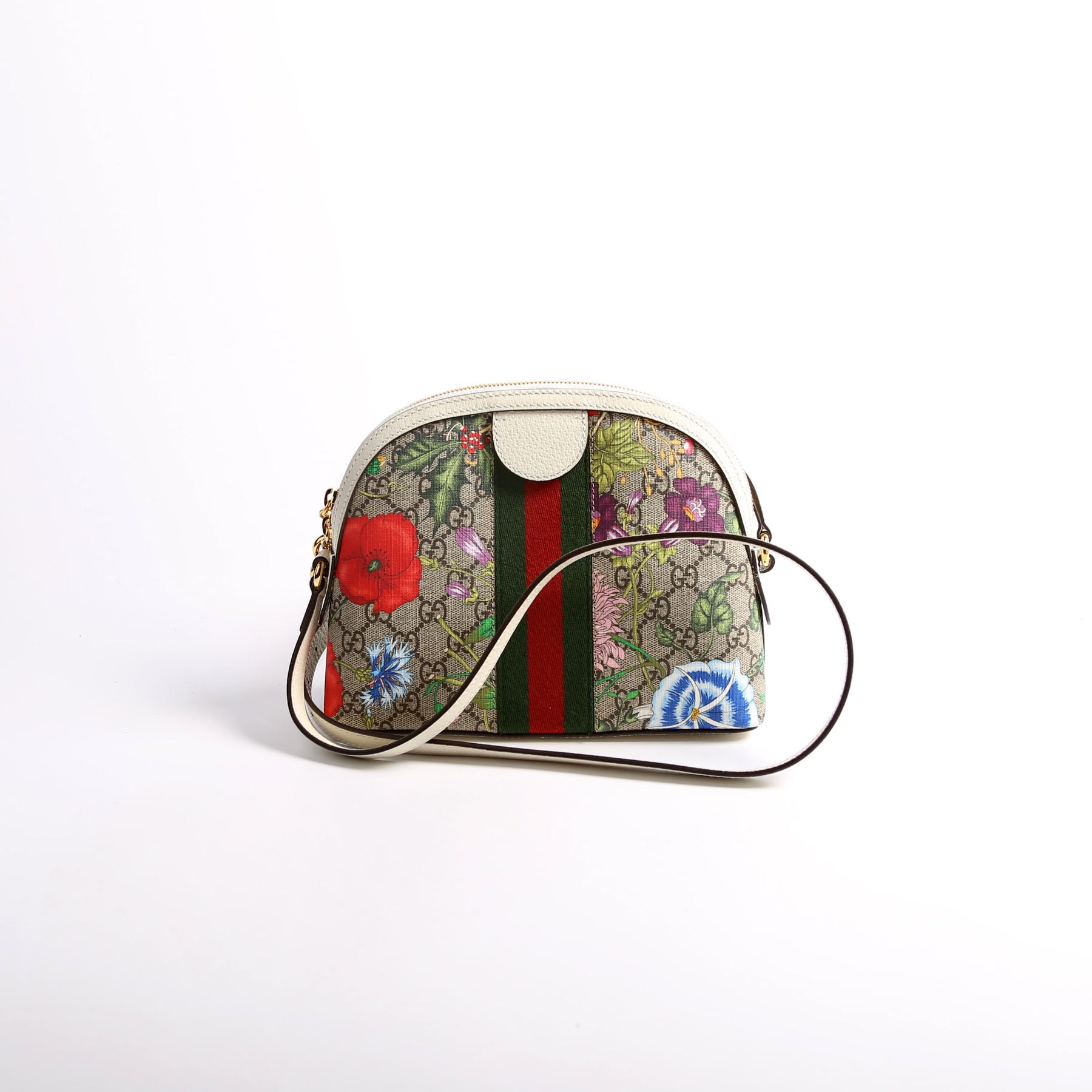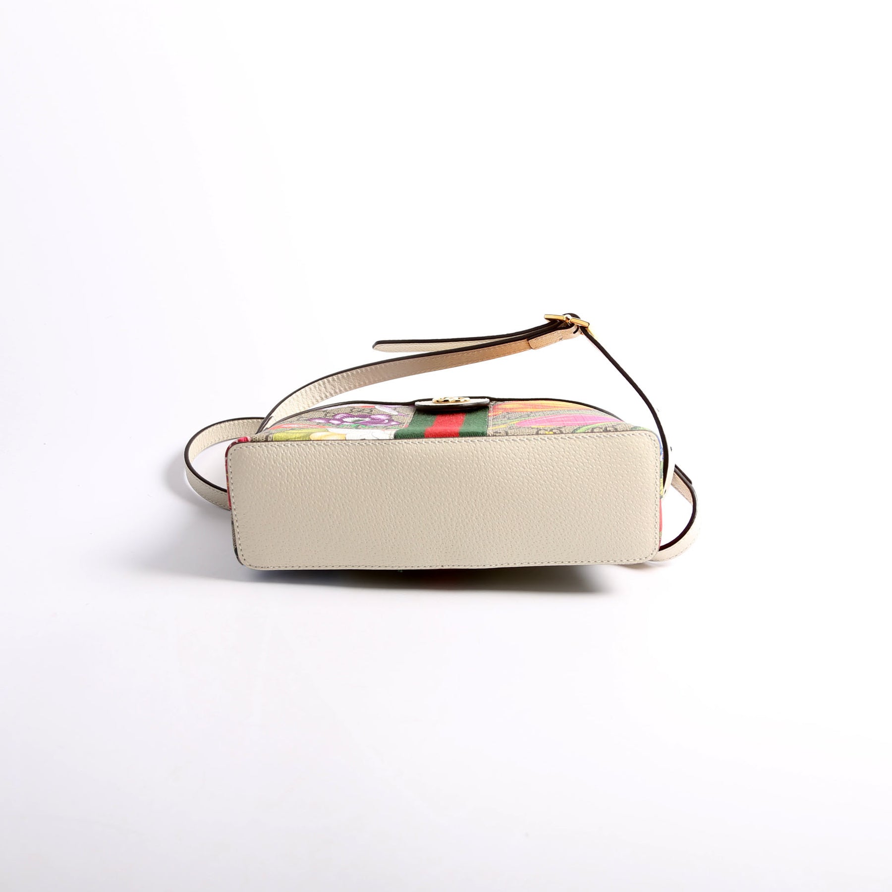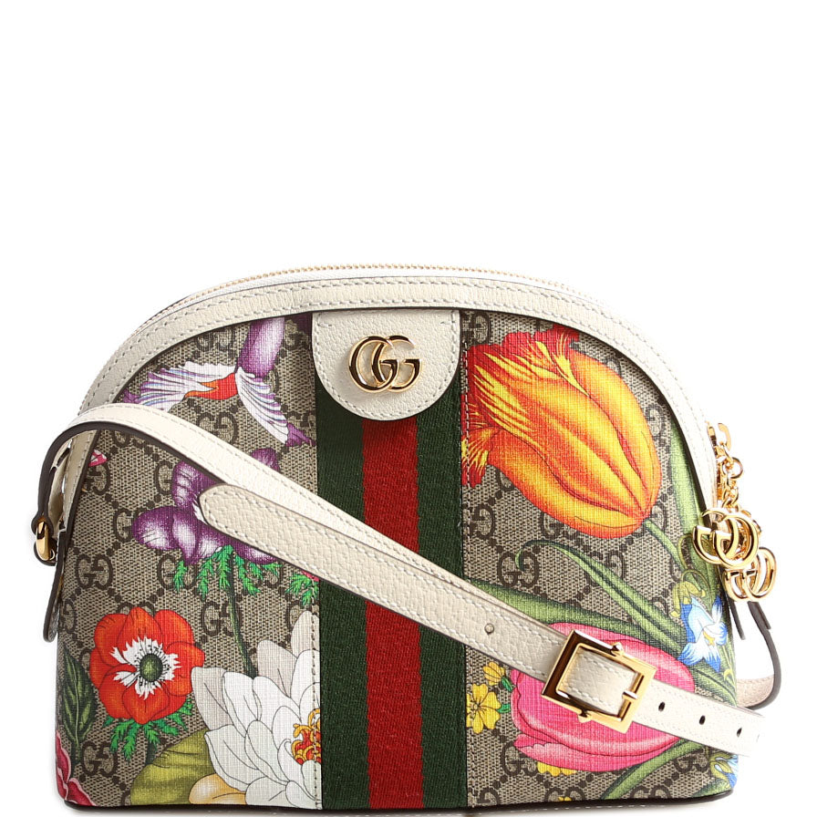 This pre-owned Gucci Ophidia GG Flora Small Crossbody is guaranteed 100% authentic. The exterior is in the classic Gucci GG Flora Canvas.