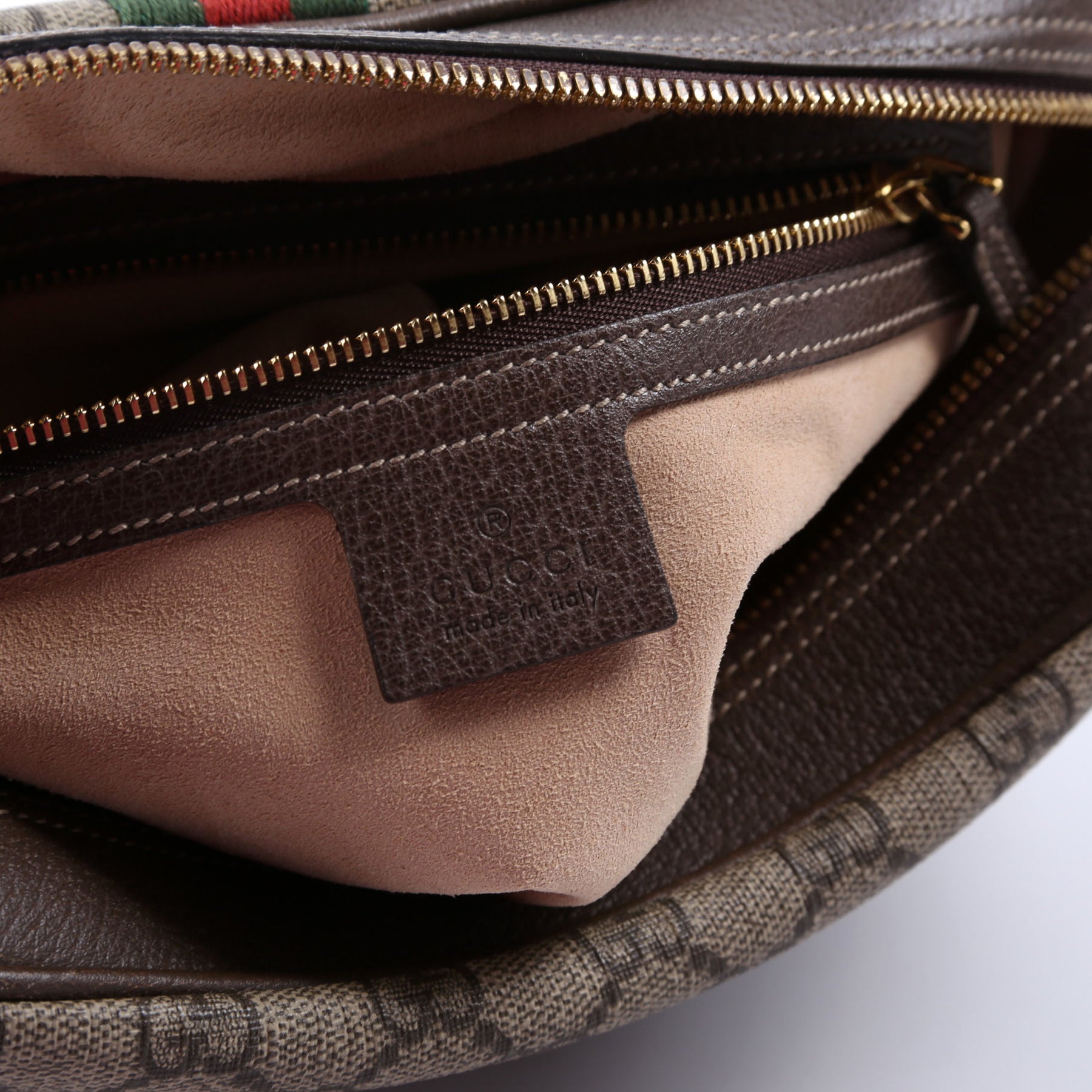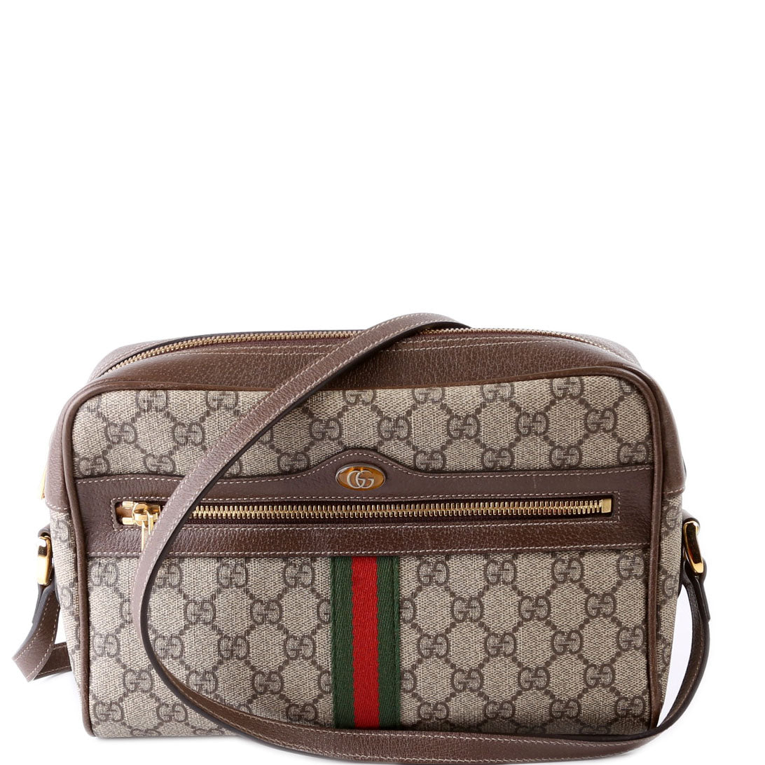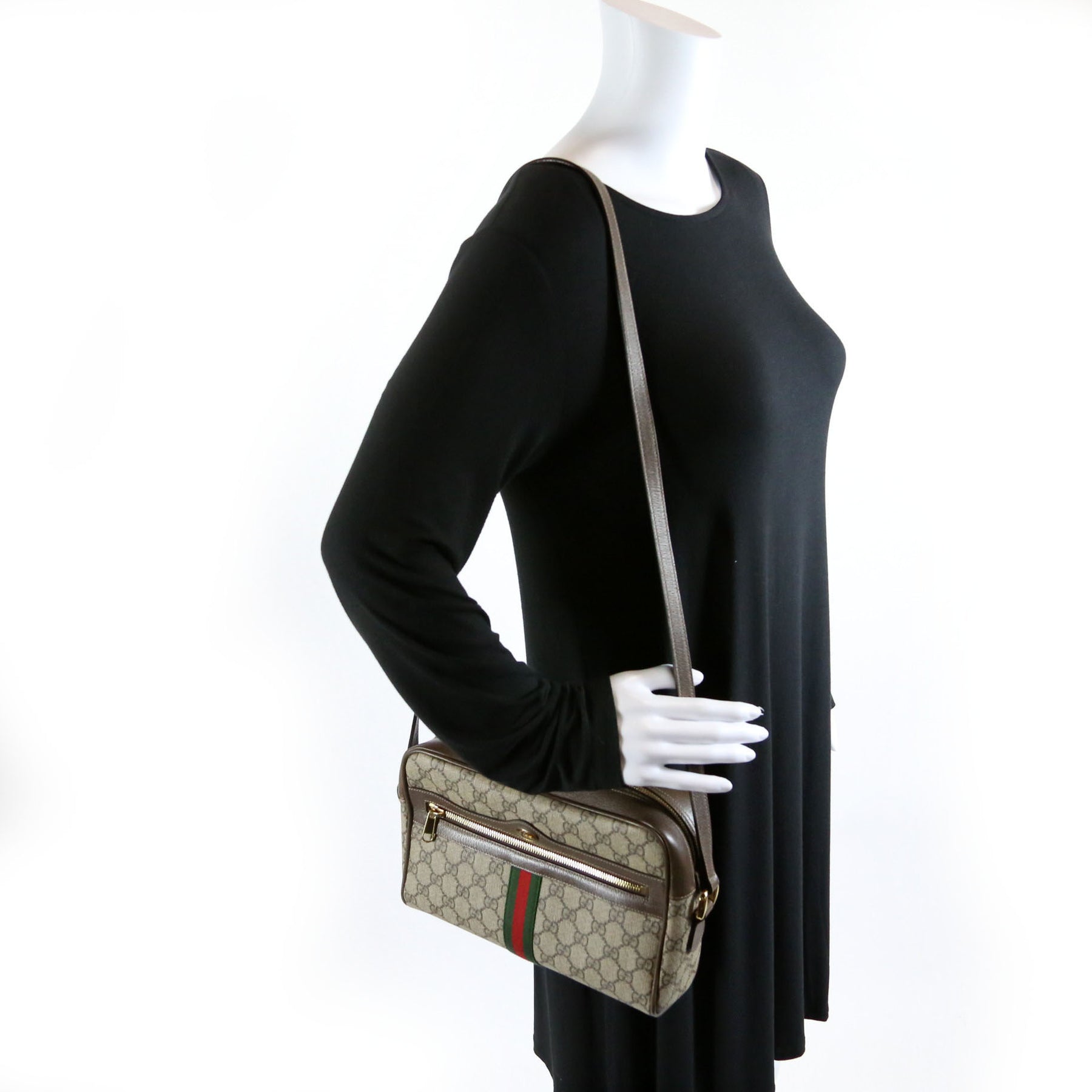 This pre-owned Gucci Ophidia Small Shoulder Bag is guaranteed 100% authentic. The exterior is in the classic Gucci GG Supreme coated canvas.