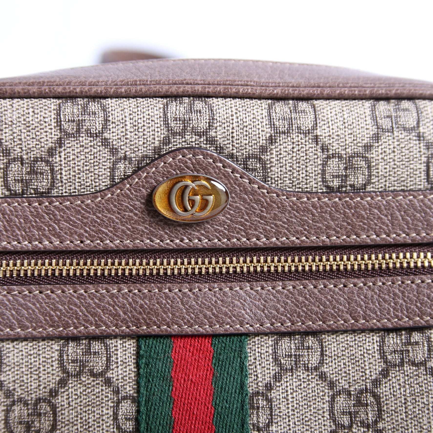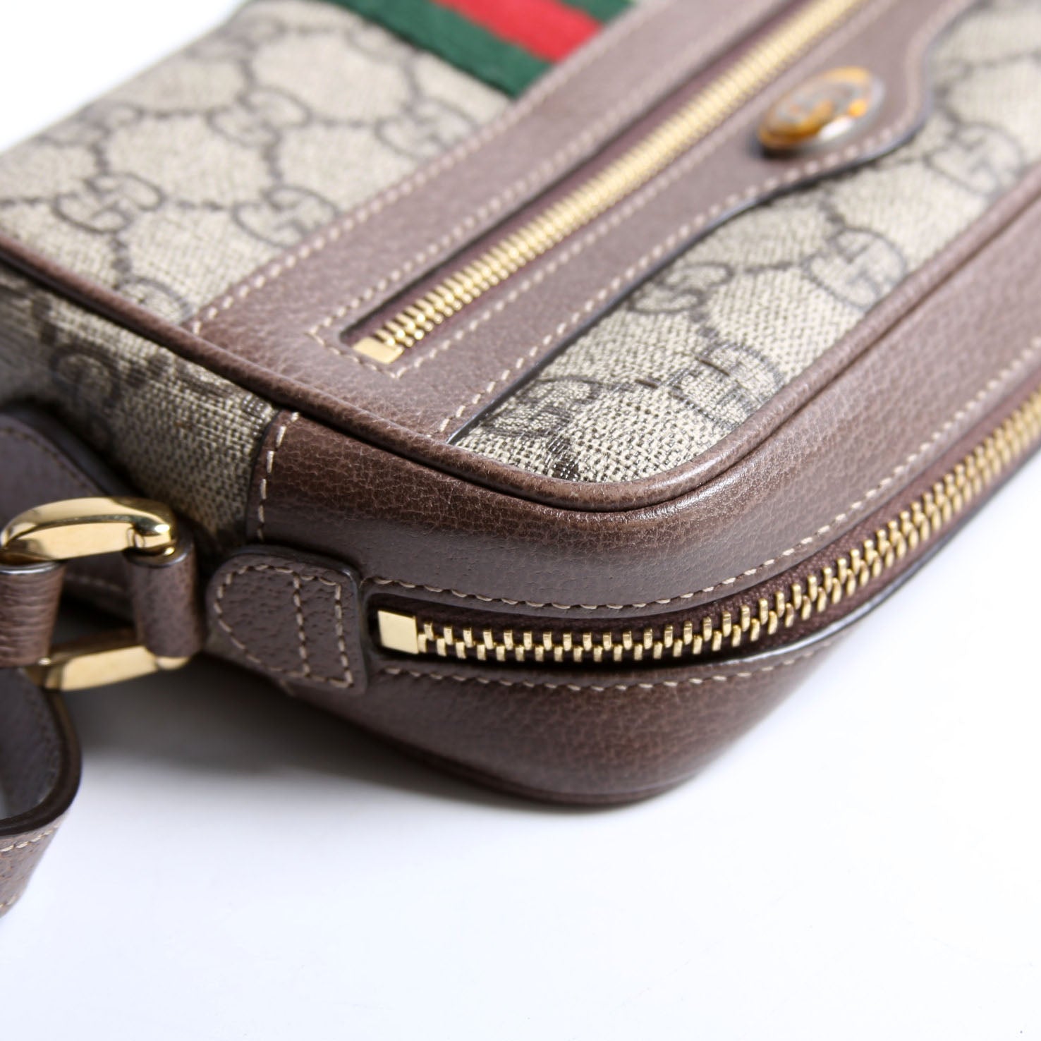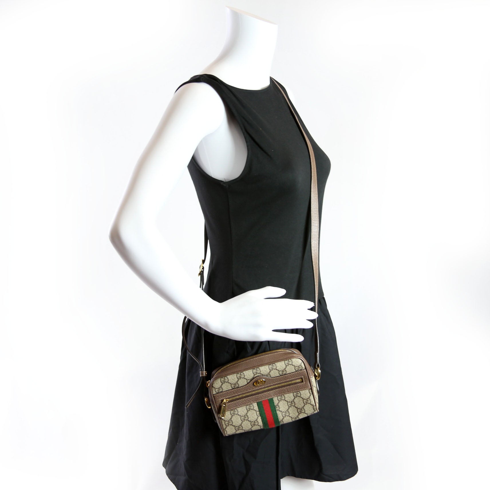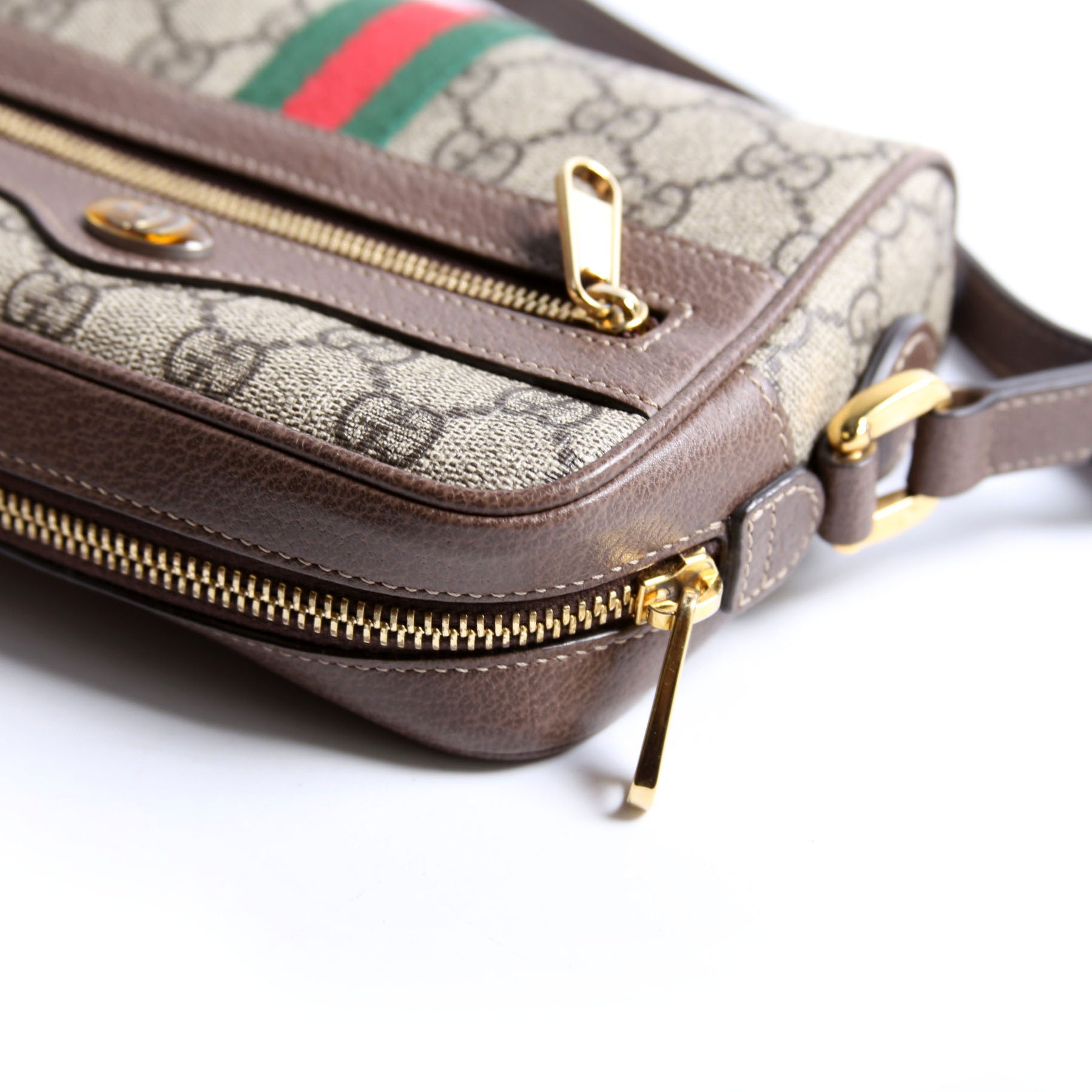 This pre-owned Gucci GG Supreme Mini Ophidia is guaranteed 100% authentic. The exterior is in the classic Gucci GG Supreme coated canvas.