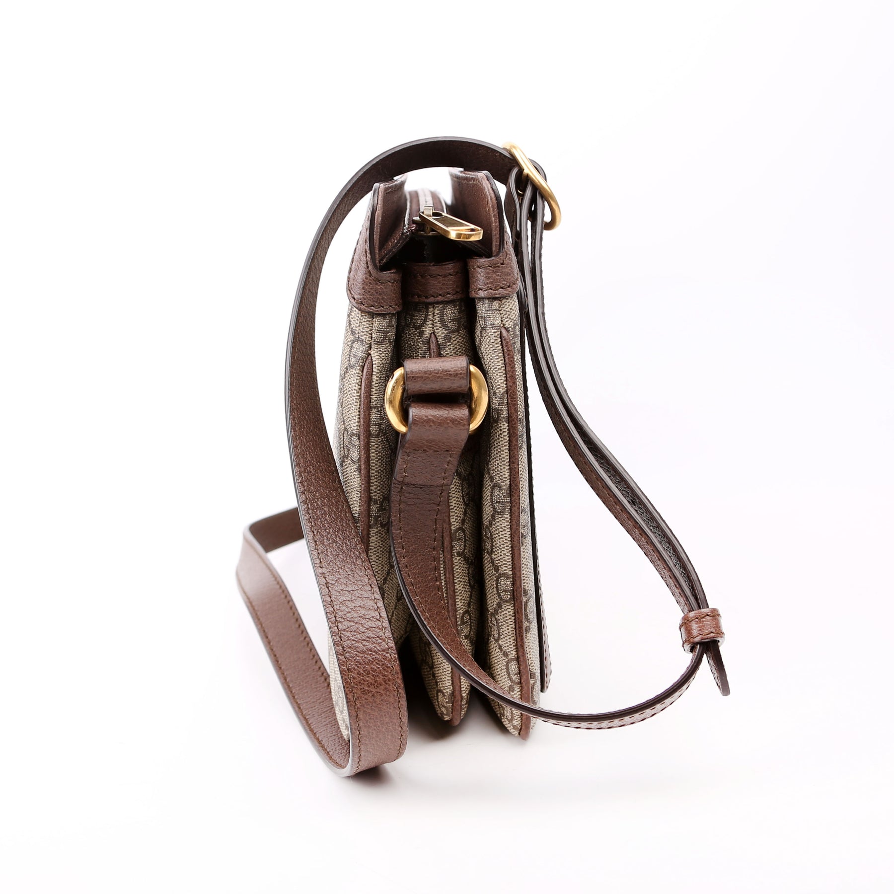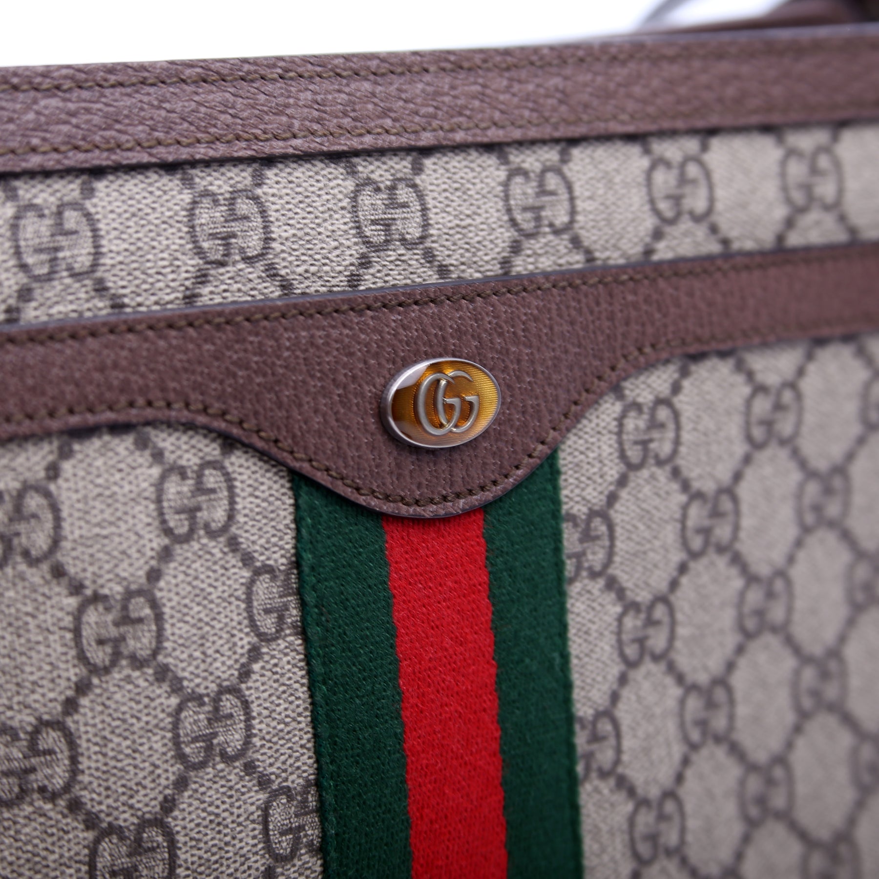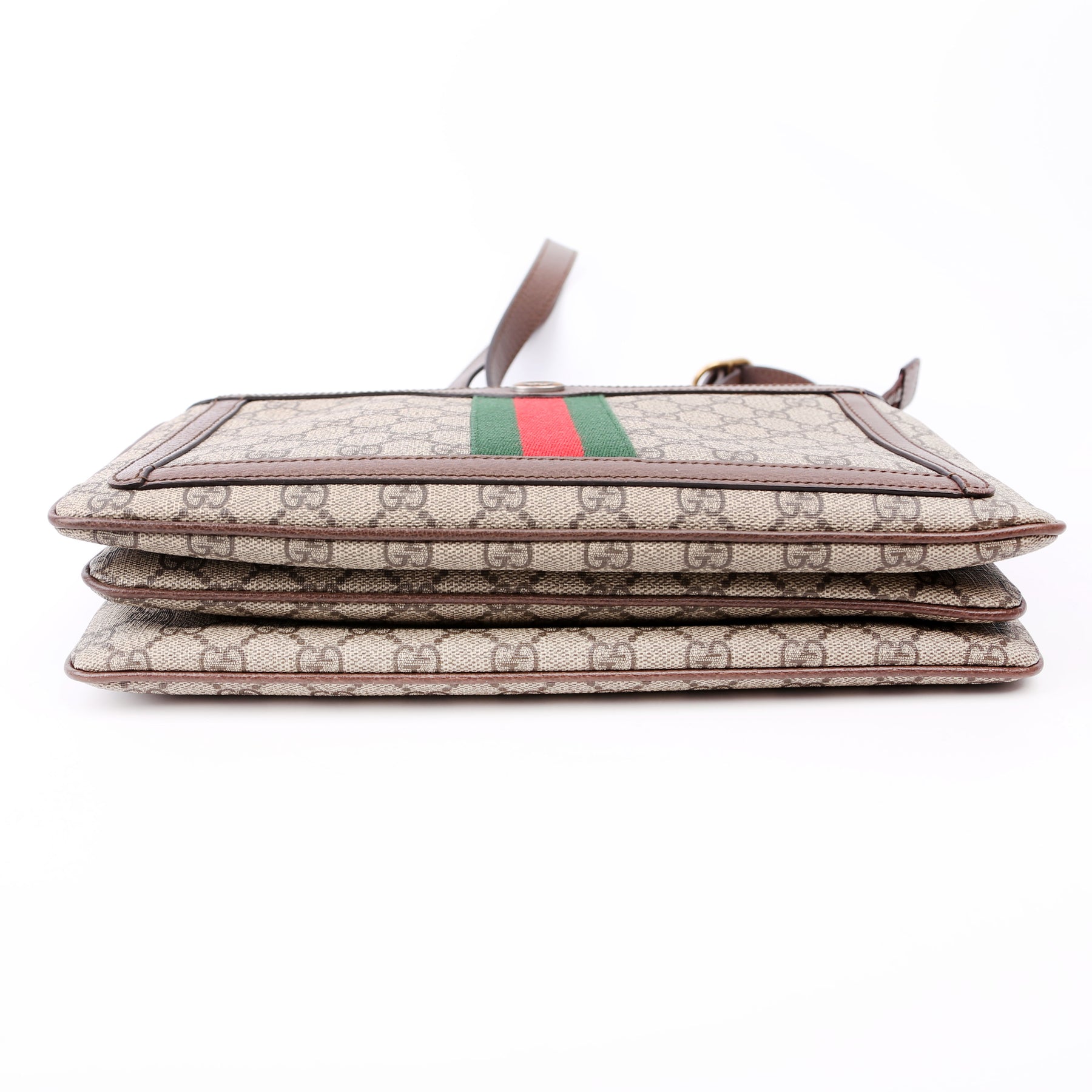 This pre-owned Gucci GG Supreme Ophidia Medium Shoulder Bag is guaranteed 100% authentic. The exterior is in the classic Gucci GG Supreme coated canvas.