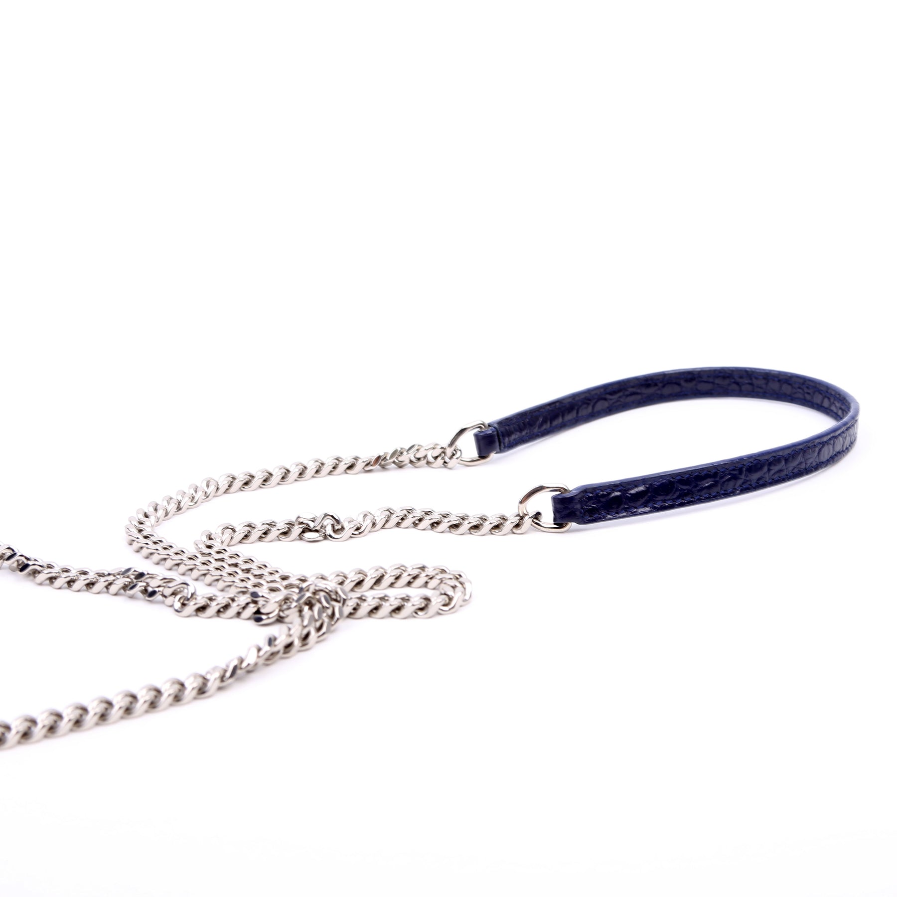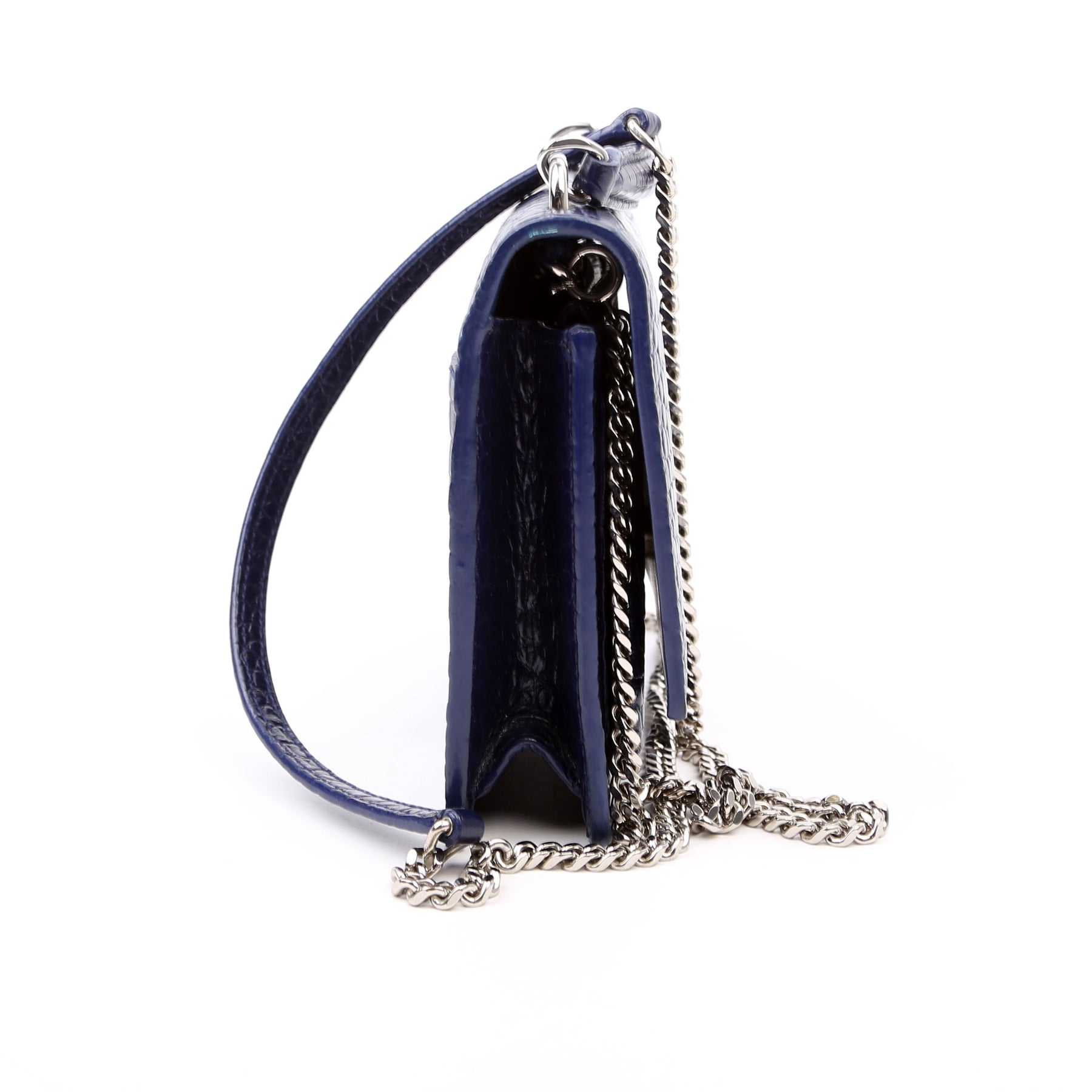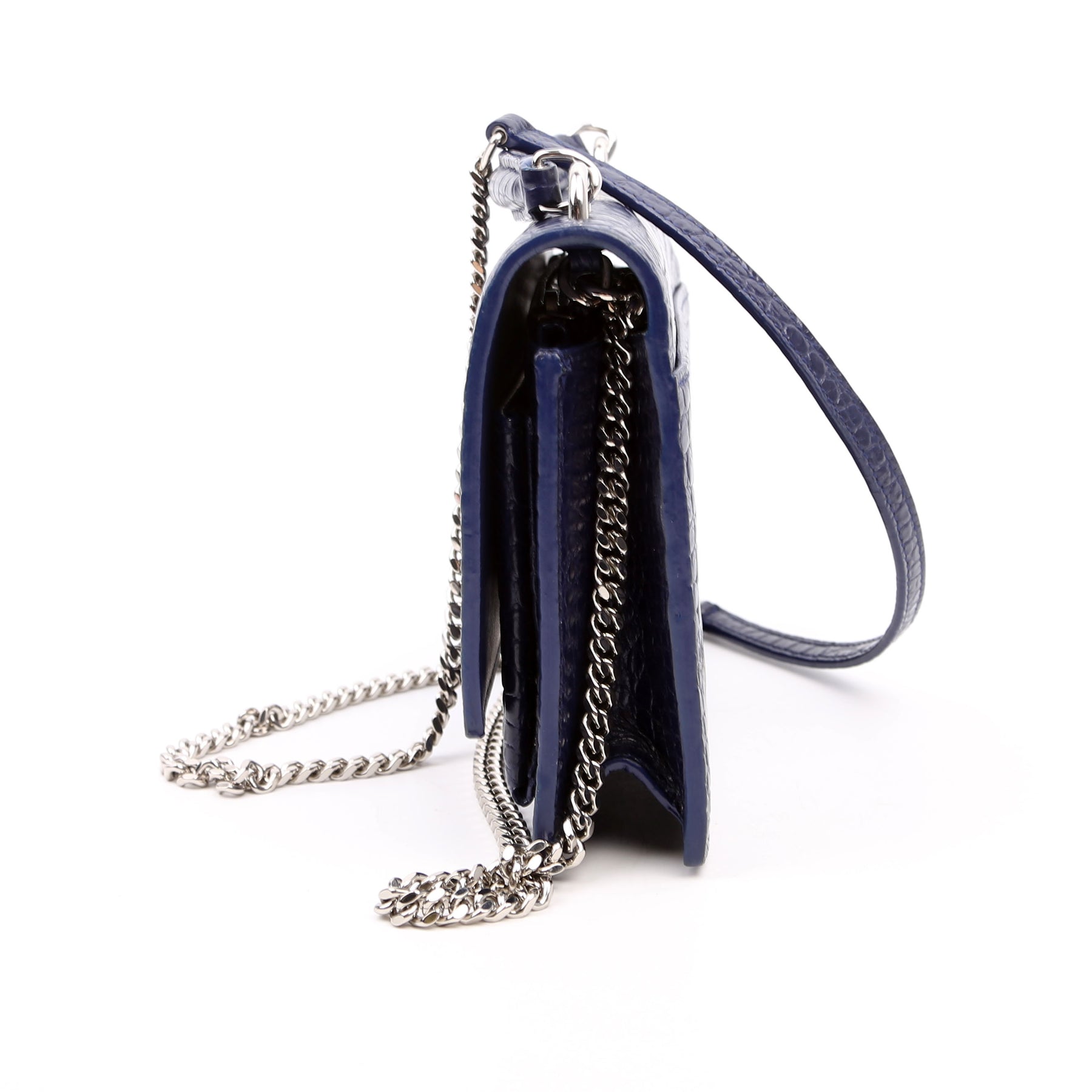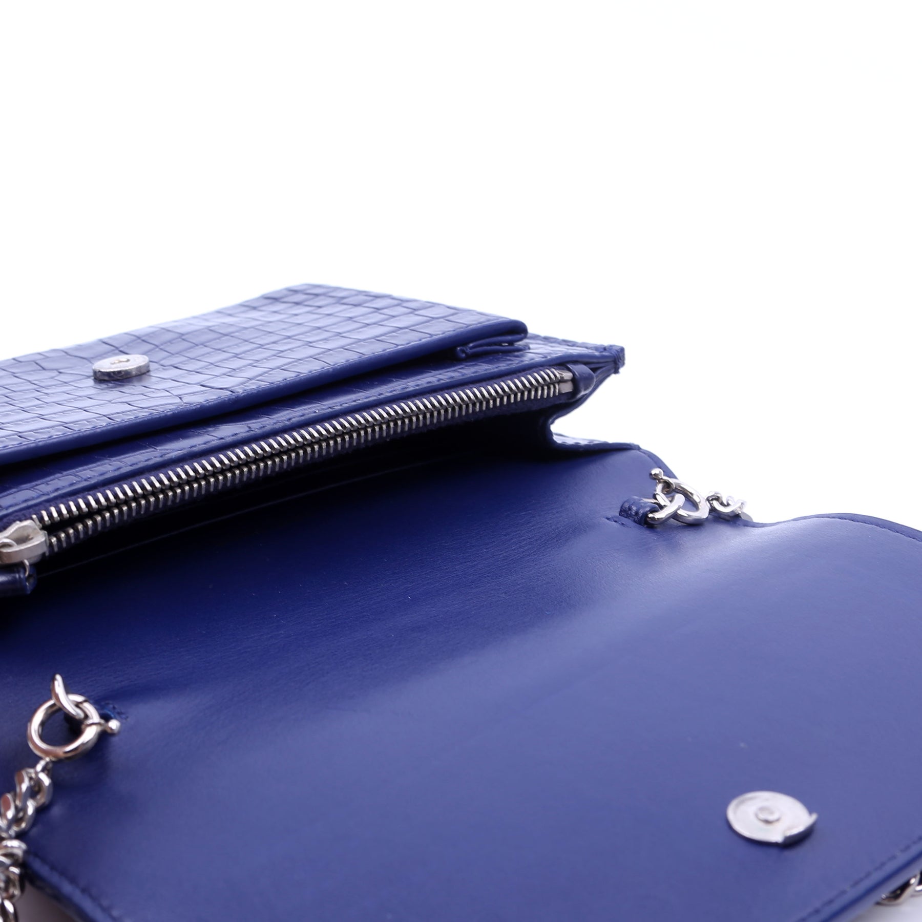 533026 Sunset Chain Wallet Crocodile Leather Blue