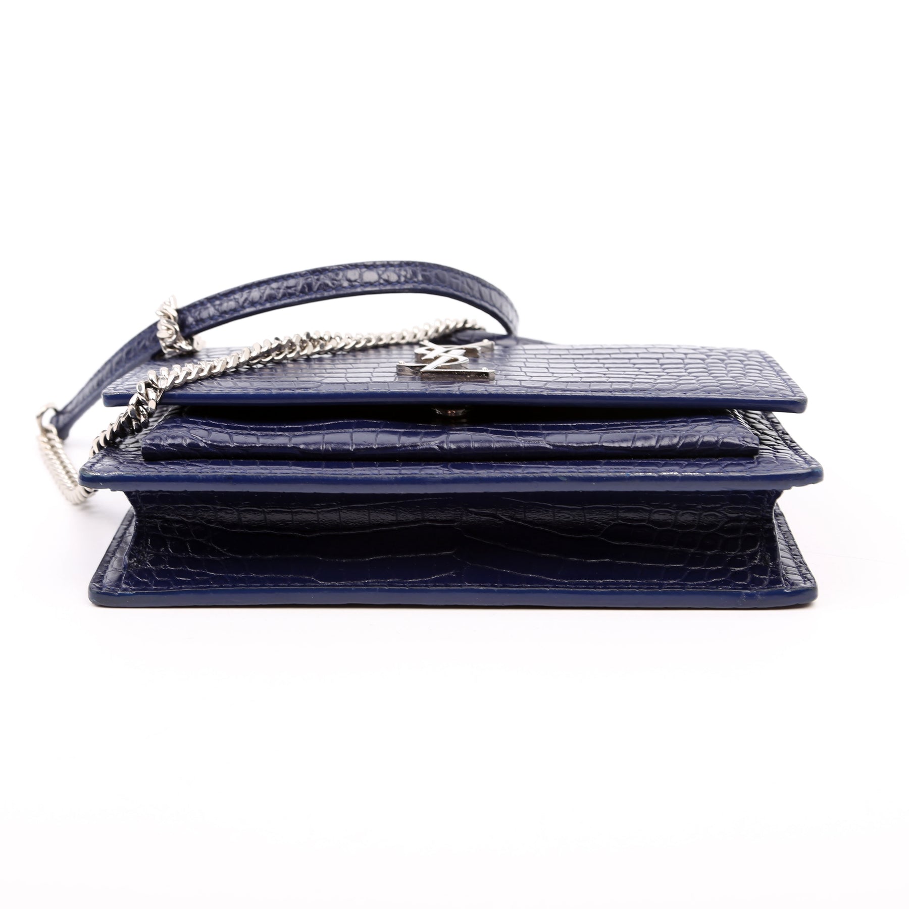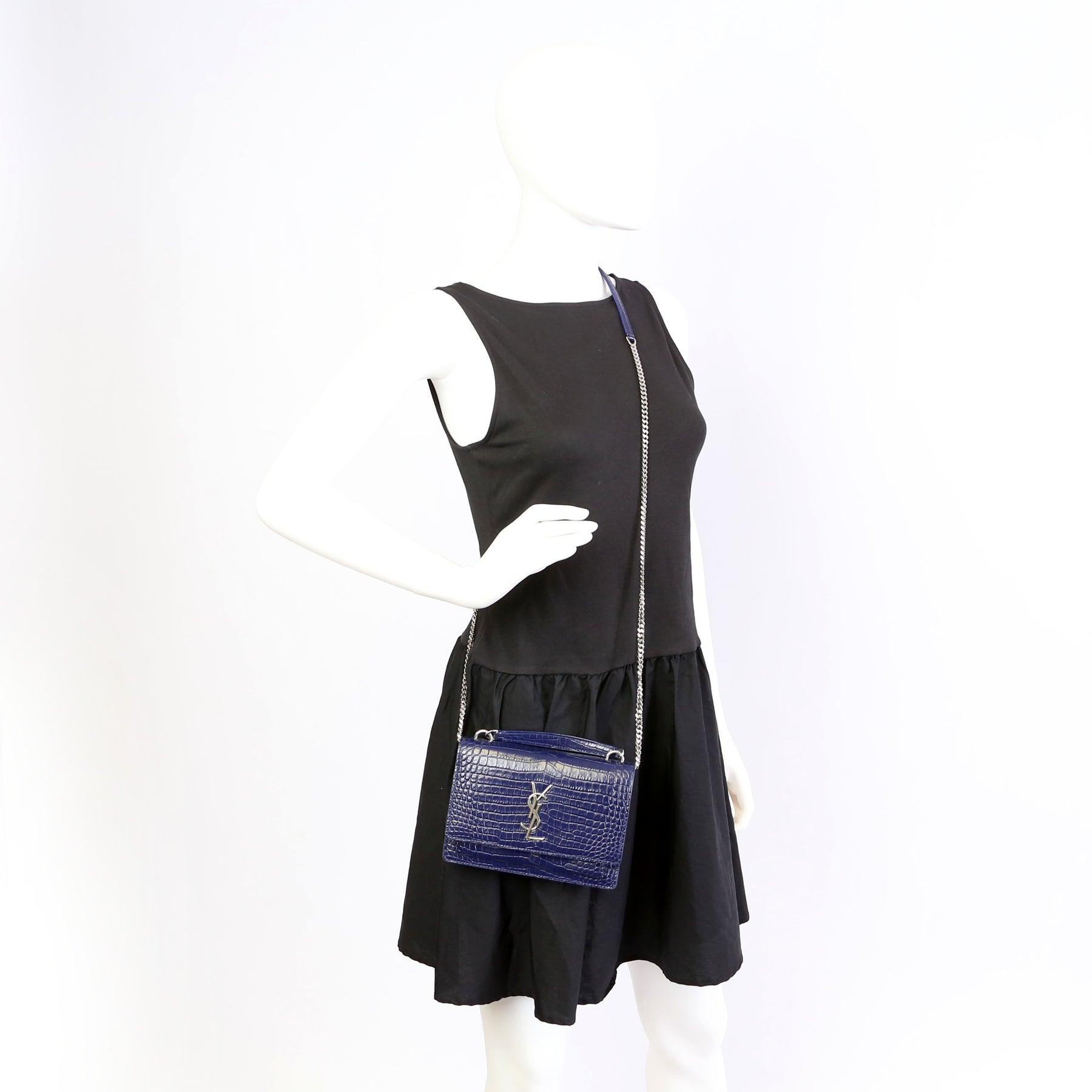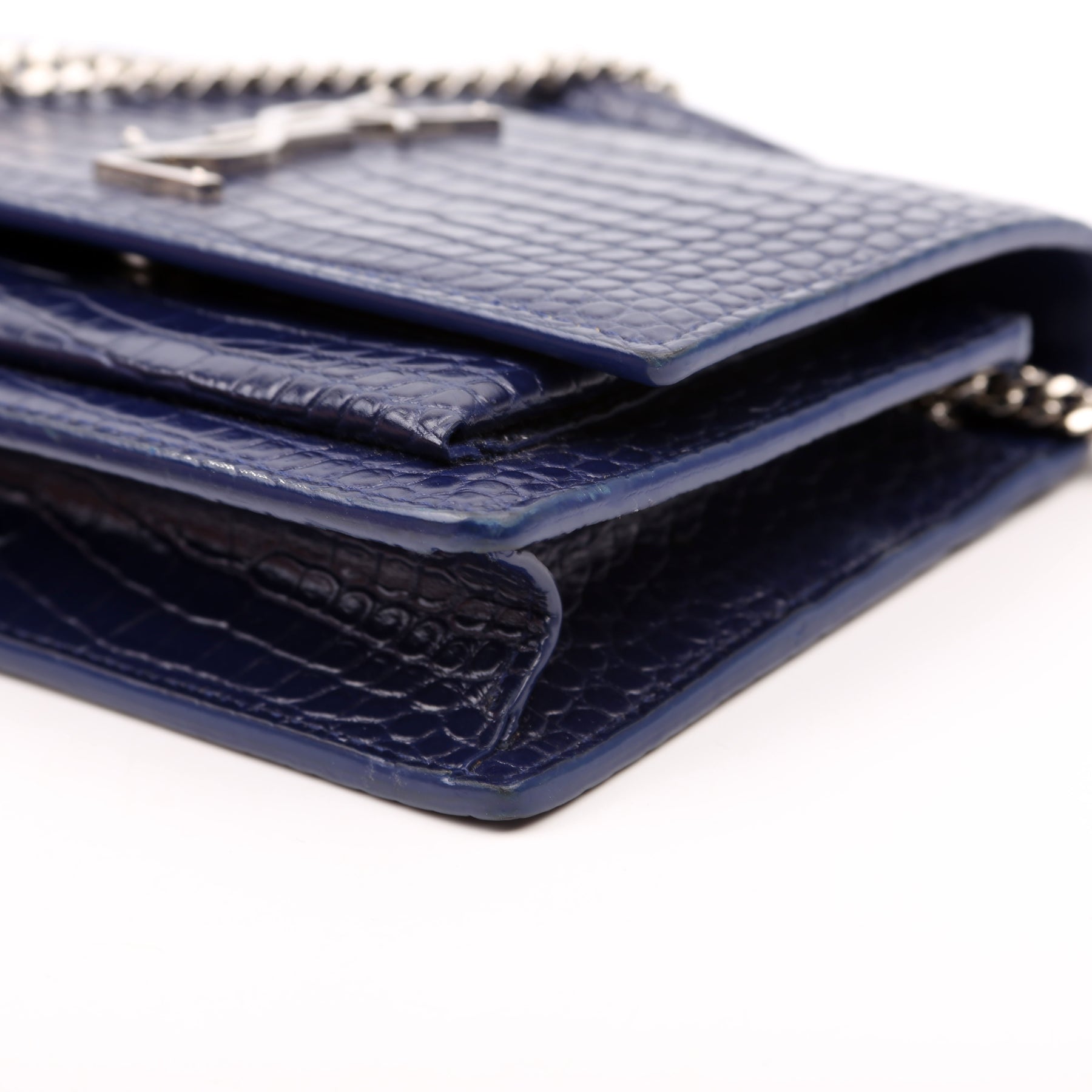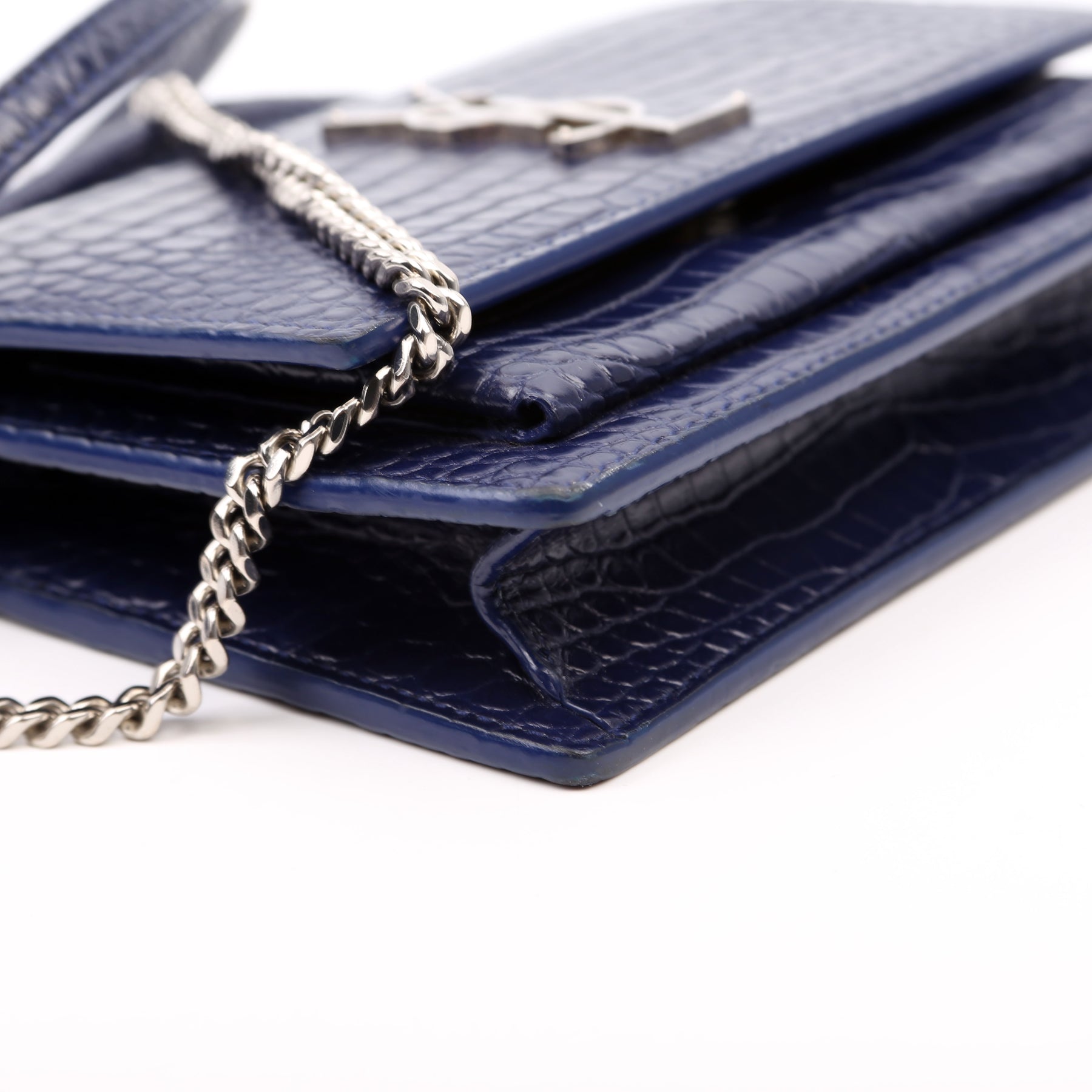 This pre-owned Saint Laurent Sunset Chain Wallet Crocodile Leather is guaranteed 100% authentic.