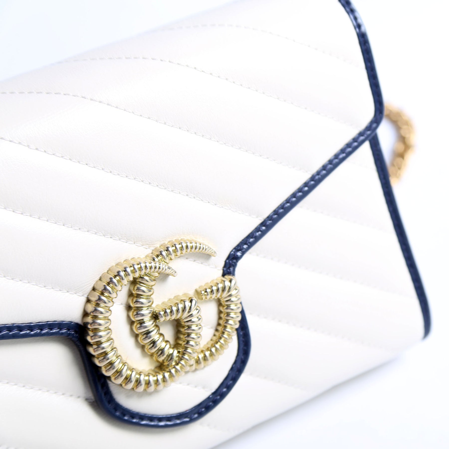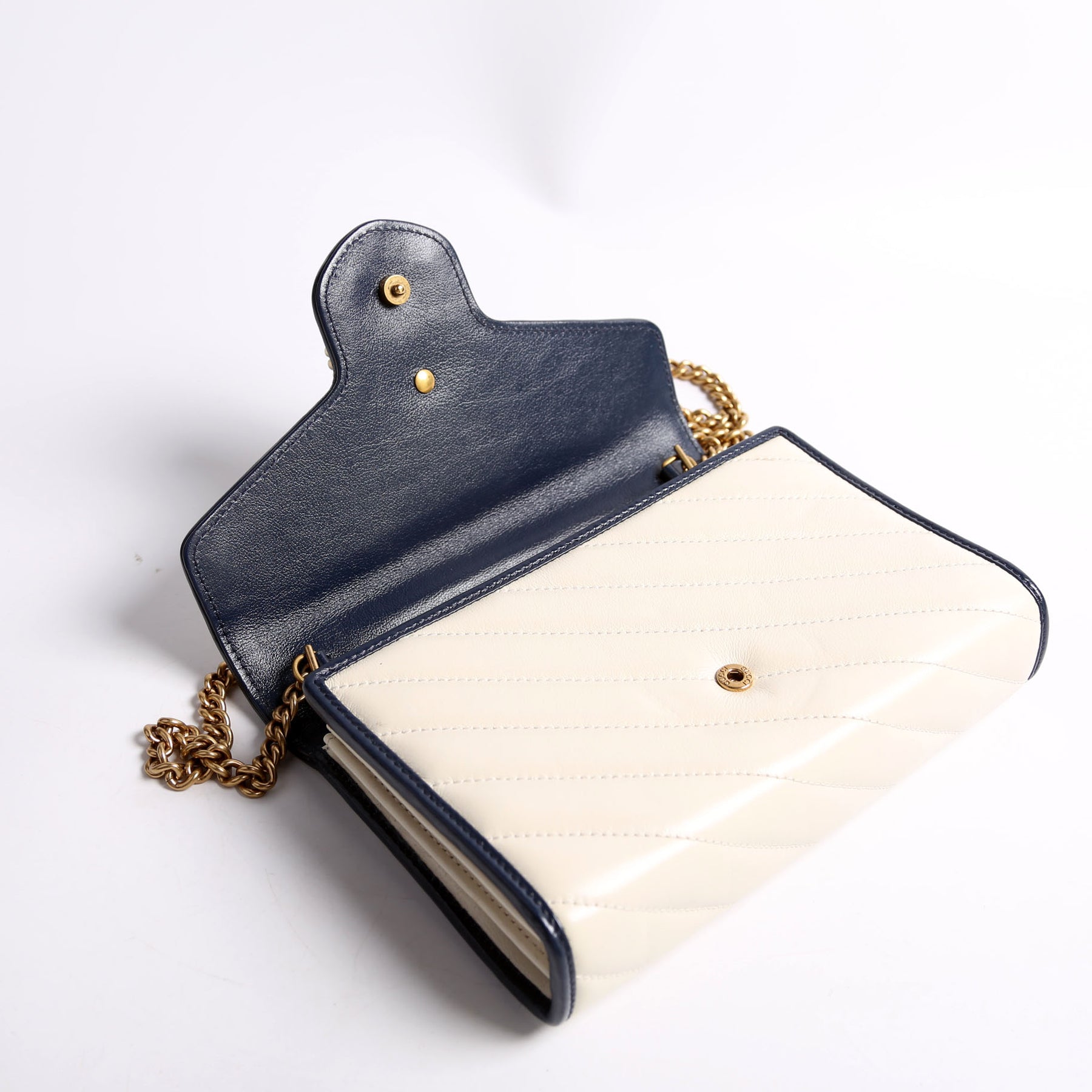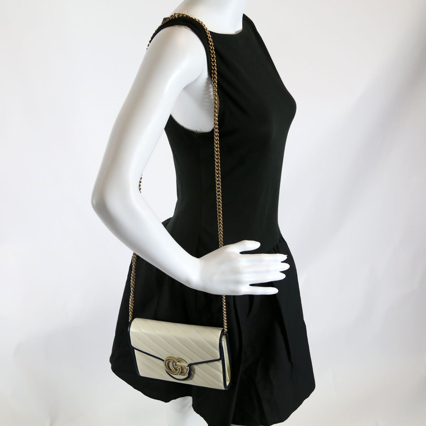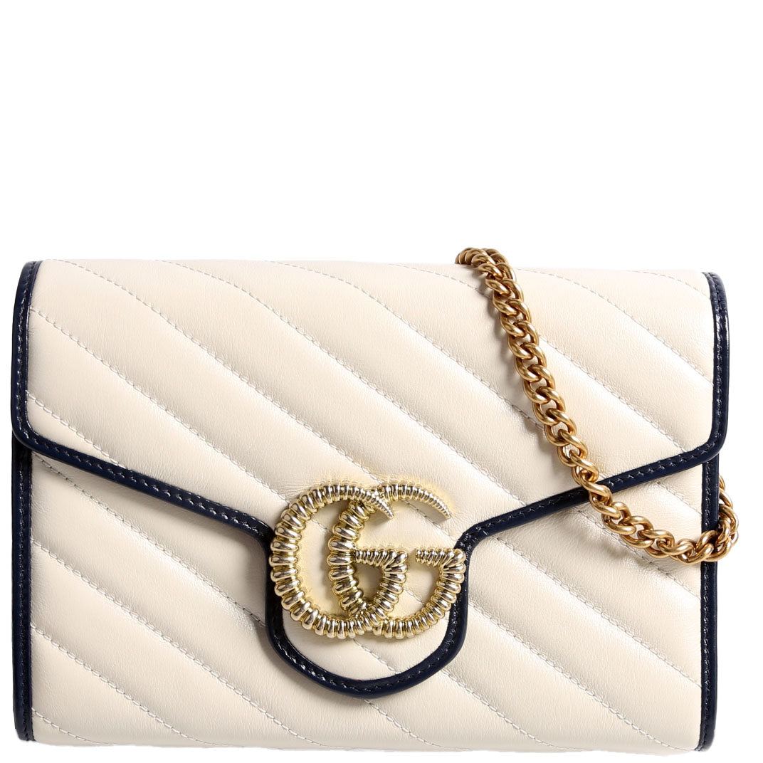 573807 Marmont Torchon Chain Wallet Cream/Blue