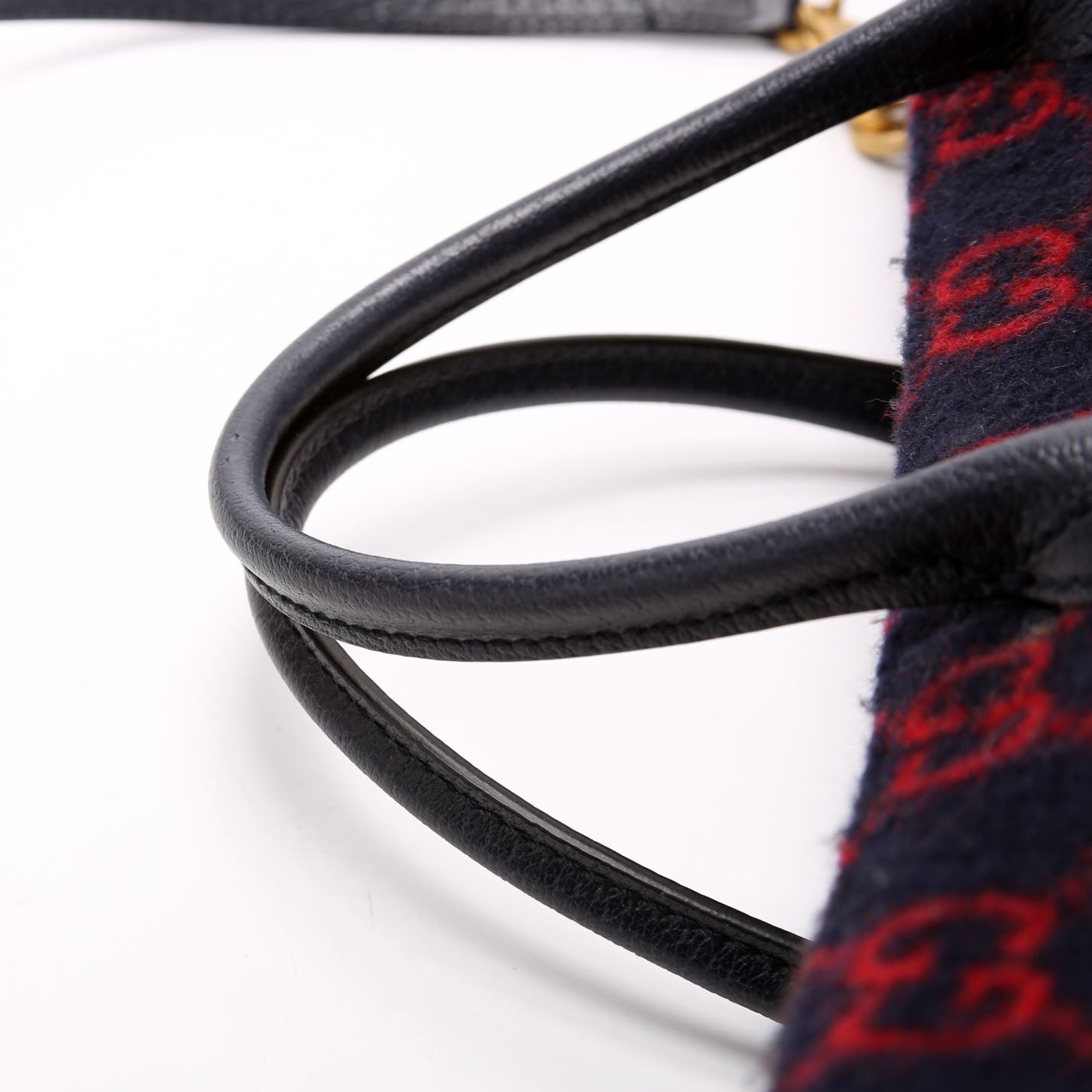 This pre-owned Gucci GG Wool Tote is guaranteed 100% authentic. The exterior is in the Monogram wool.